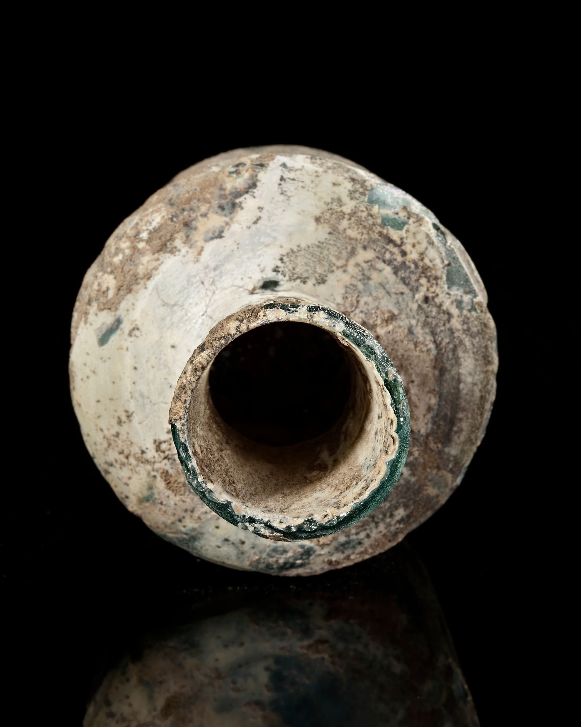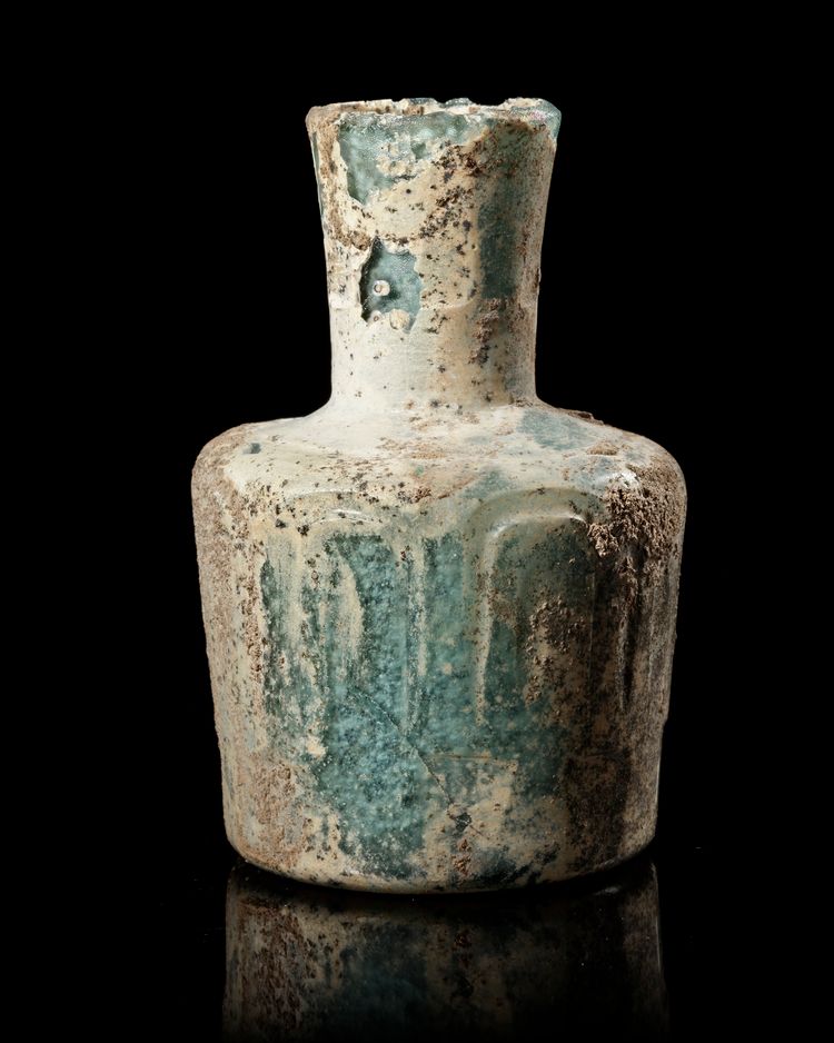 Lot 147A LIGHT LIME GREEN CUT GLASS BOTTLE, PERSIA, CIRCA 9TH CENTURY