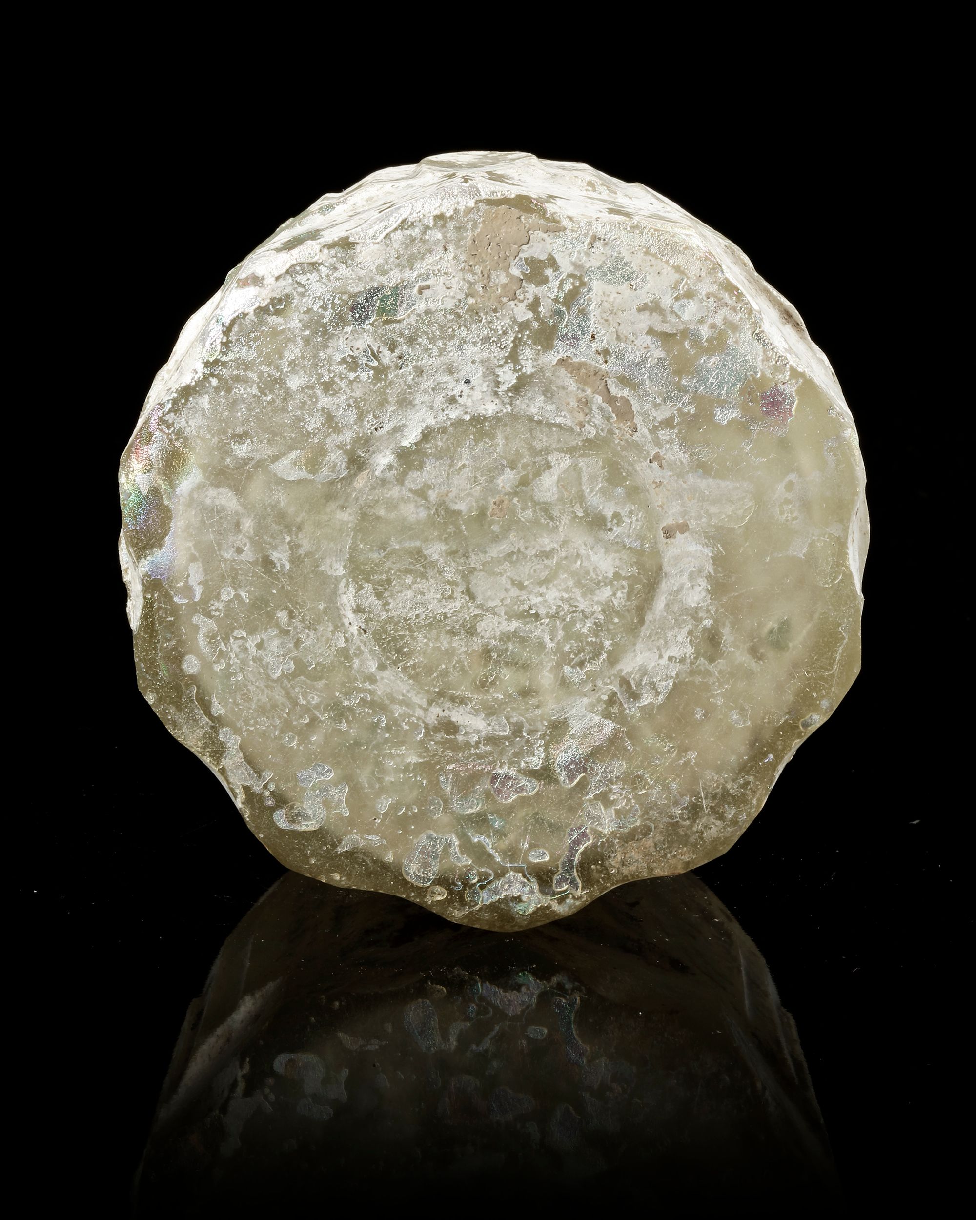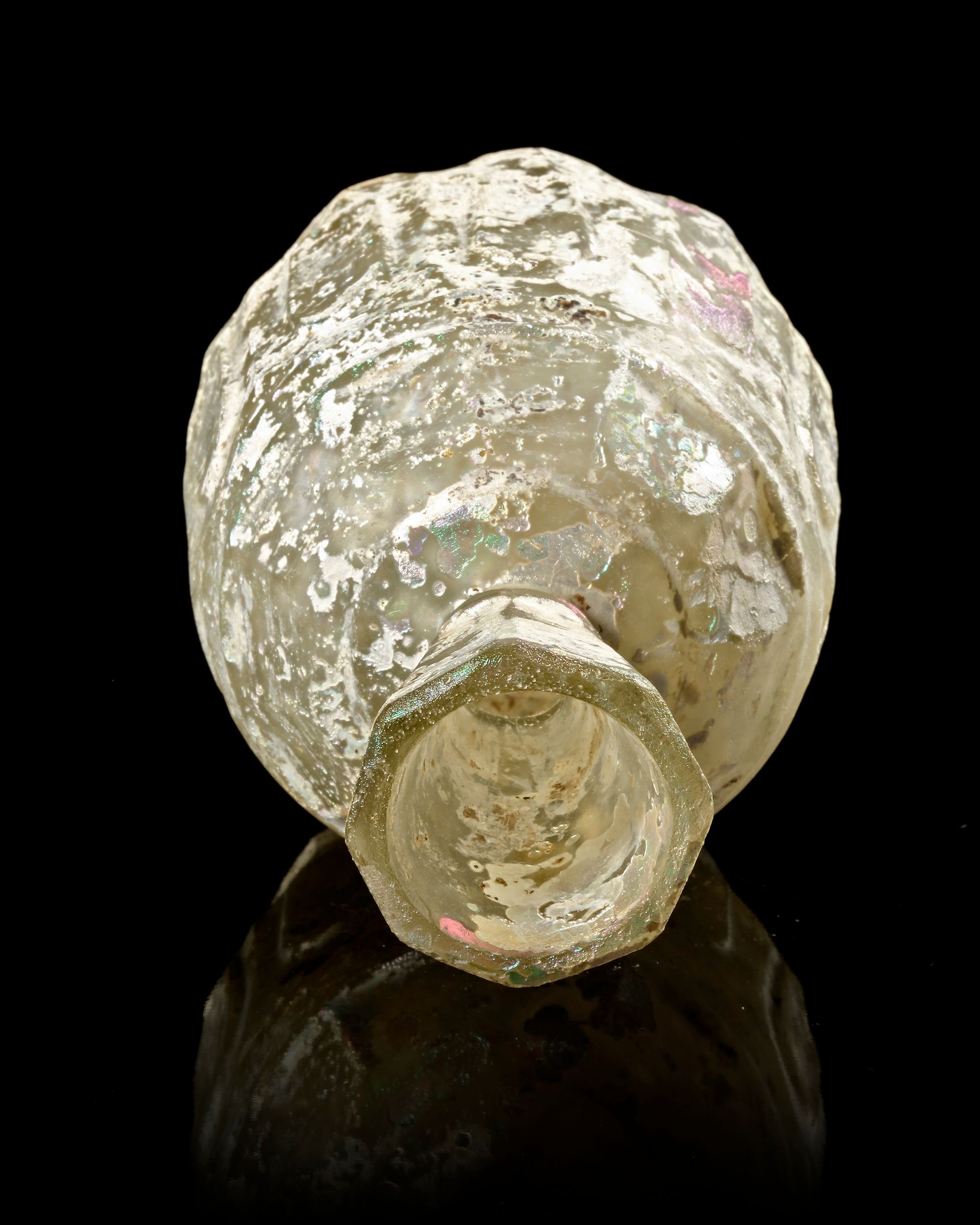 Lot 140AN INTACT WHEEL-CUT CLEAR GLASS BOTTLE PROBABLY NORTH EAST PERSIA, 8TH-9TH CENTURY