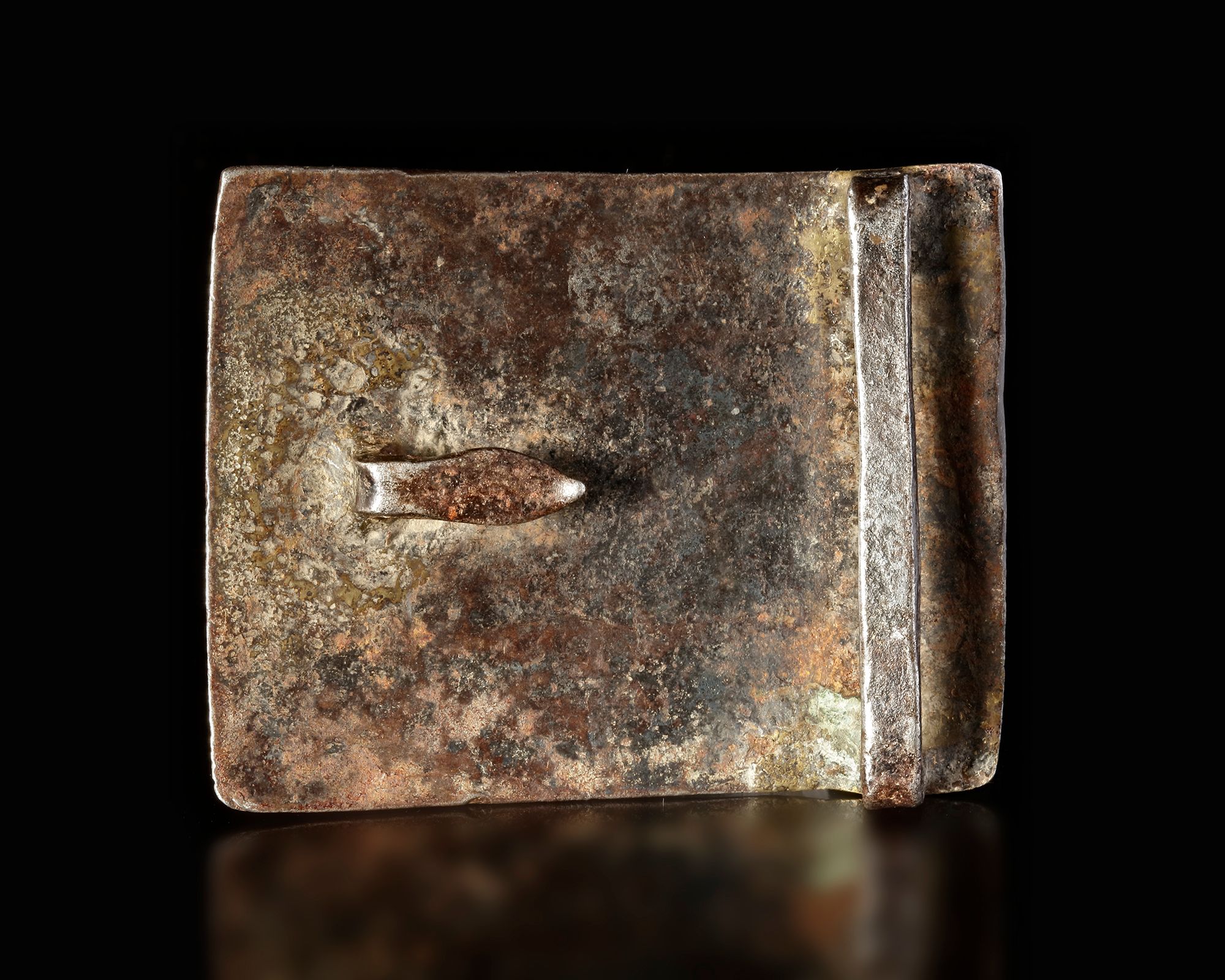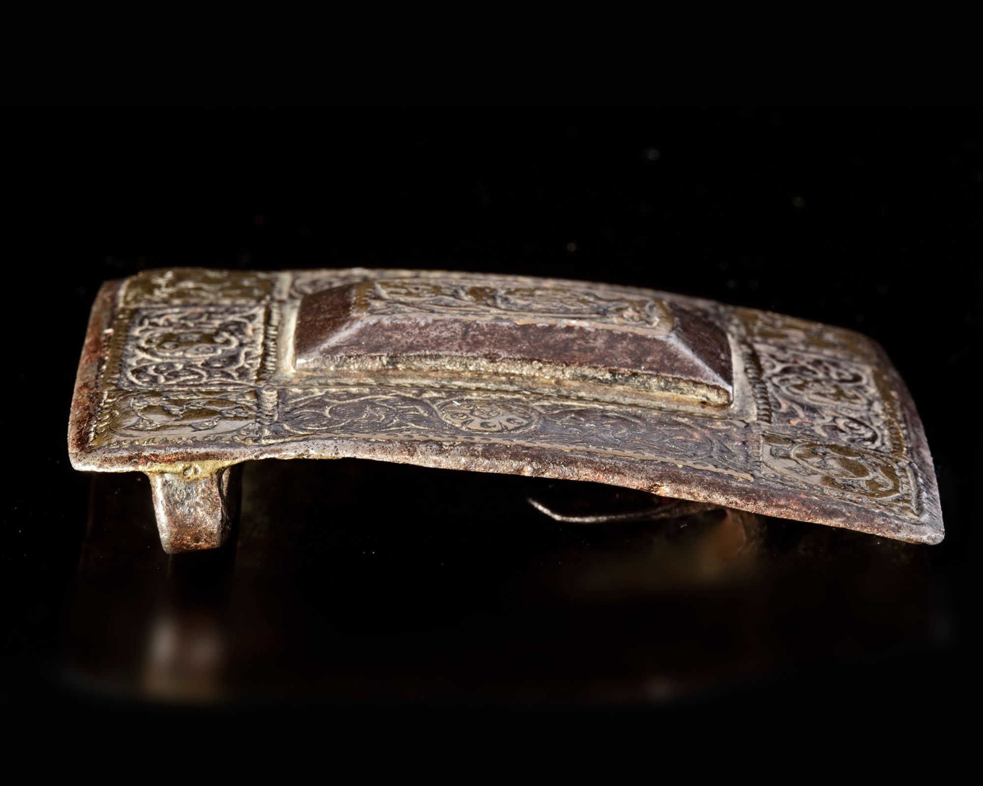 Finely pierced with gilt interlocking floral scrolls. 7,5 by 6,5 cm.