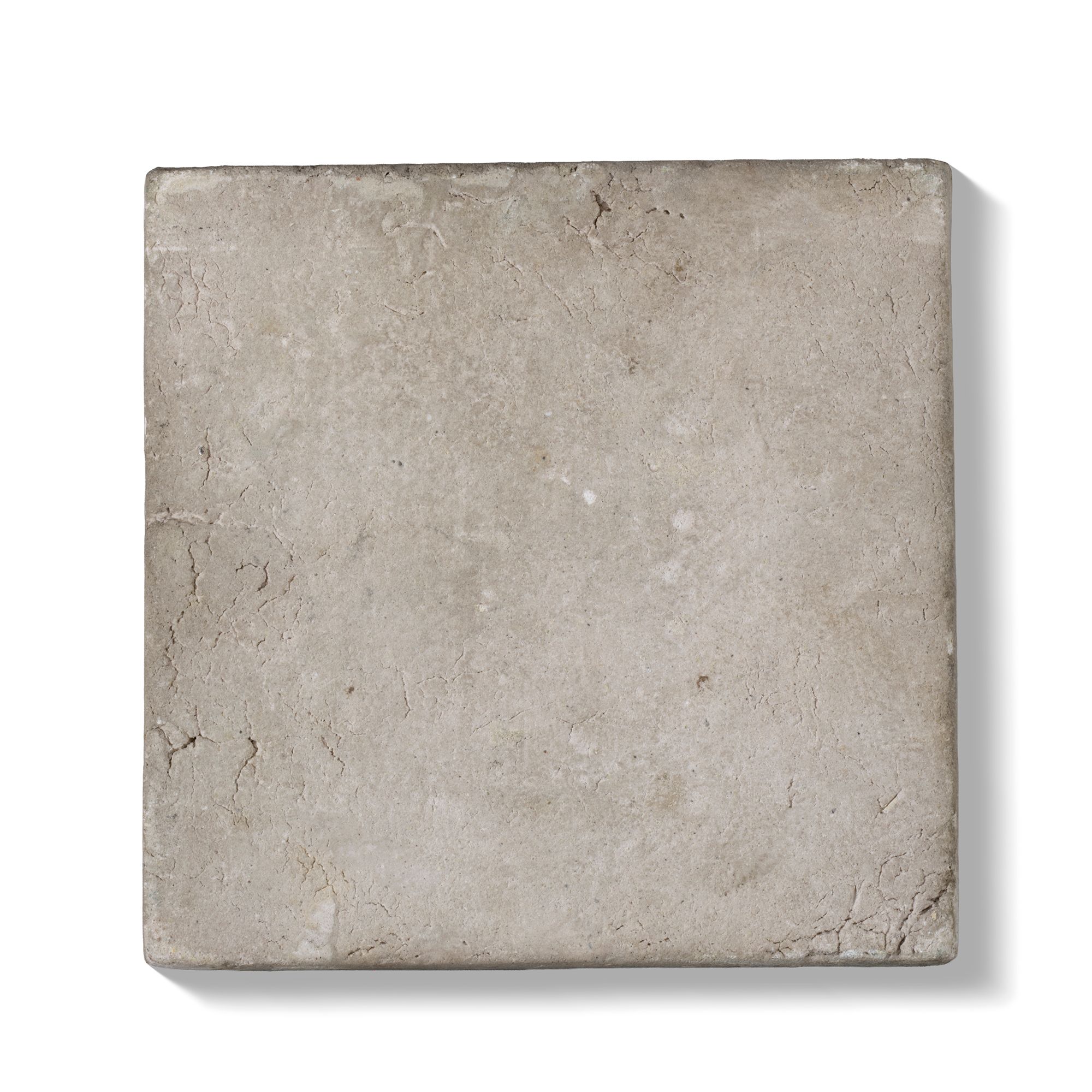 A Qajar ceramic tile depicts a poised horseman carrying a falcon, rendered in delicate underglaze tones of cobalt blue, turquoise, and green. The rider, shown in profile on a white horse, is set within a stylized floral landscape of lotus-like blossoms against a deep blue ground. A scrolling vine border frames the scene, enhancing its ornamental balance. The composition blends courtly symbolism—falconry as a mark of nobility—with the refined, decorative aesthetic typical of Qajar art. Tile: 14 by 19 cm.