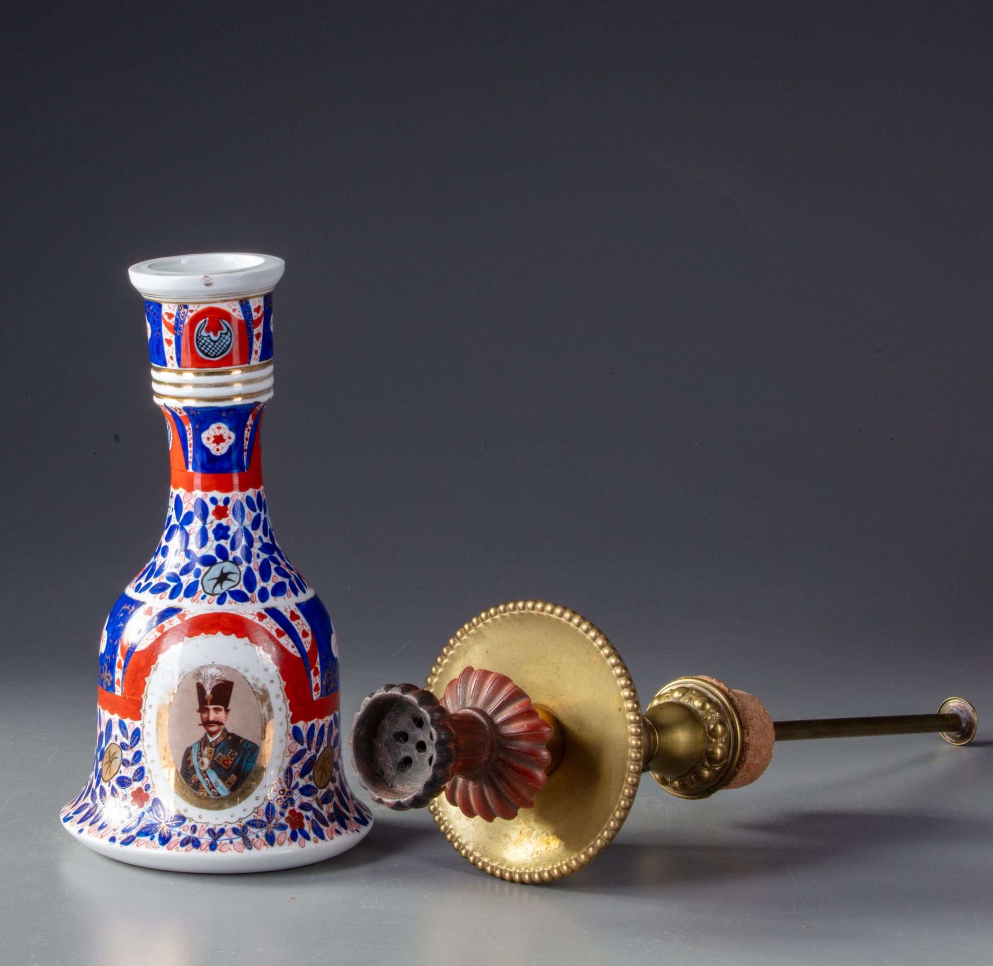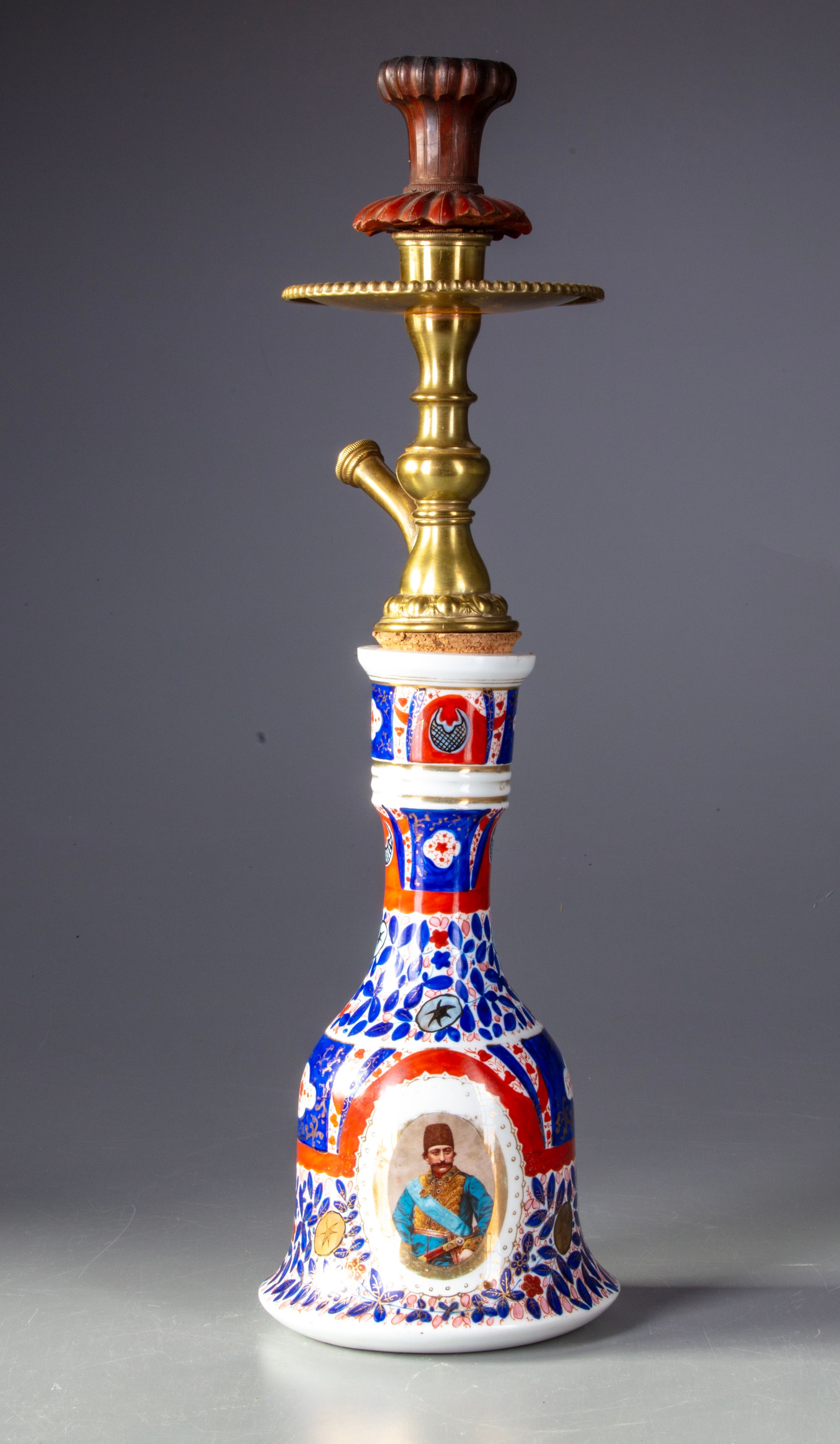 Bohemian porcelain huqqa for Islamic market, ca 27 cm, with brass body 42 cm,