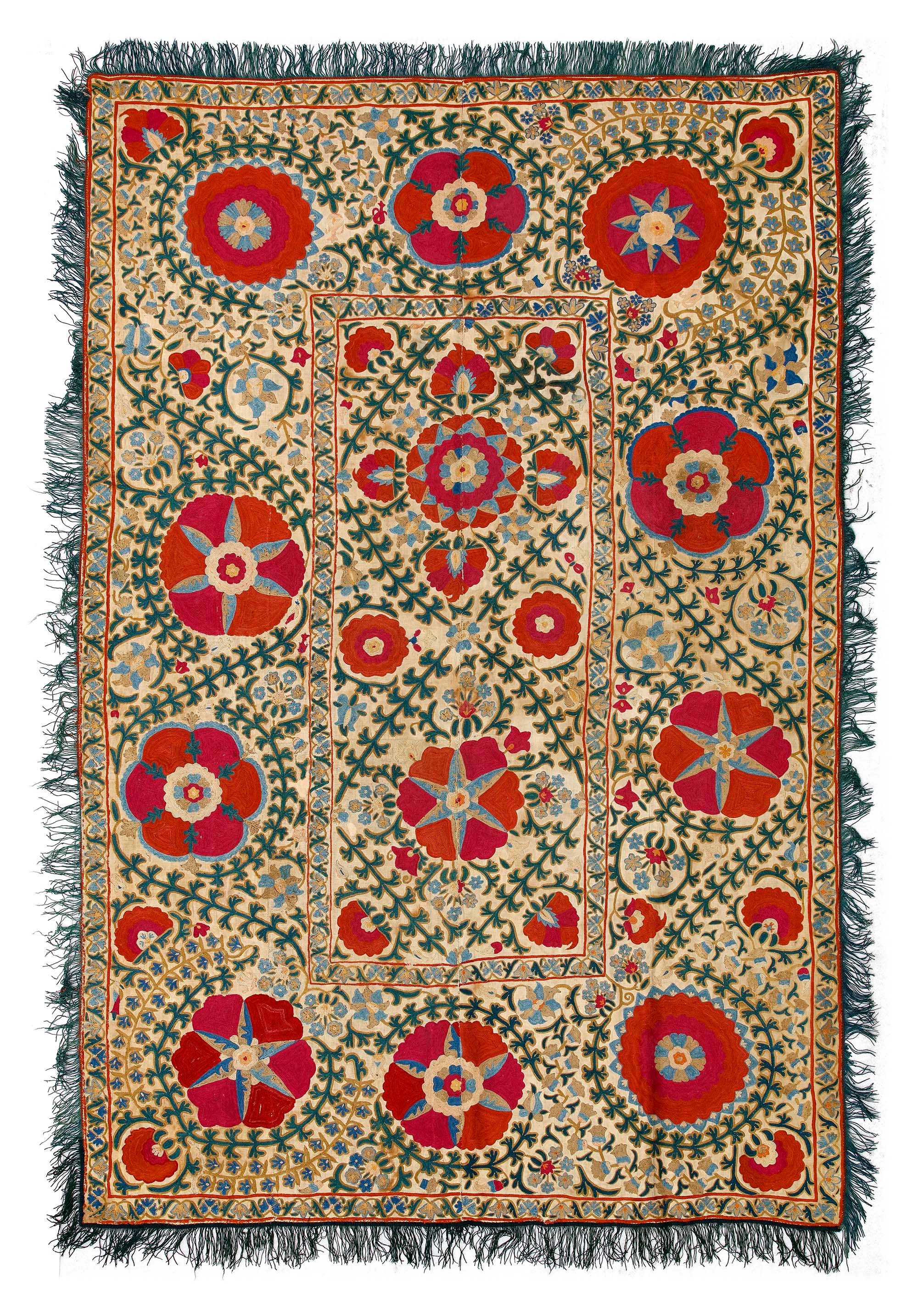 The large blossoms in red, show the characteristic of Kermina embroideries. 163 by 110 cm.