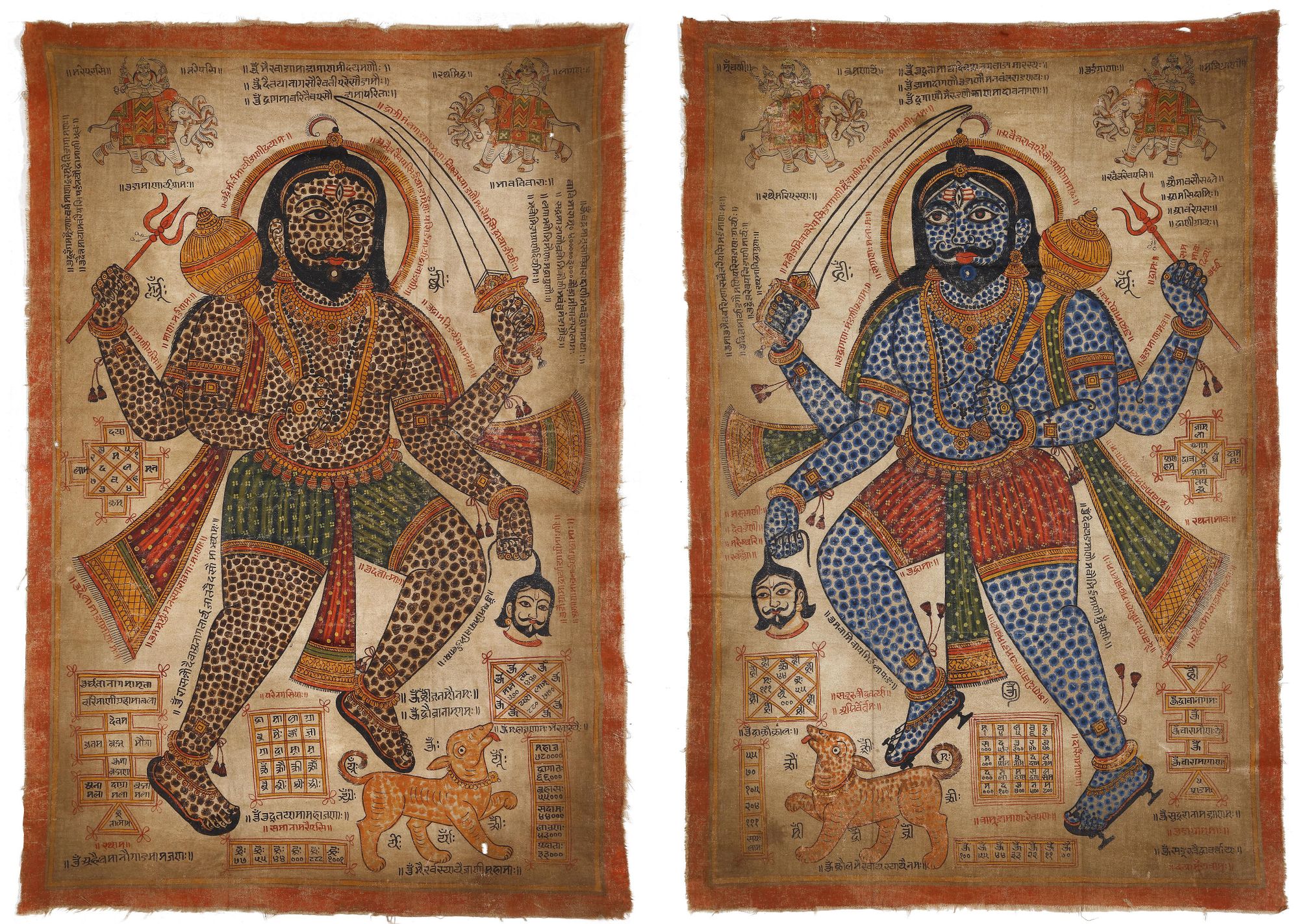 A PAIR OF COSMIC PAINTINGS OF BHAIRAV, MANDI, PUNJAB HILLS, NORTH INDIA, 19TH CENTURY