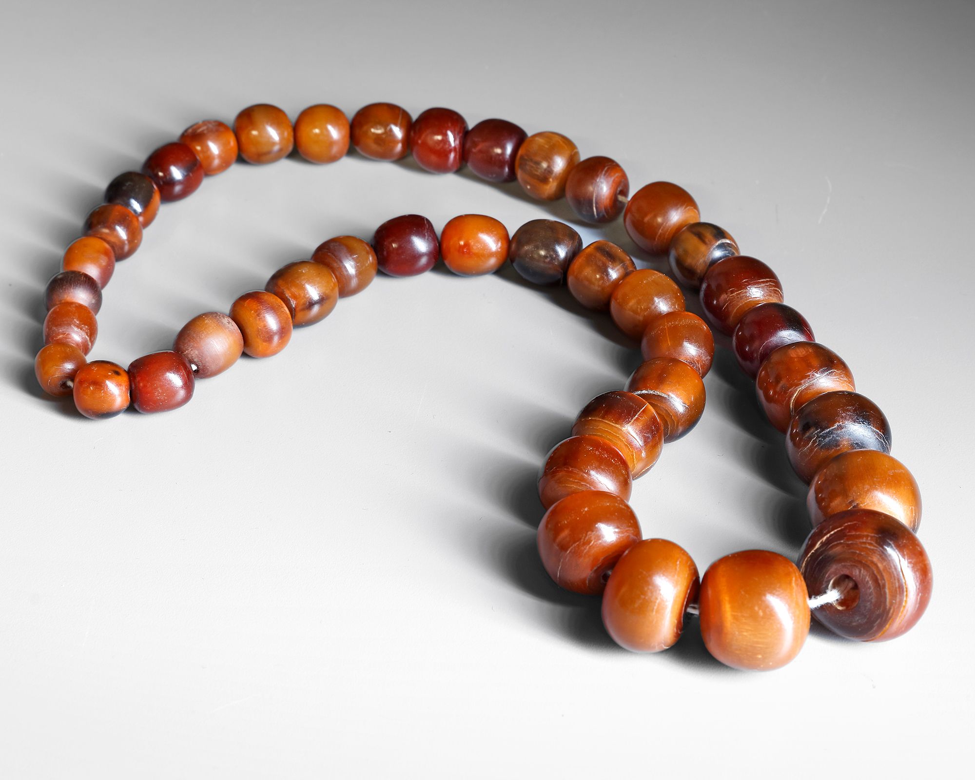 Of buffalo horn. 41 beads, 100 cm. length