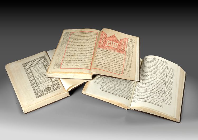4 volumes , An-Nihaya Fi GarIb AL-Hadith Wa al-athar by the Imam Majd Al-Din Abi Al-Saadat Al-Mubarak bin Muhammad Al-Jazari, known as Ibn Al-Atheer And with it in the text of the book, “Al-Dur Al-Nathir Takhliz Nihayat Ibn Al-Atheer by Imam Jalal Al-Din Al-Suyuti.” And in the margin is the book “Mufradat or the Vocabulary of Al-Ragheb Al-Isfahani Fi GarIb Quran” Printed by Omar Hussein al-Khashab in Cairo, Egypt, in 1323 AH 27 by 20.5 cm