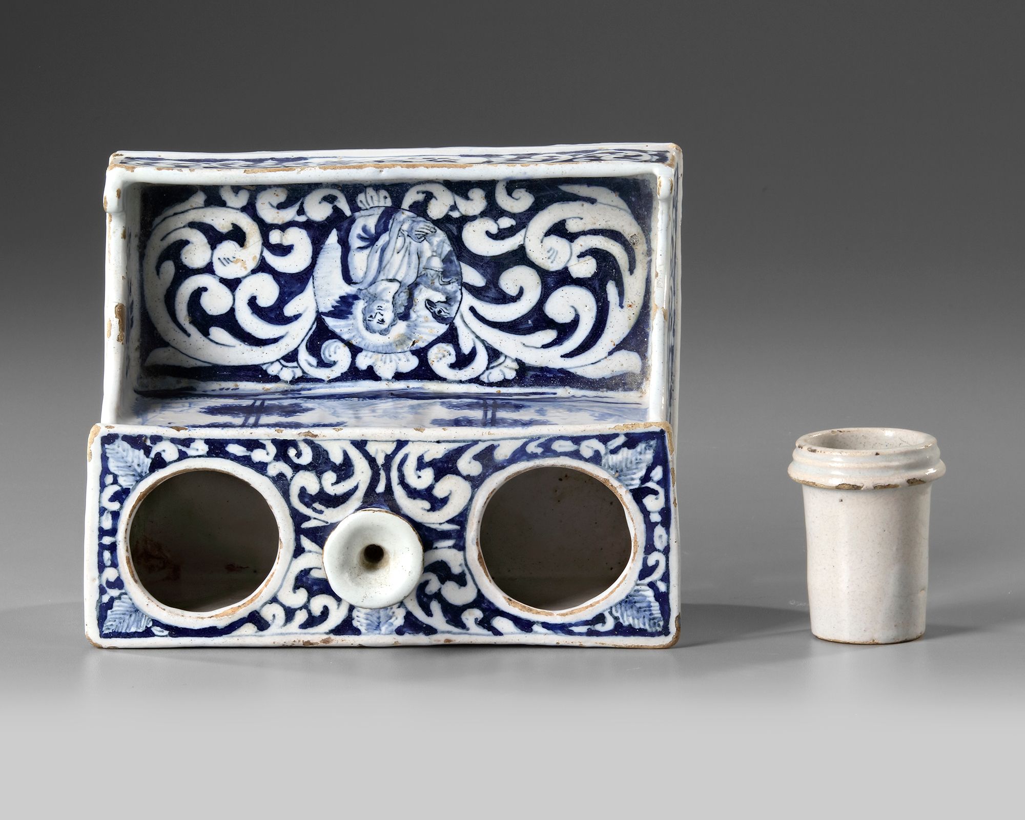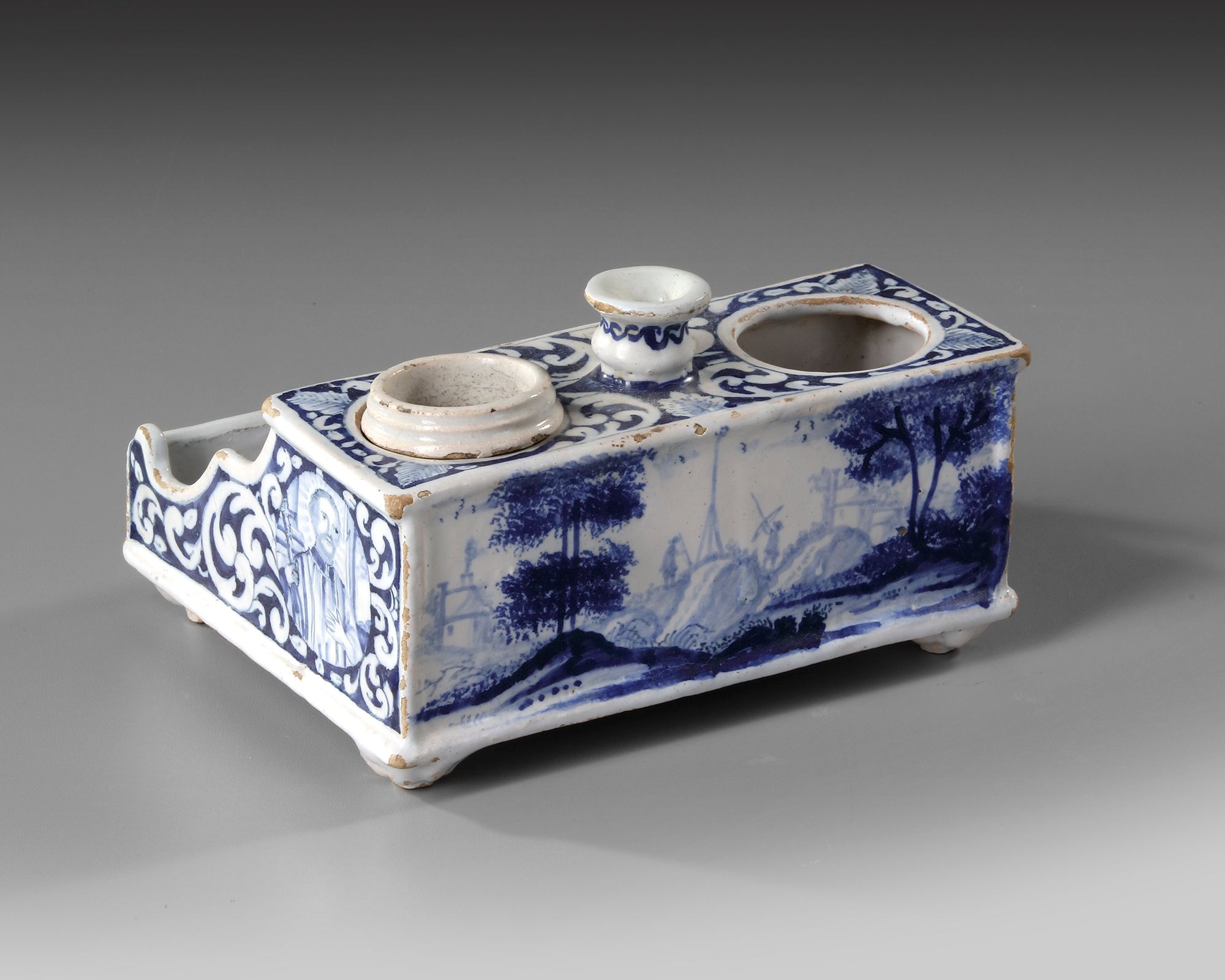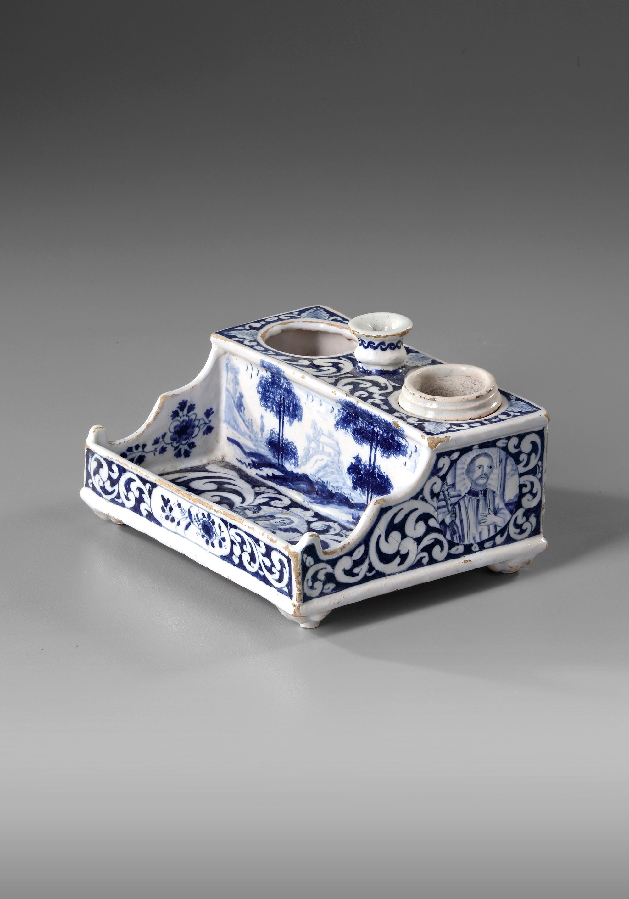 Sponge technique landscape decor. Sides with cartouches depicting saints.