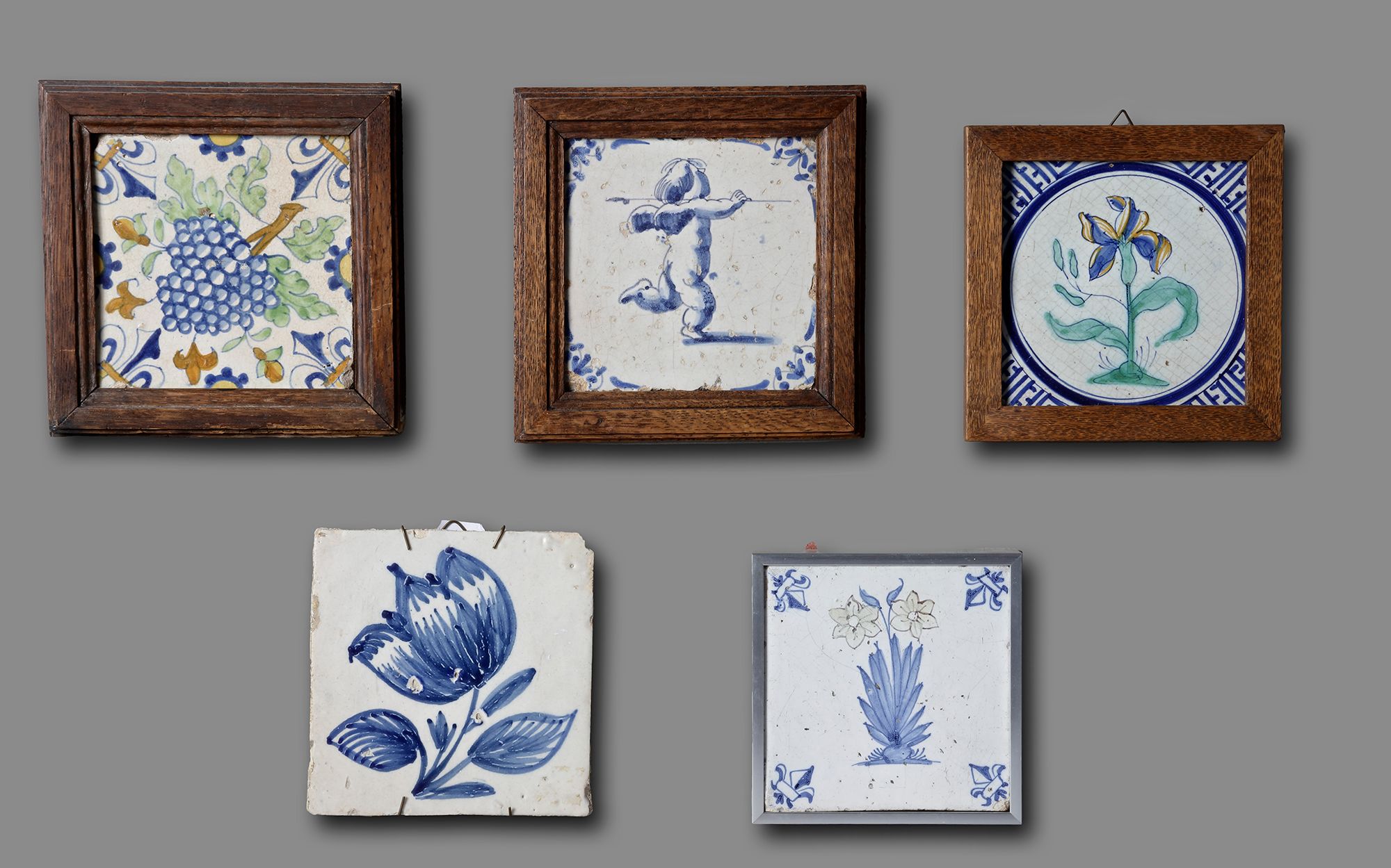 Dutch Delftware tiles, 17th century. One of the late 18th century. Good/fair condition