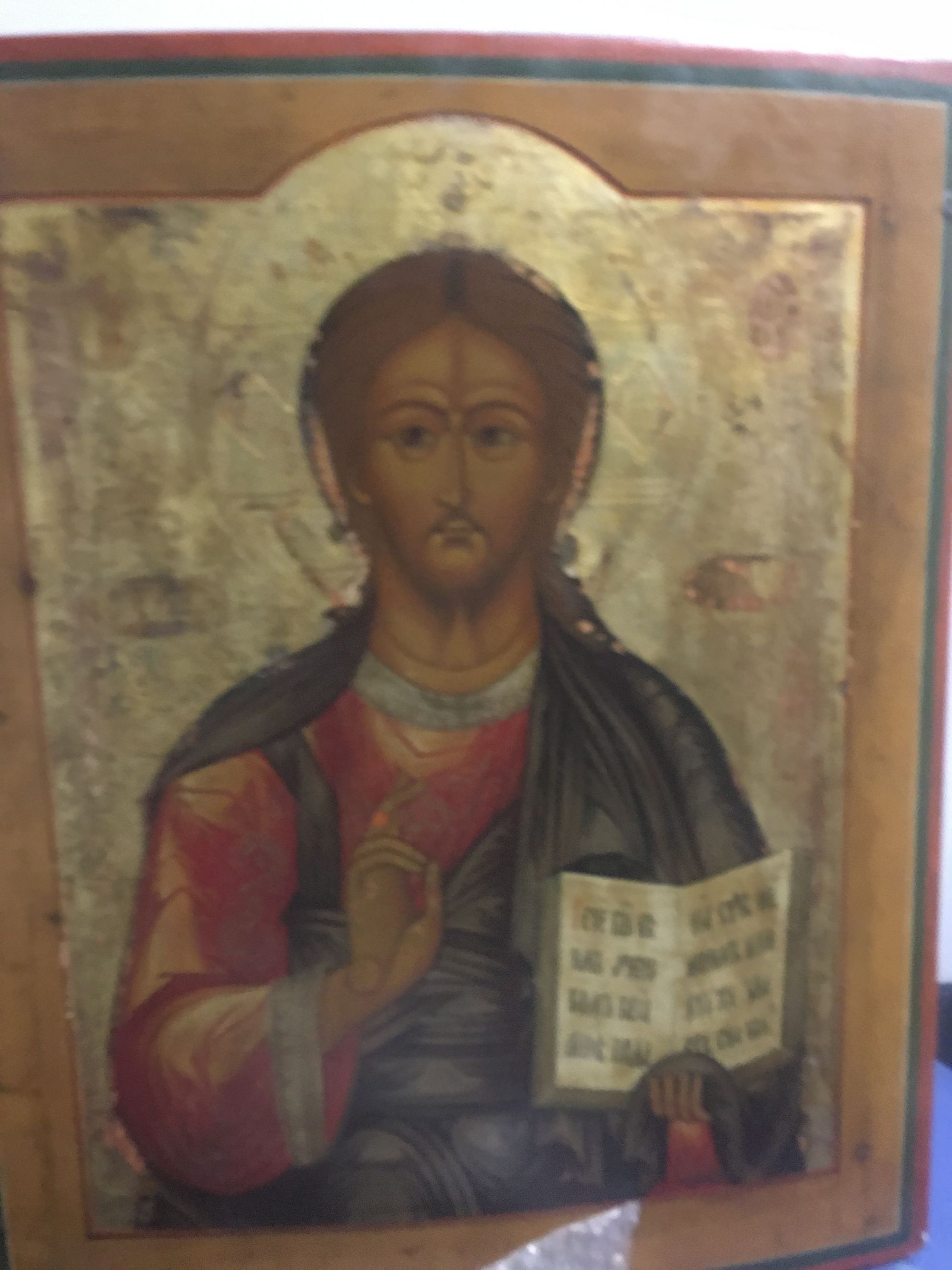 Some damage to the golden background where a now missing halo was attached. 35 by 54.5 cm.