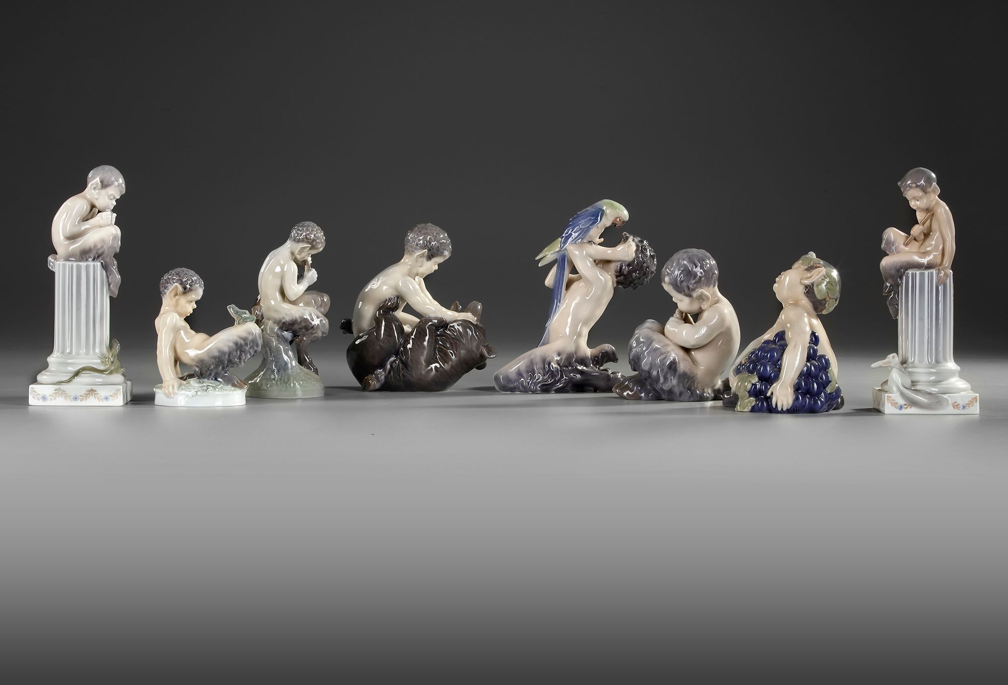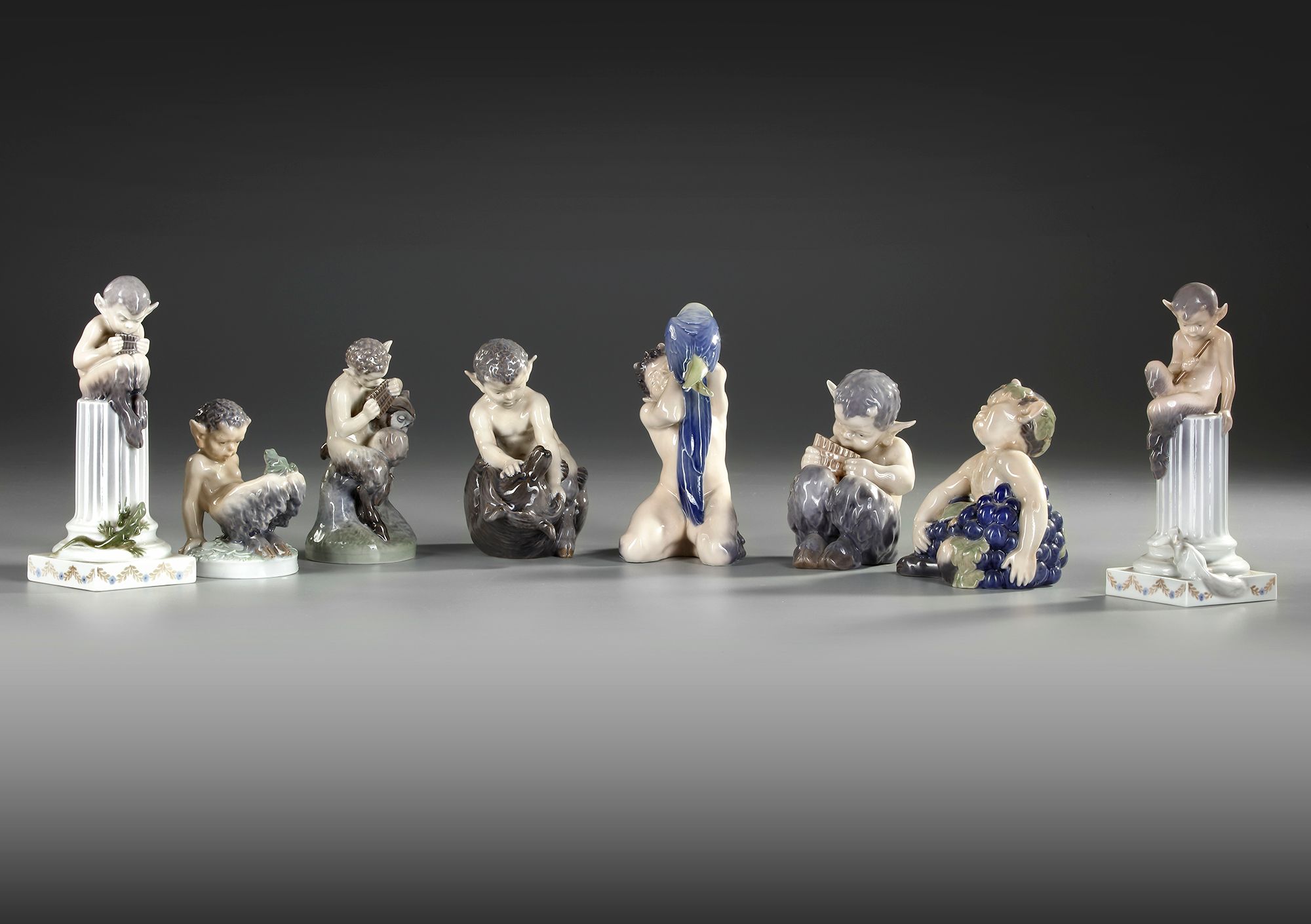 Set of 8 Royal Copenhagen models by the design of Christian Thomsen. Good condition. Height 22 cm. (the tallest)