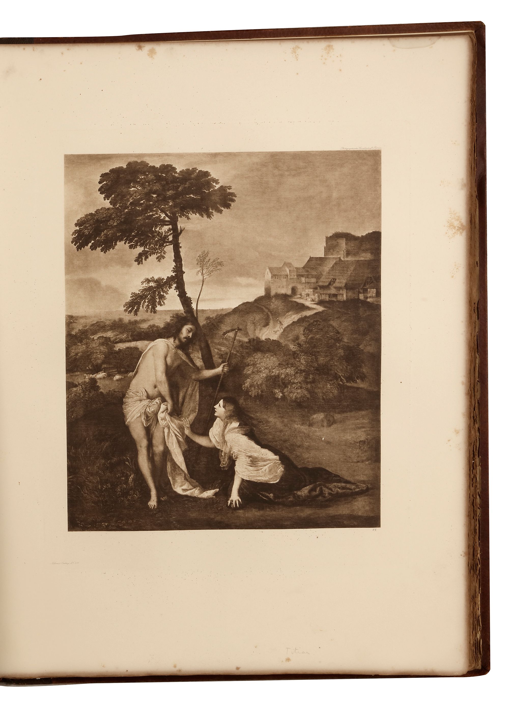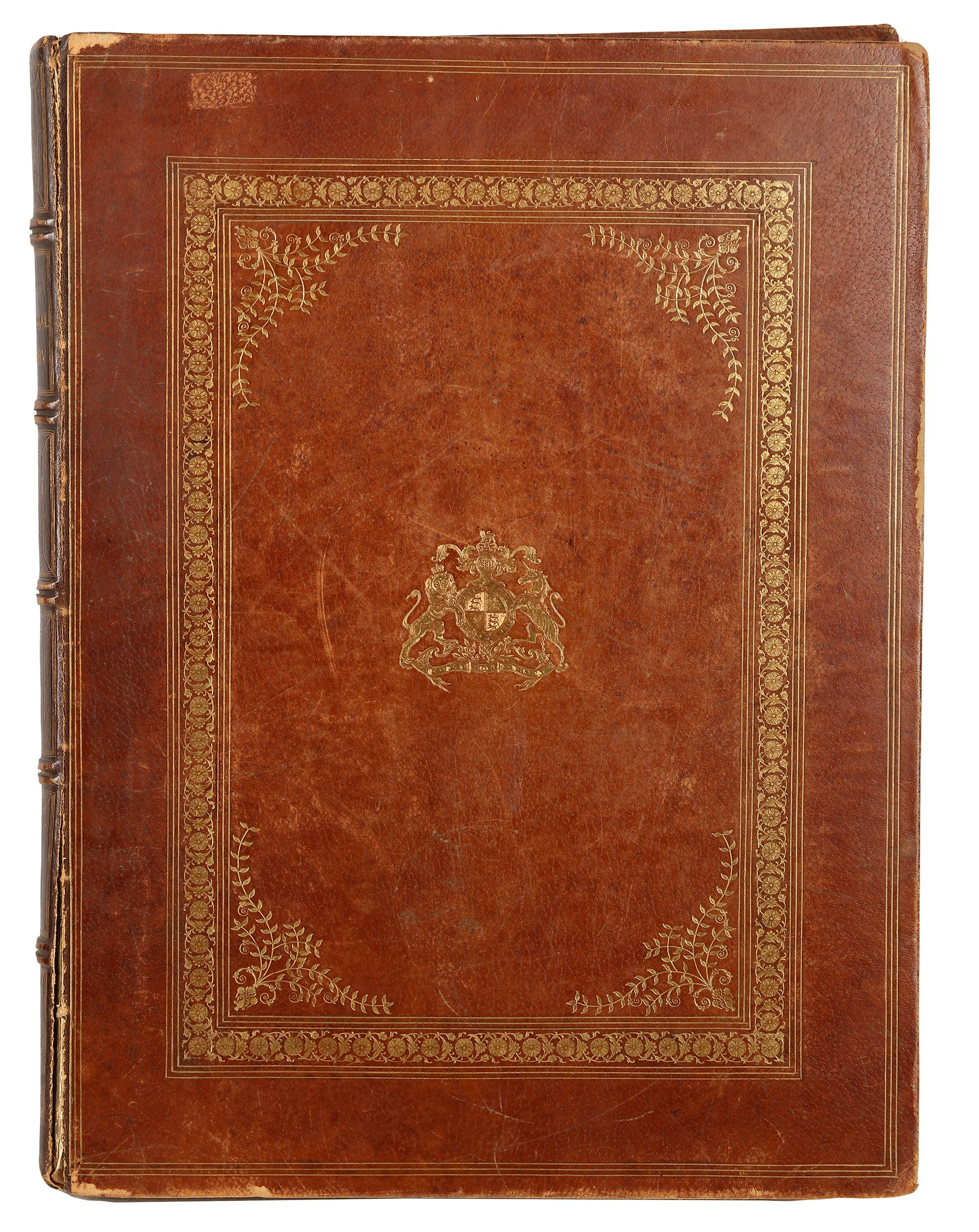 The plates are loose within a leather-bound portfolio with protective flaps. 19th-century red morocco, upper cover gilt-stamped with arms of England within a gilt border.