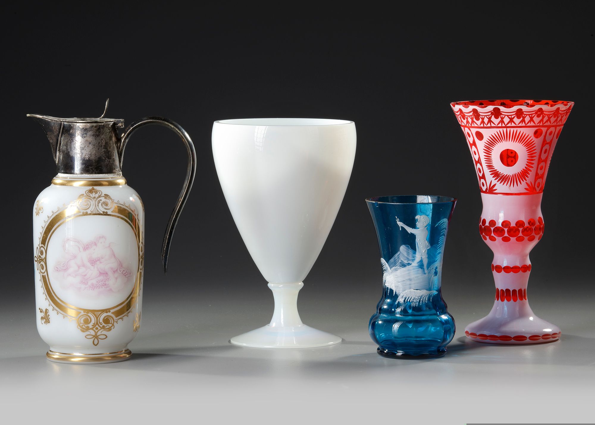 A GROUP OF FOUR DIVERSE GLASS WORK, 19TH CENTURY-EARLY 20TH CENTURY