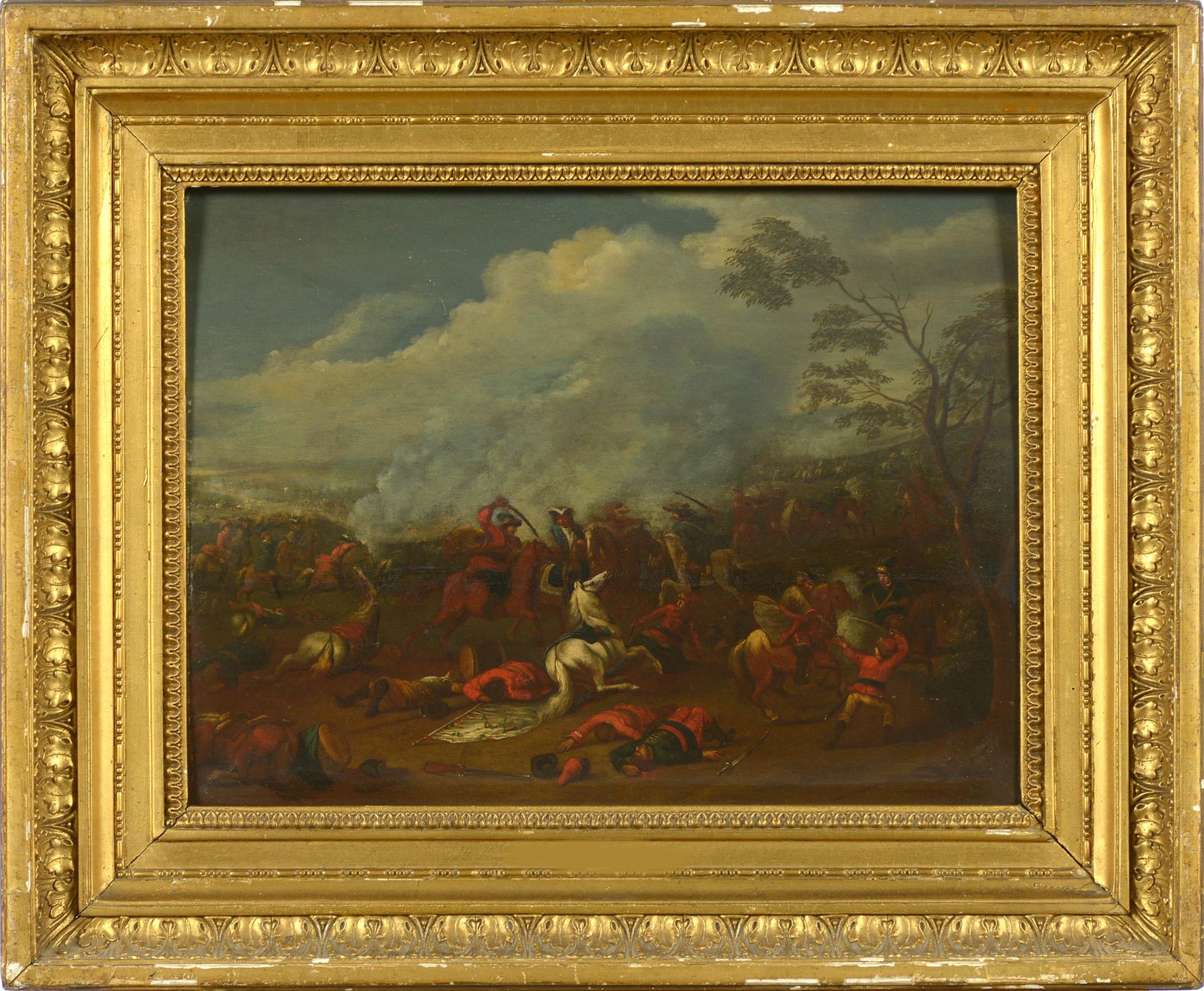 Oil on canvas "Battle scene against the Ottomans". Anonymous. Dutch school. Period: around 1700. 33.3 by 44cm.