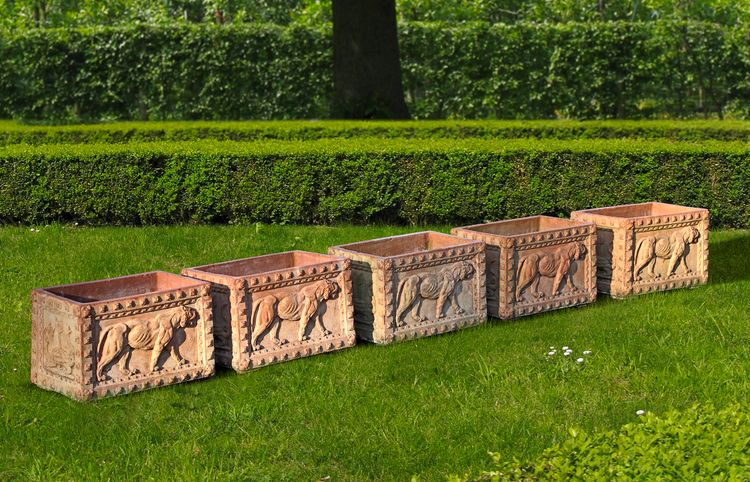 Each with a wild cat cast in relief to the front. 37 cm. high, 62 cm. wide, 39 cm. deep.