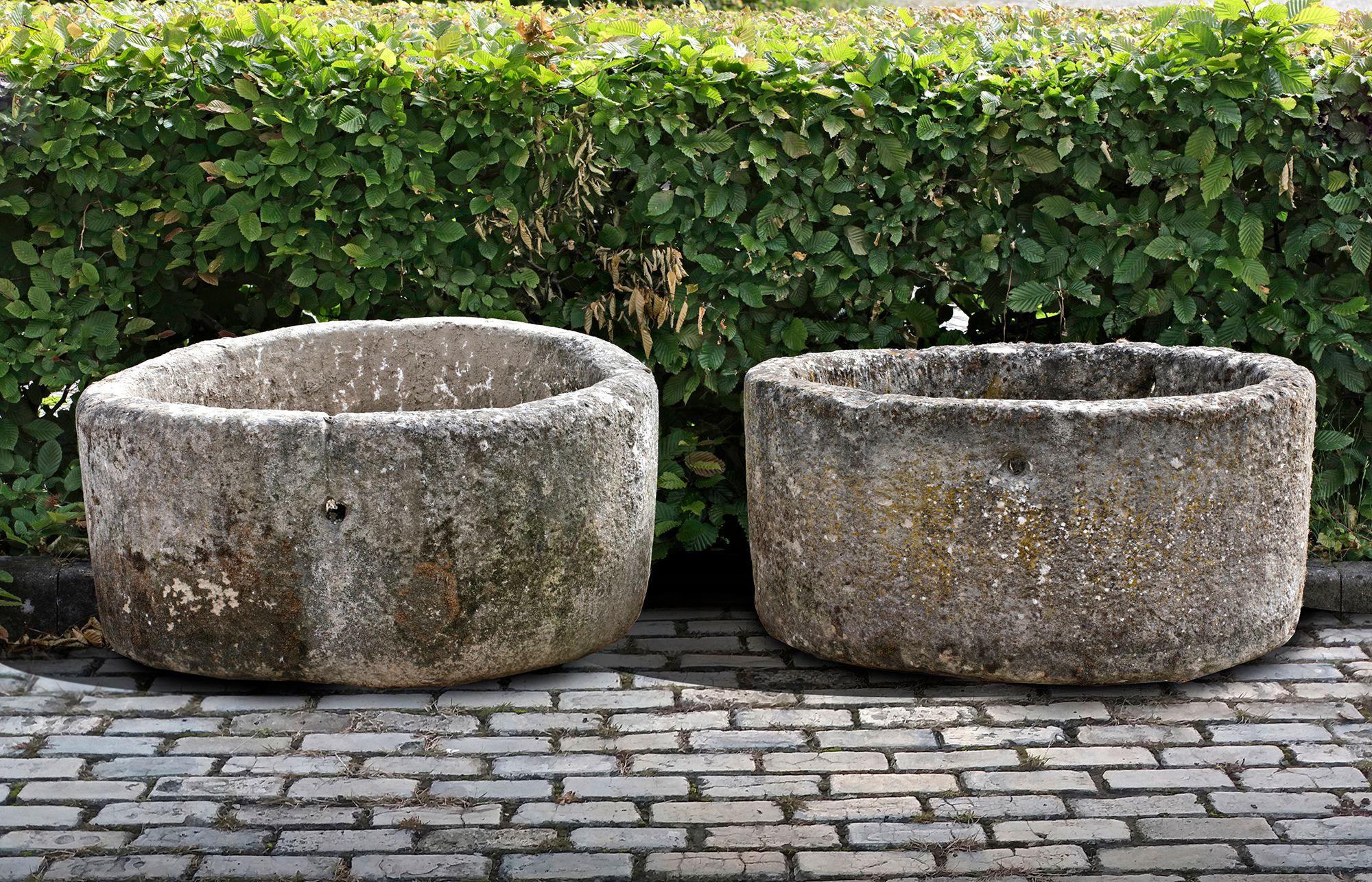 Each 38 cm. high, the larger 82 cm. diameter, the smaller 80 cm. diameter.
