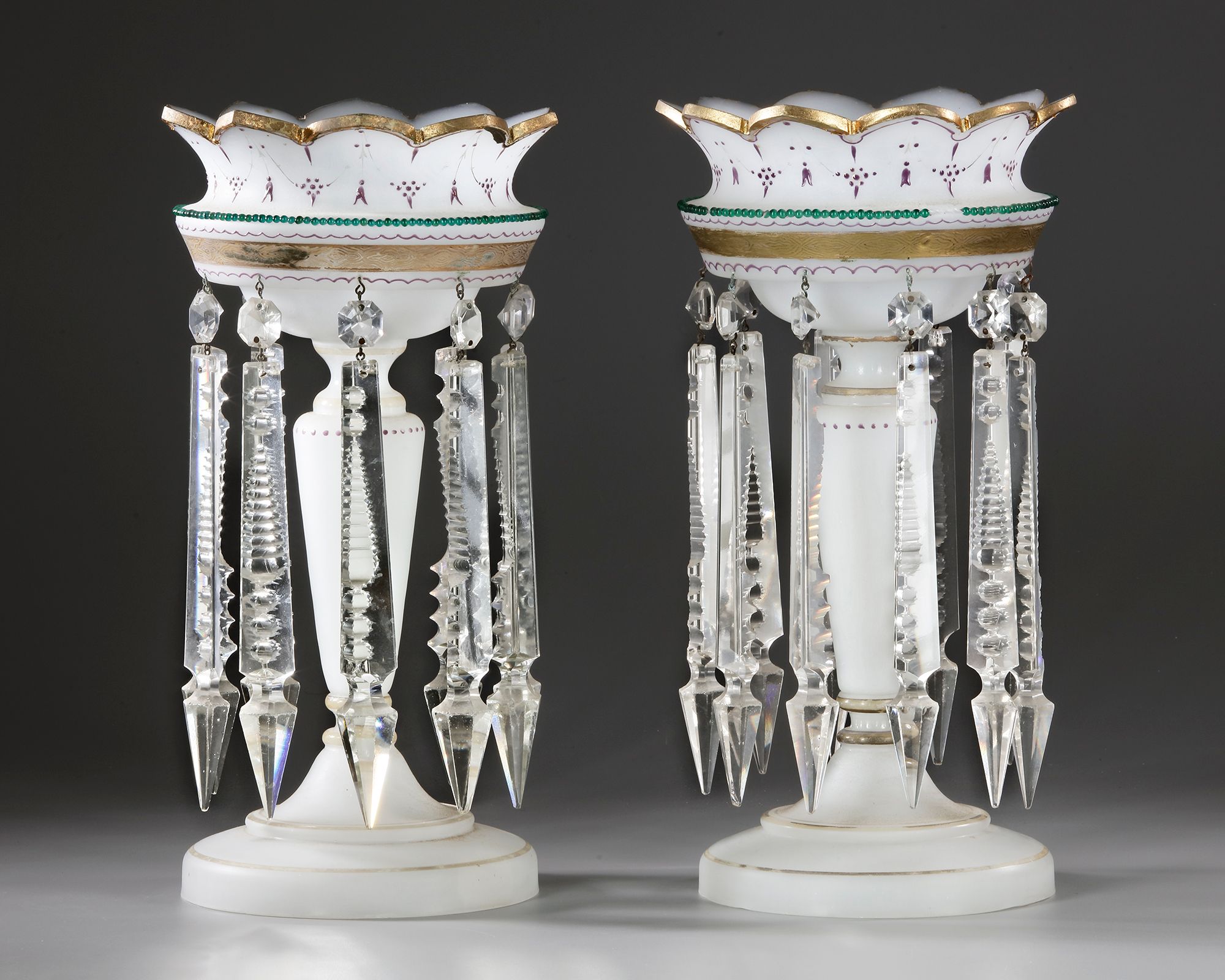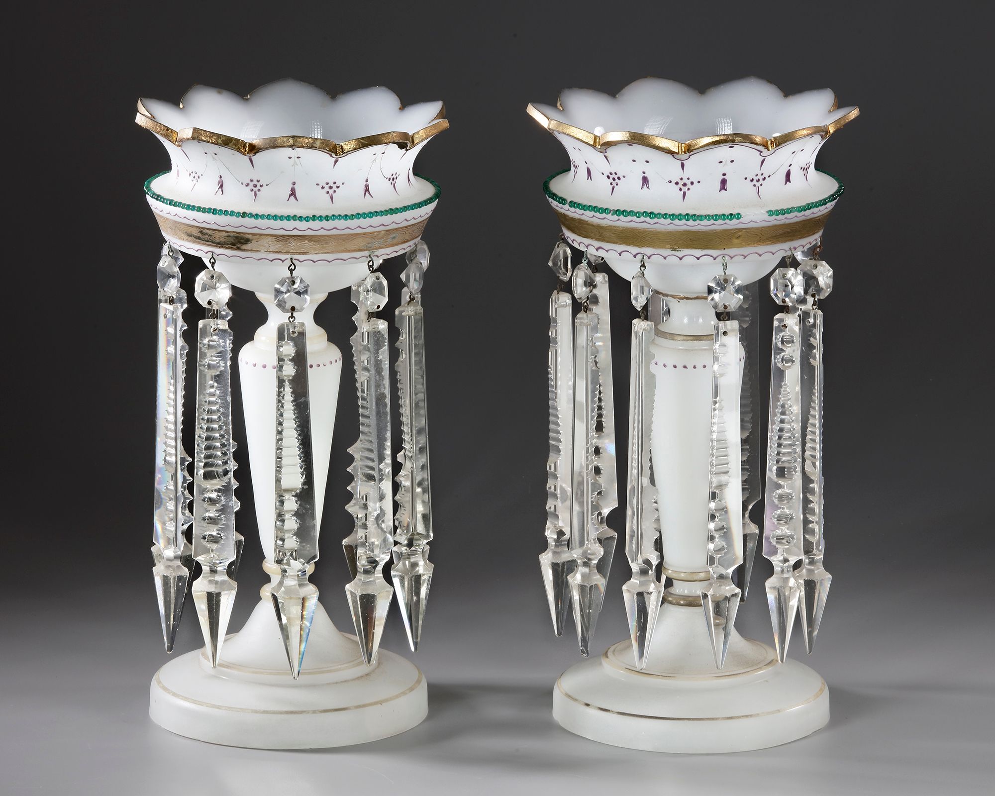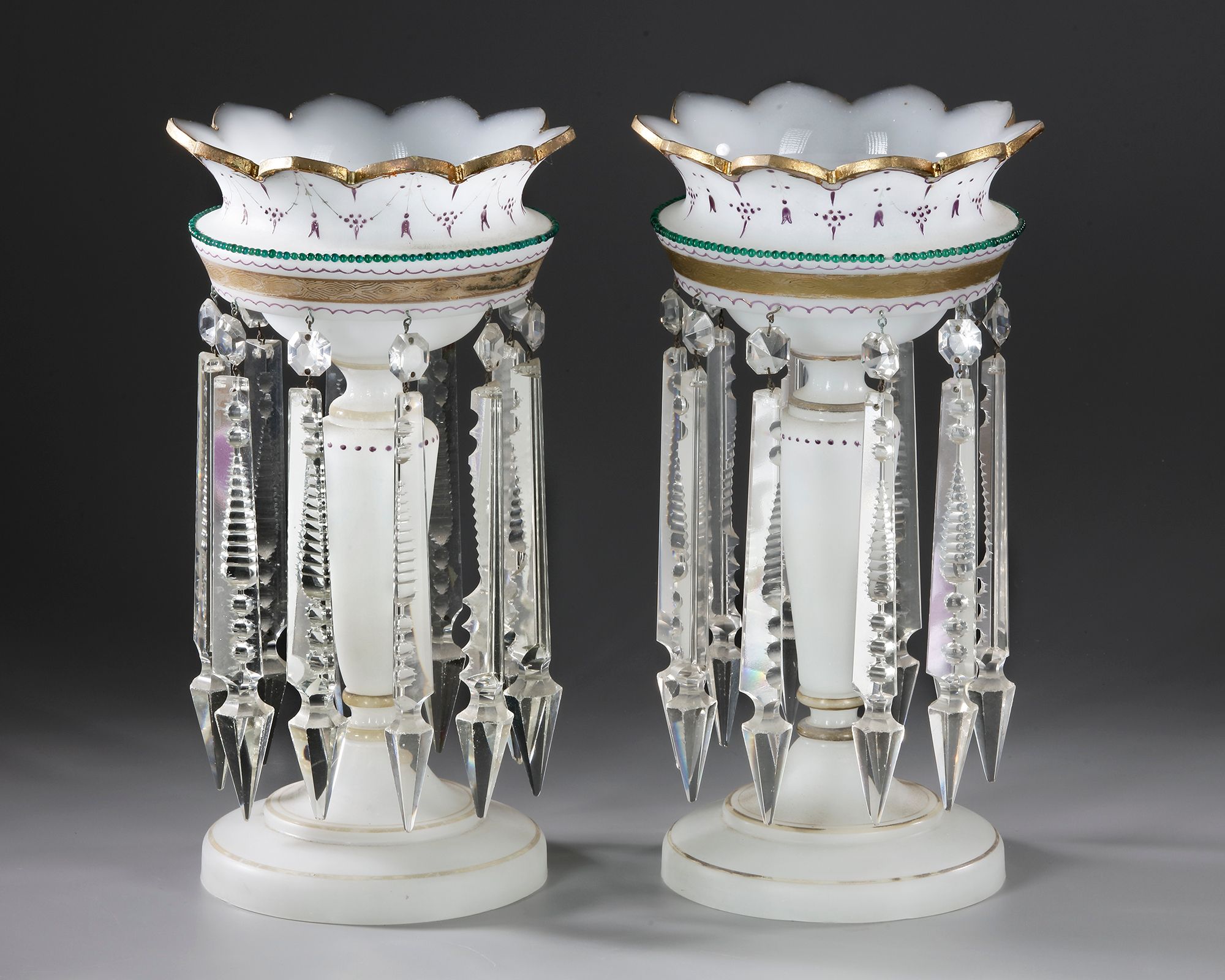 With gold enameled decoration and crystal pendants. Height: 42 cm. Diameter: 16,5 cm.