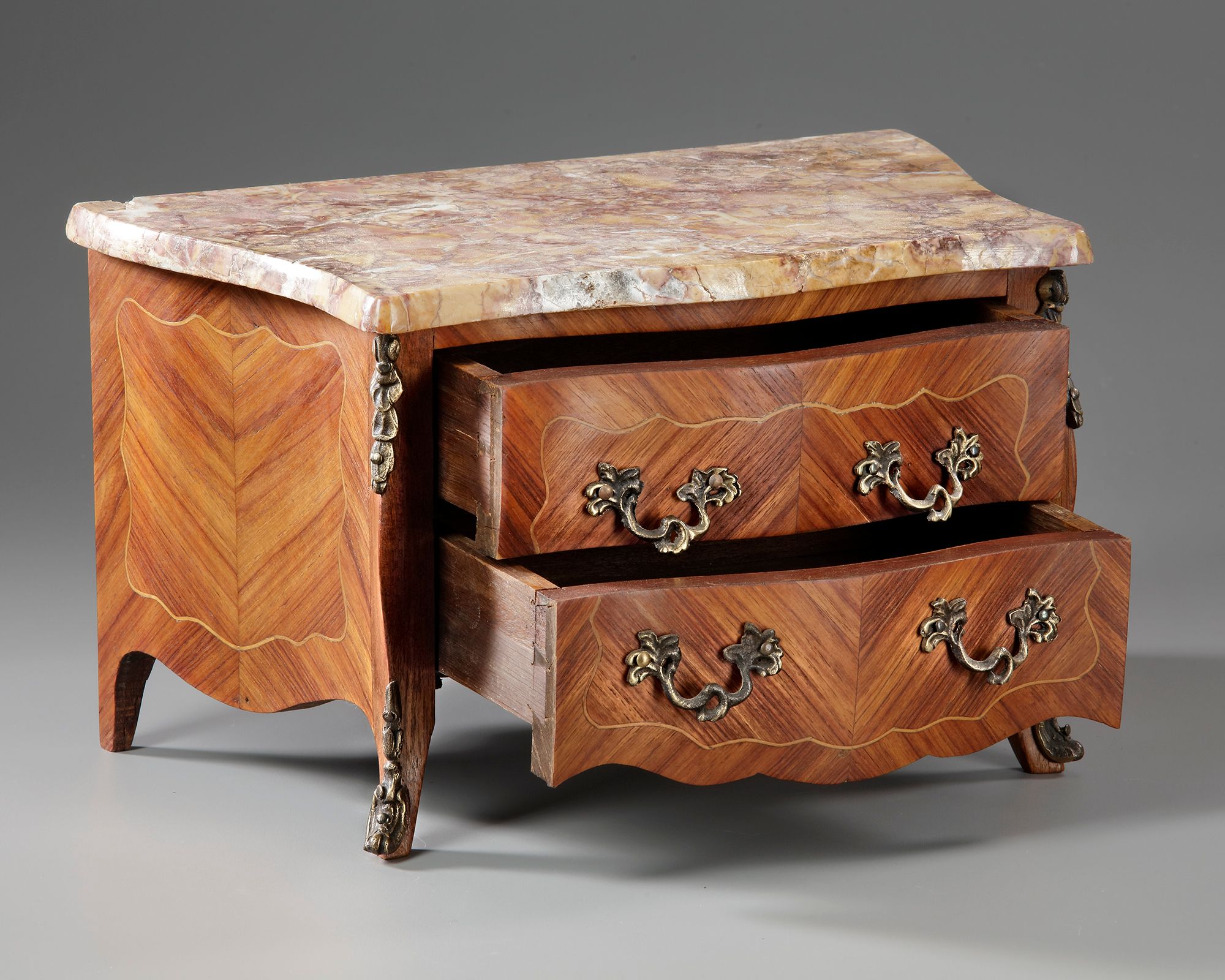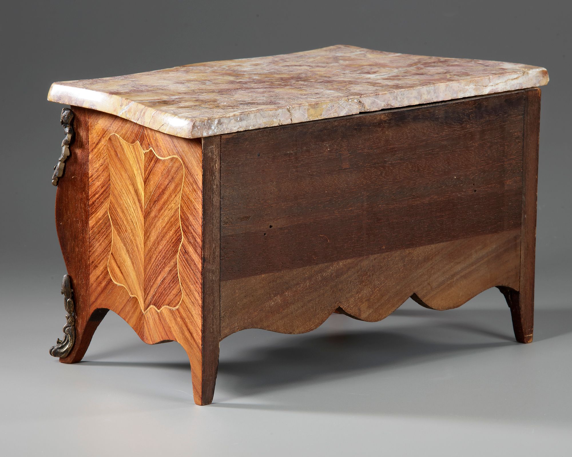 With gilt bronze ornaments, and a marble top. Height: 18 cm. Width: 30 cm. Depth: 16,5 cm.
