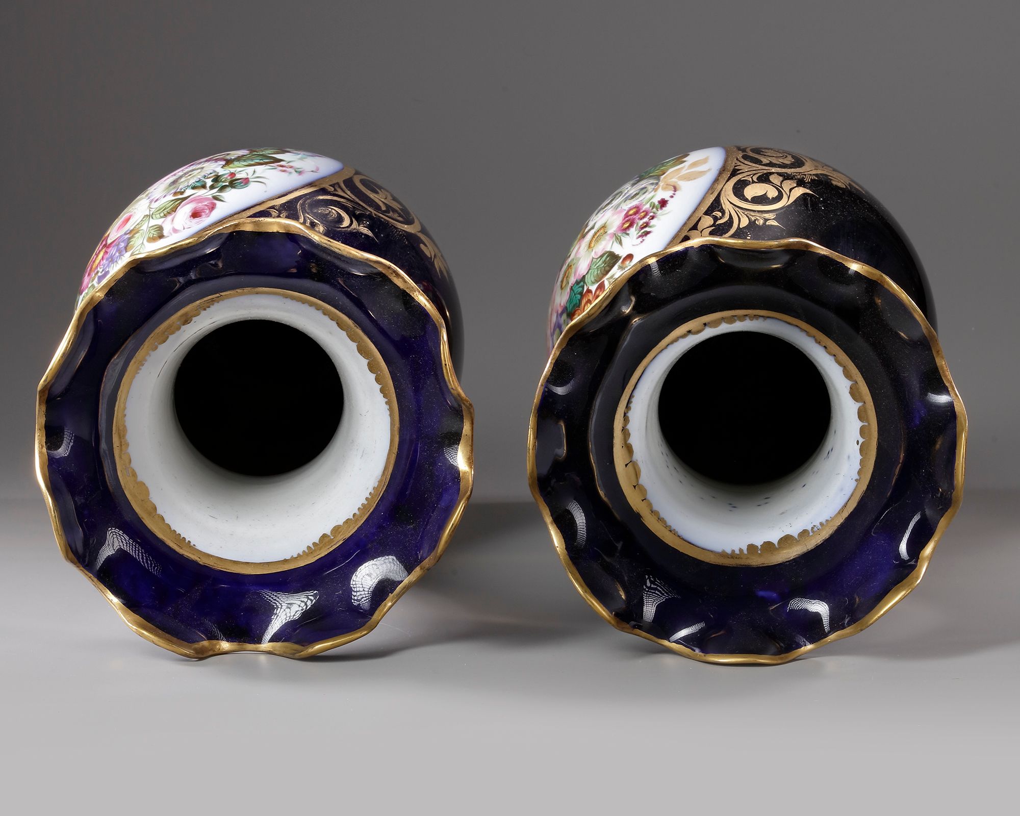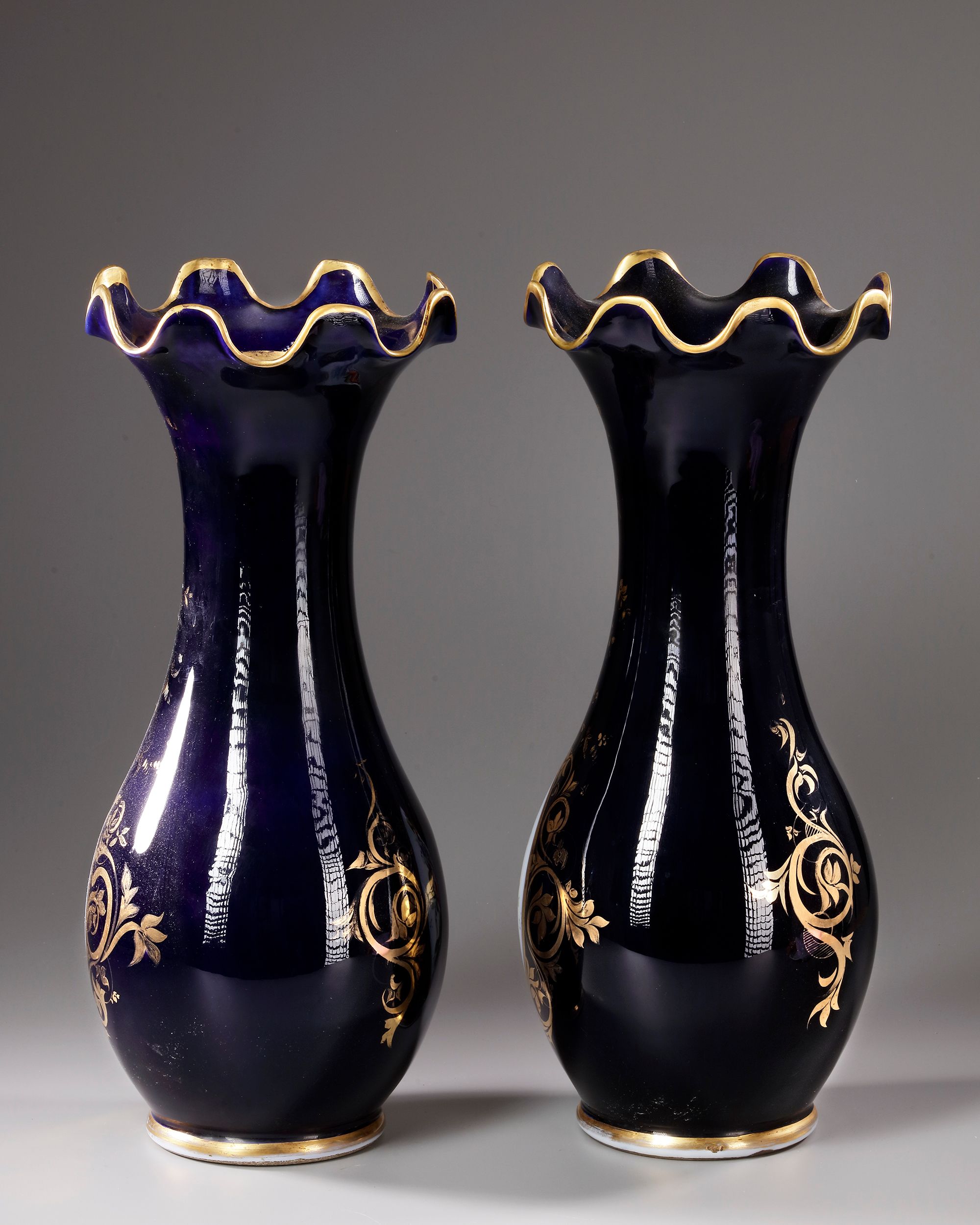 A PAIR OF BLUE ENAMELED PORCELAIN BALUSTER VASES, LATE 19TH CENTURY