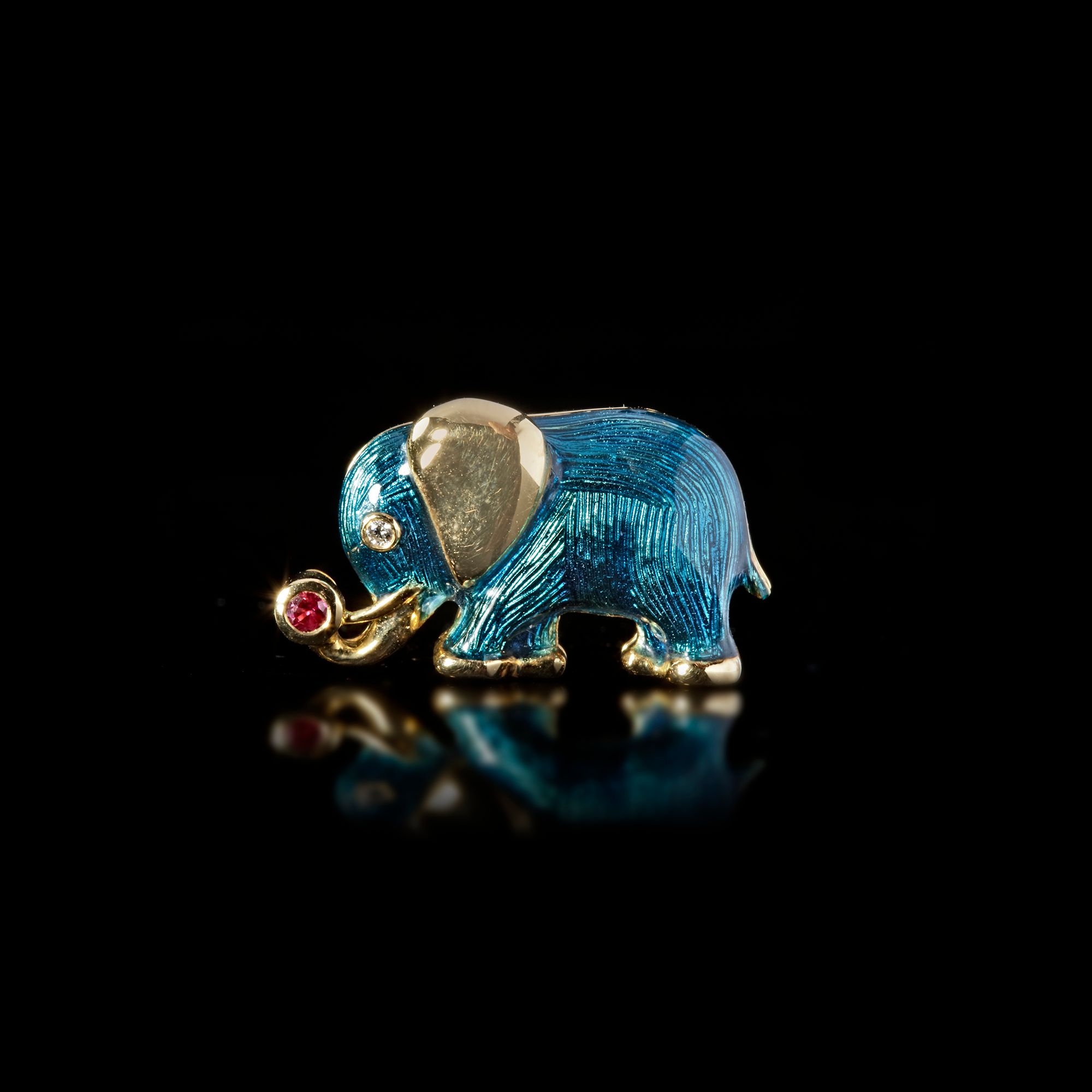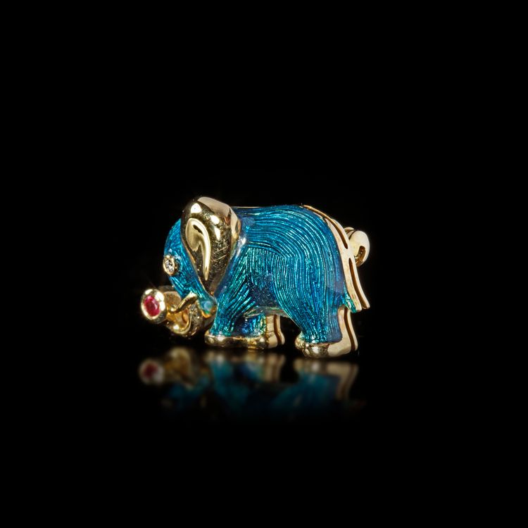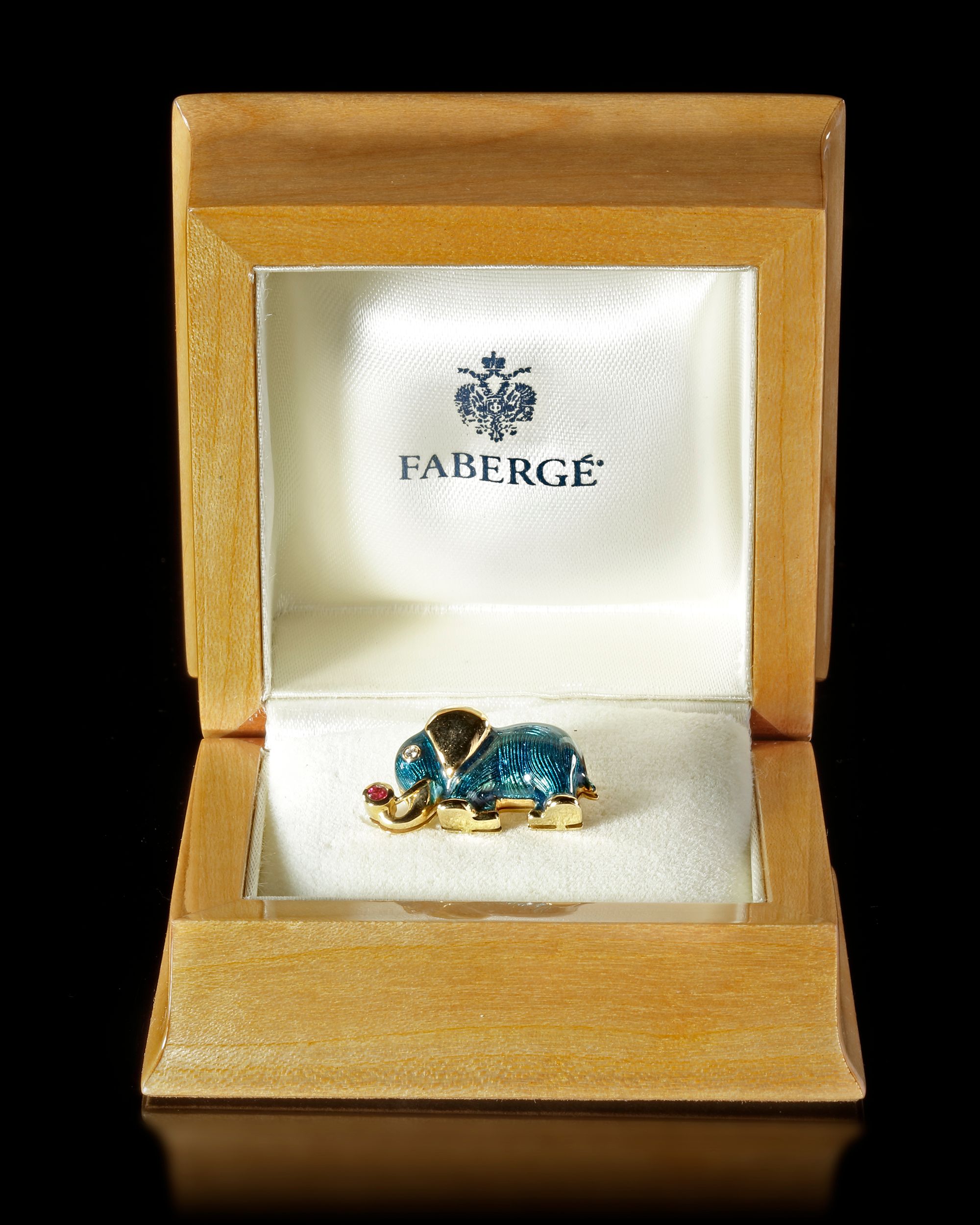 A BROCHE, ENAMELED, FABERGE, GOLD, LIMITED EDITION 2.5 by 1.9 cm.