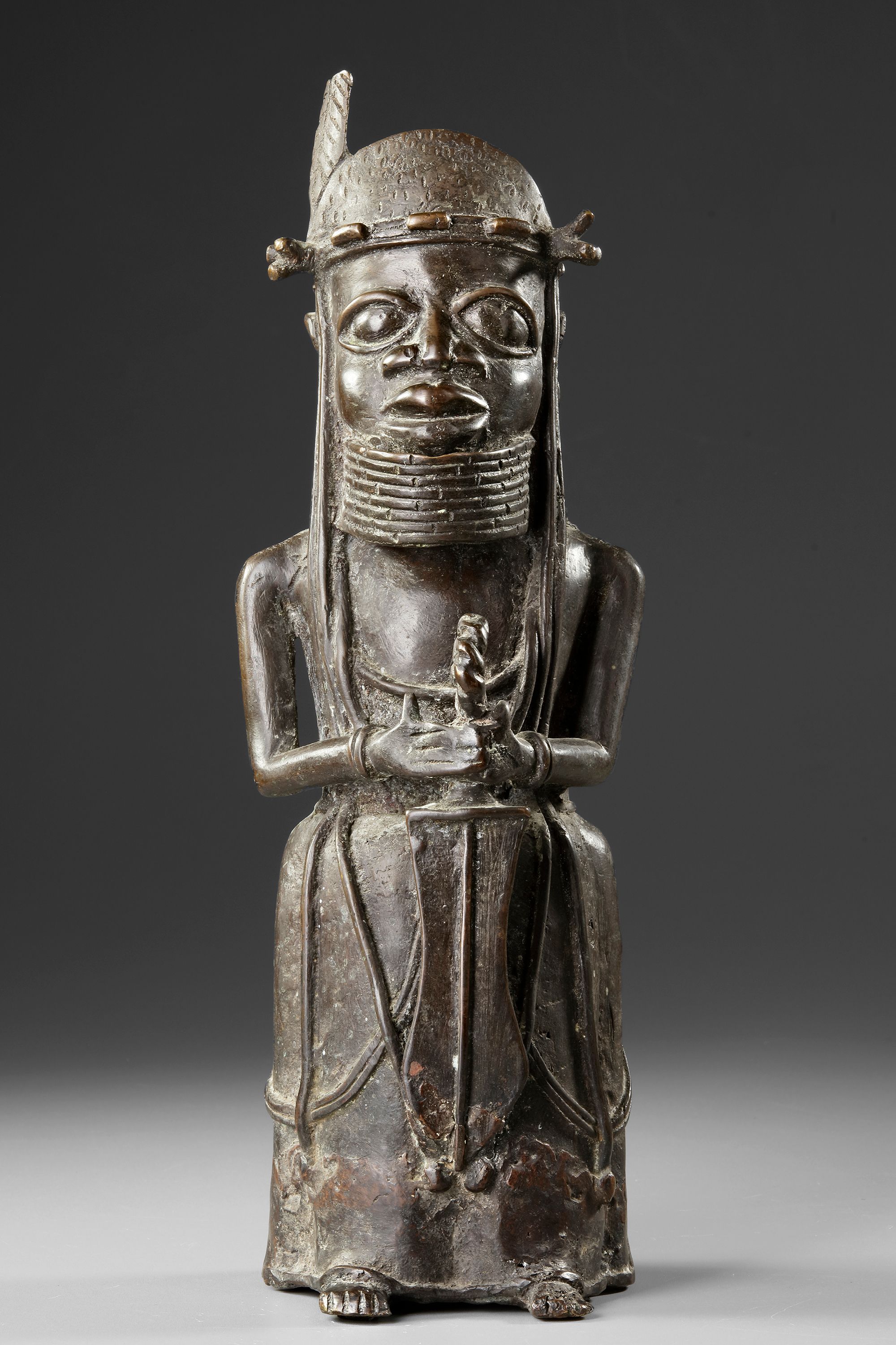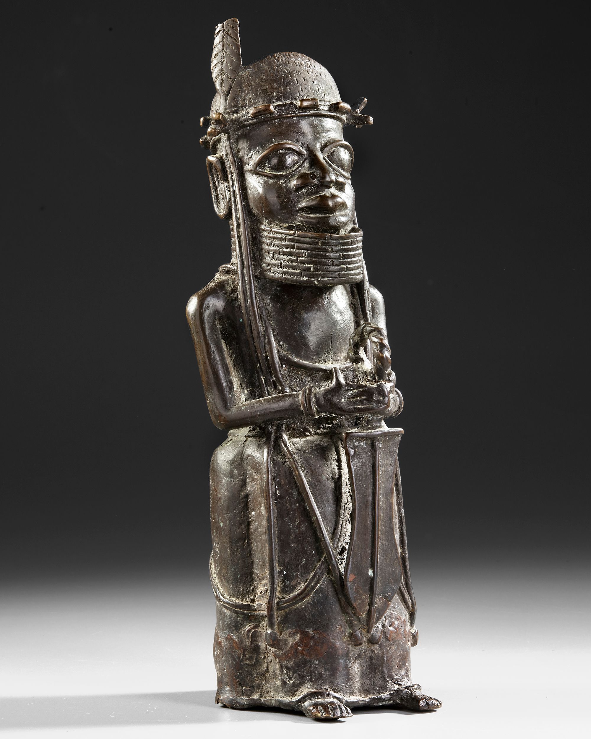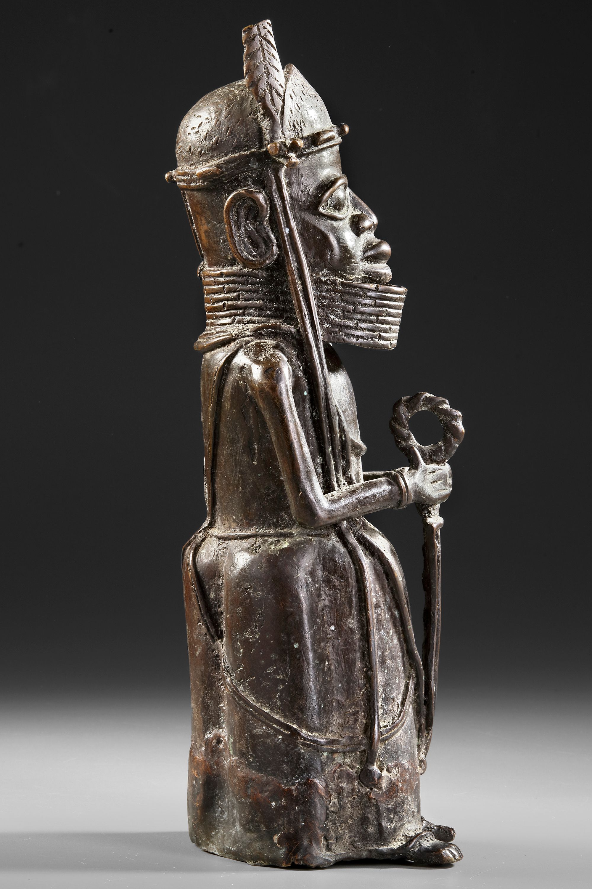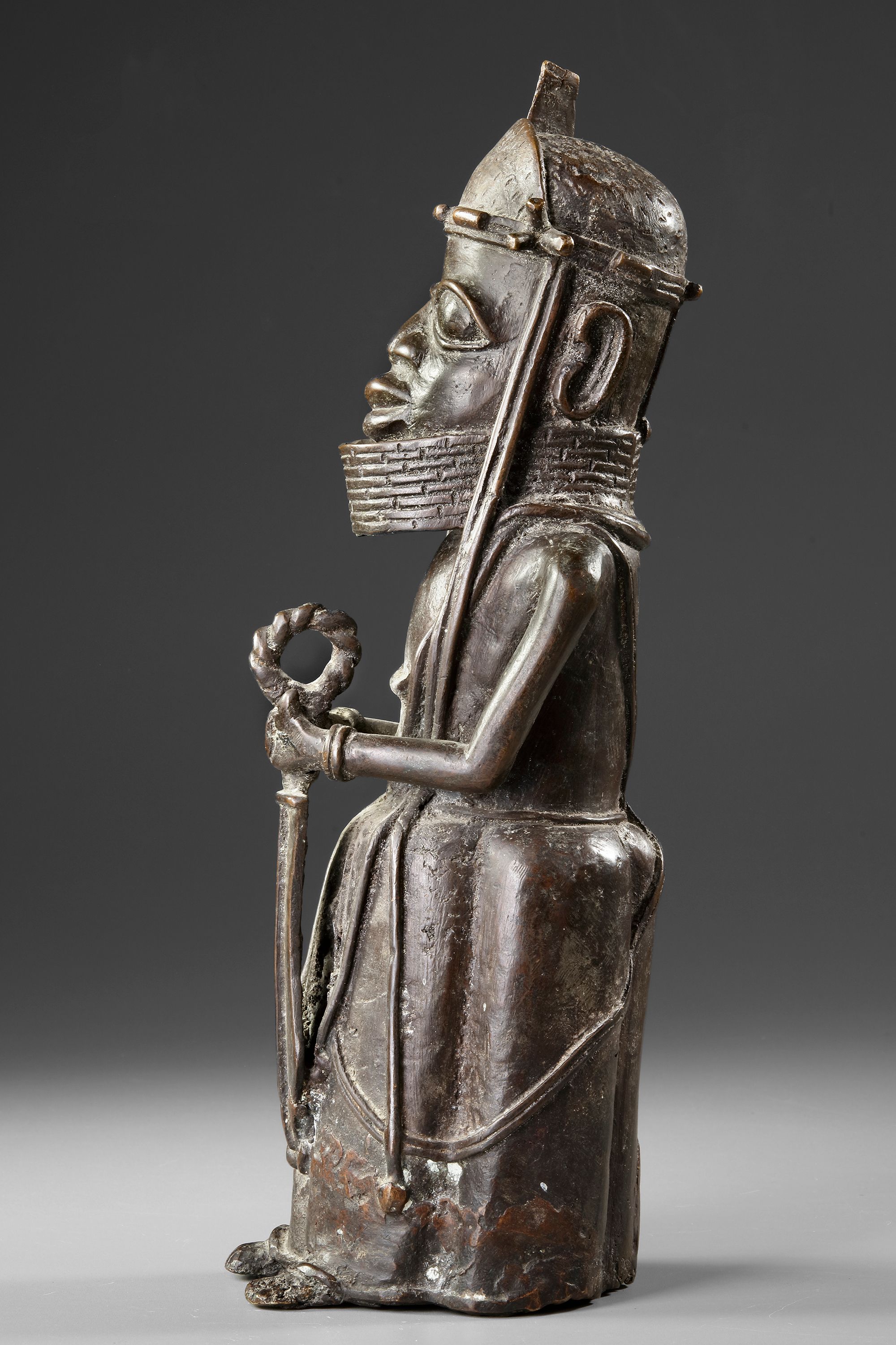Weight 4179 grams. Excellent casting of a royal warrior altar figure. Clearly defined and expressive. Probably 18th century or before. Old French collection. By repute acquired in the 1930’s in the London art trade by the parents of the late owner, hence by descent. Height 39.5 cm.