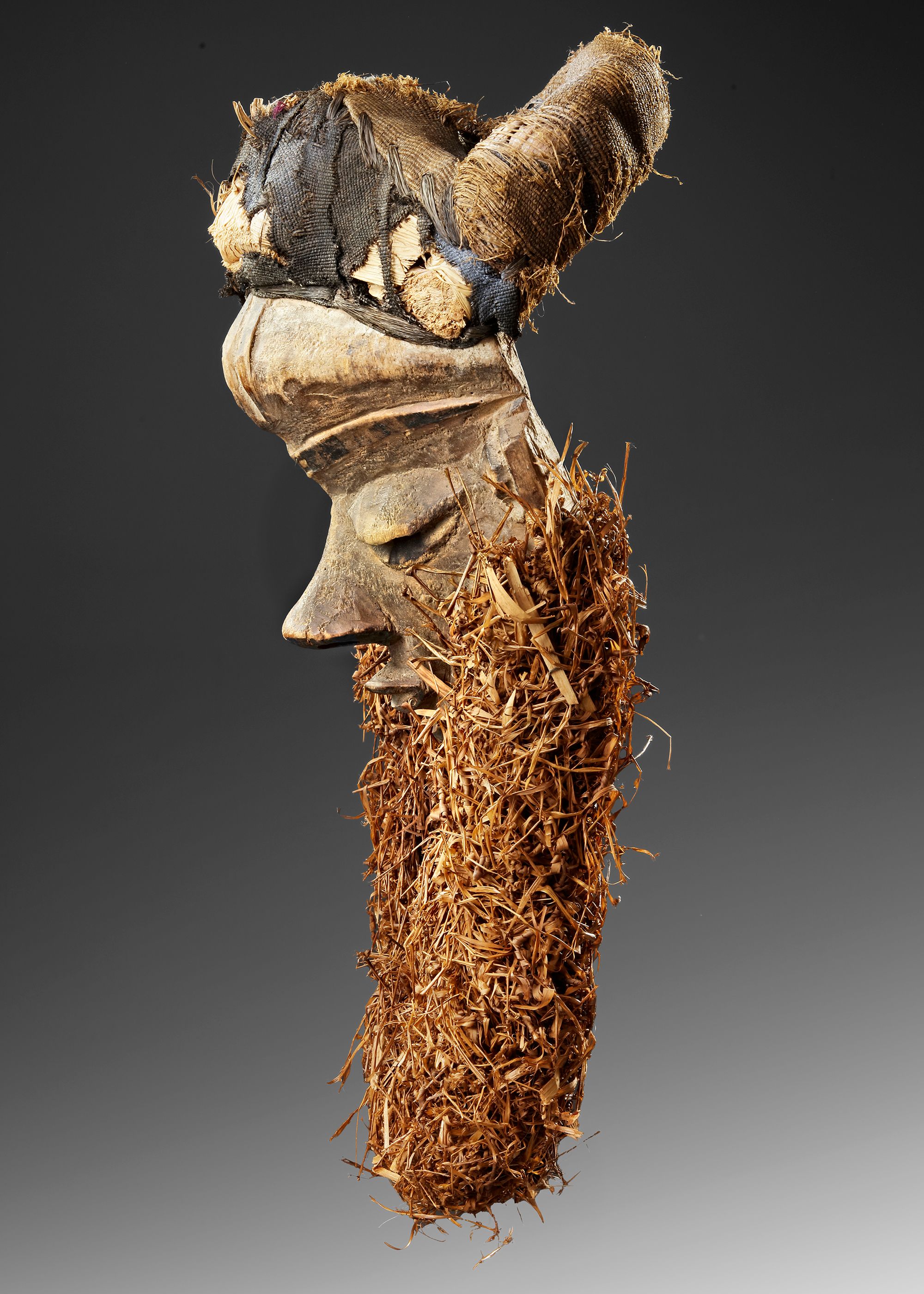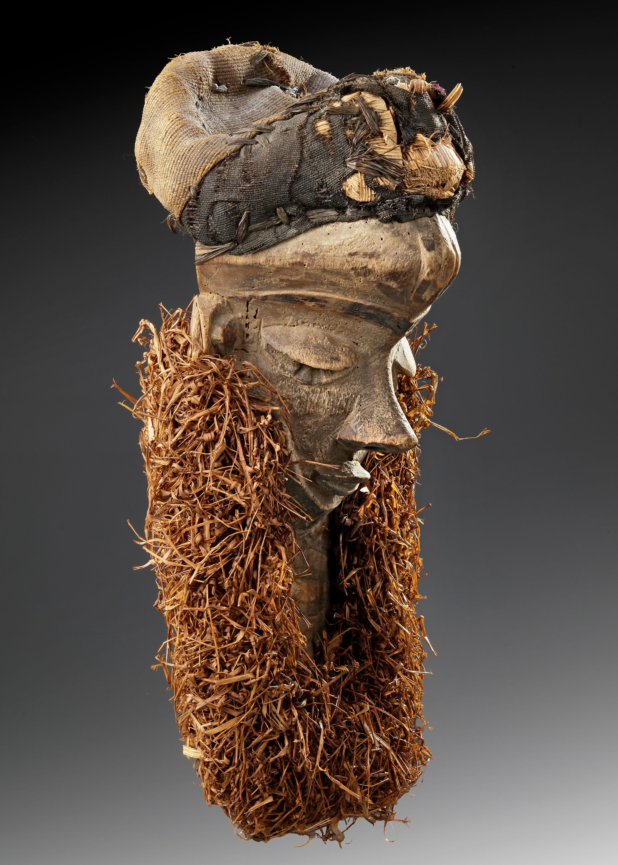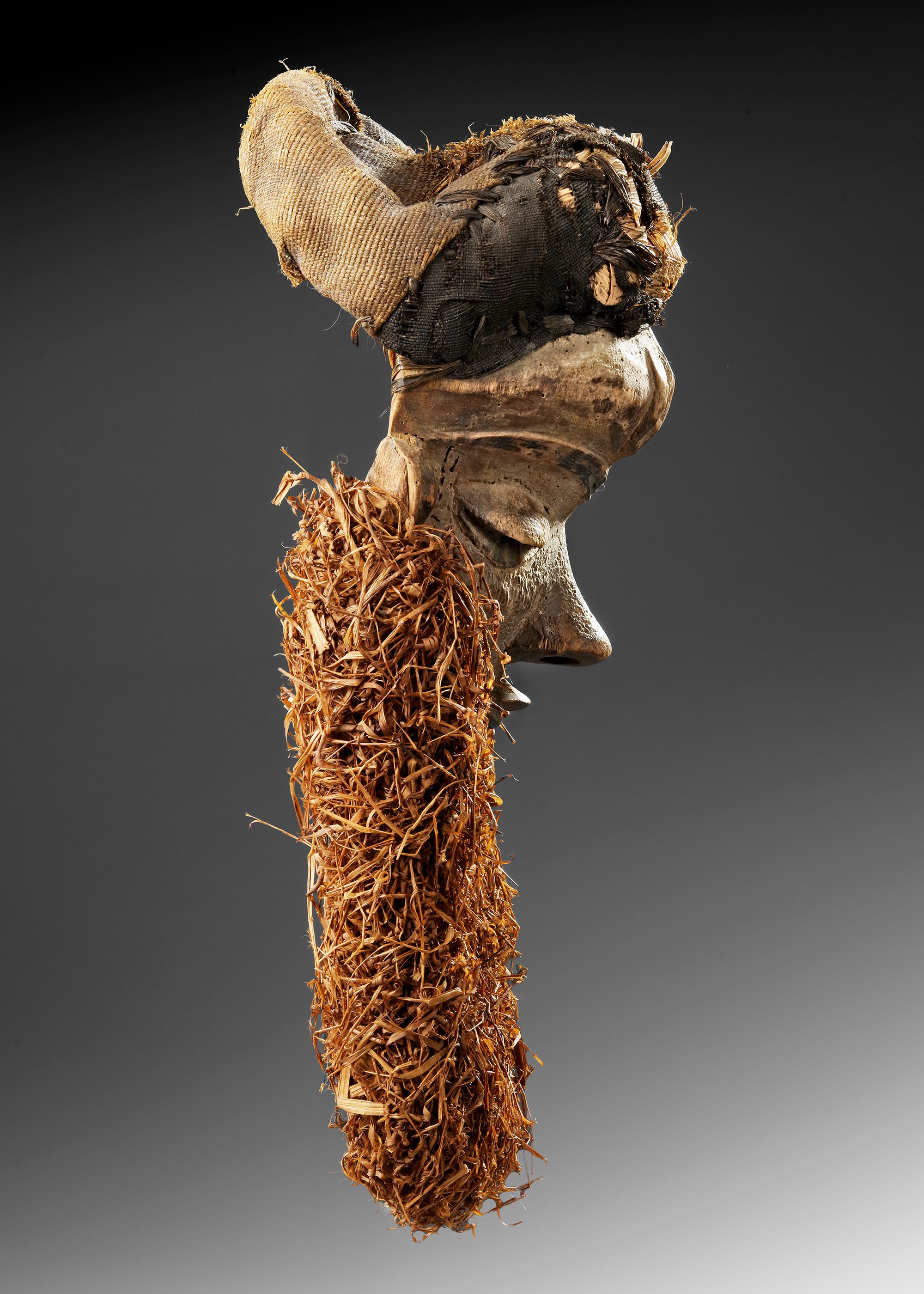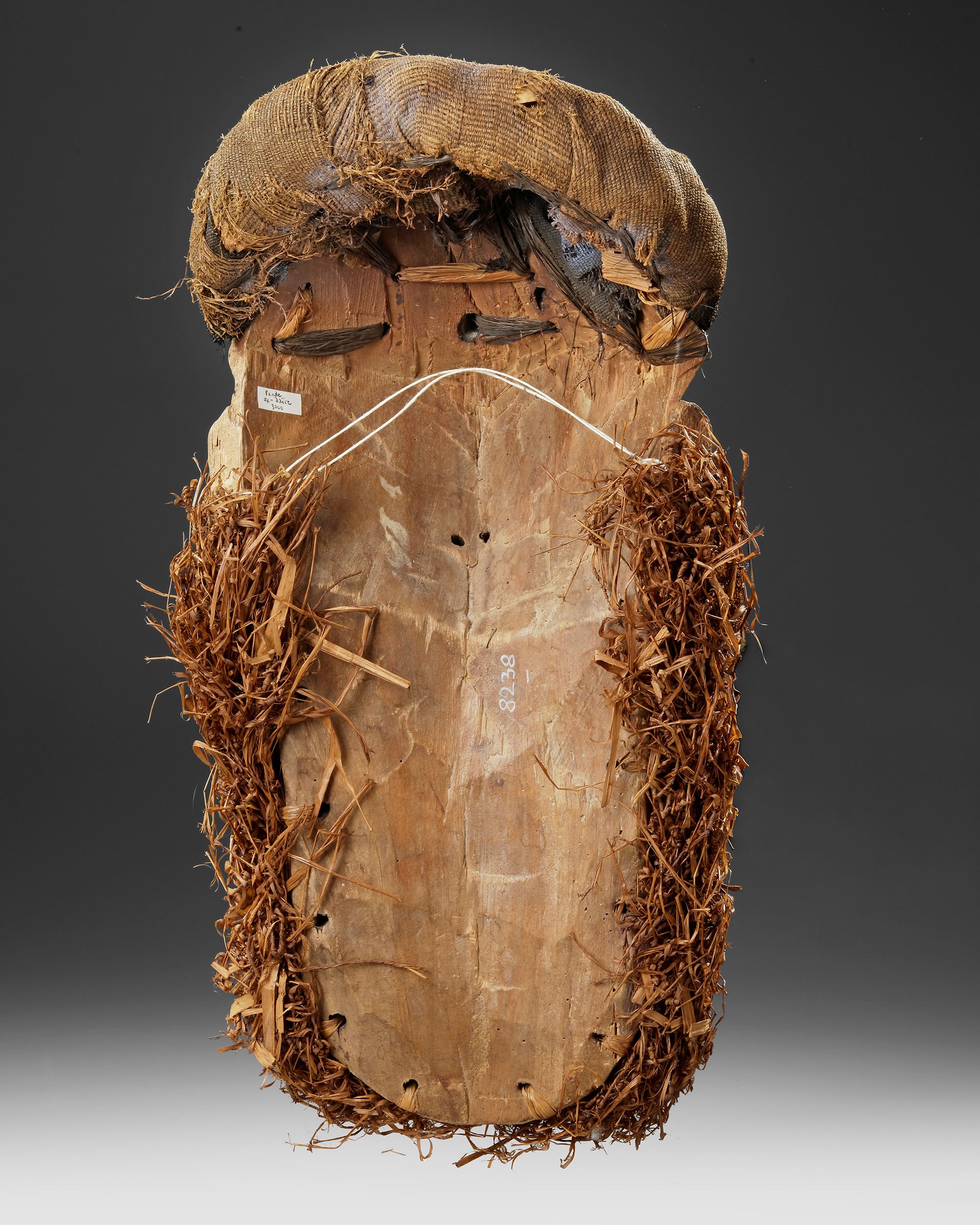 Wood, plant fiber. Very beautiful old, introspective mask. Old collection number on the back. Old German collection. Height 40 cm.