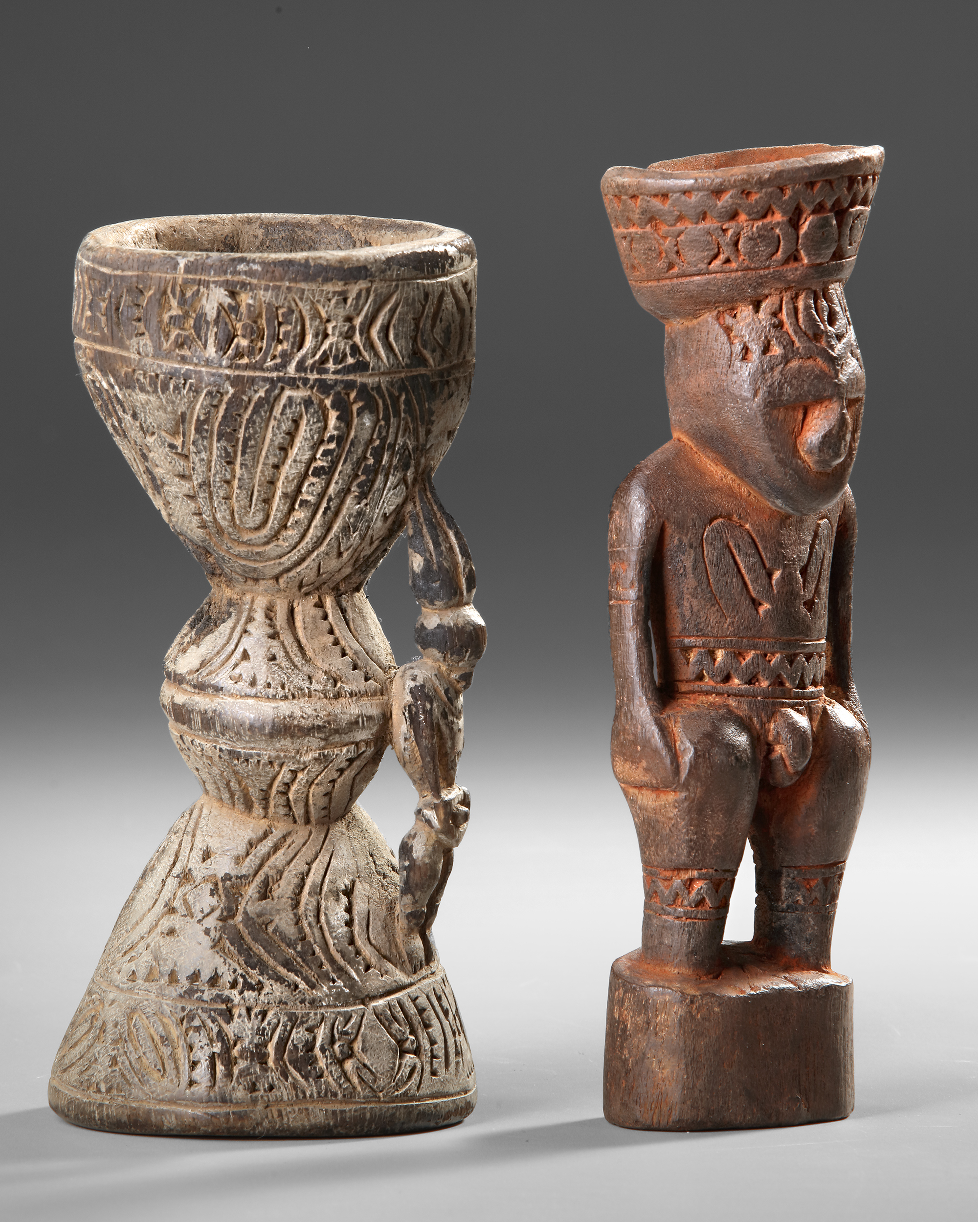 Two Sepik betel nut mortars. Two Sepik betel nut mortars. Two Sepik betel nut mortars. Two Sepik betel nut mortars.