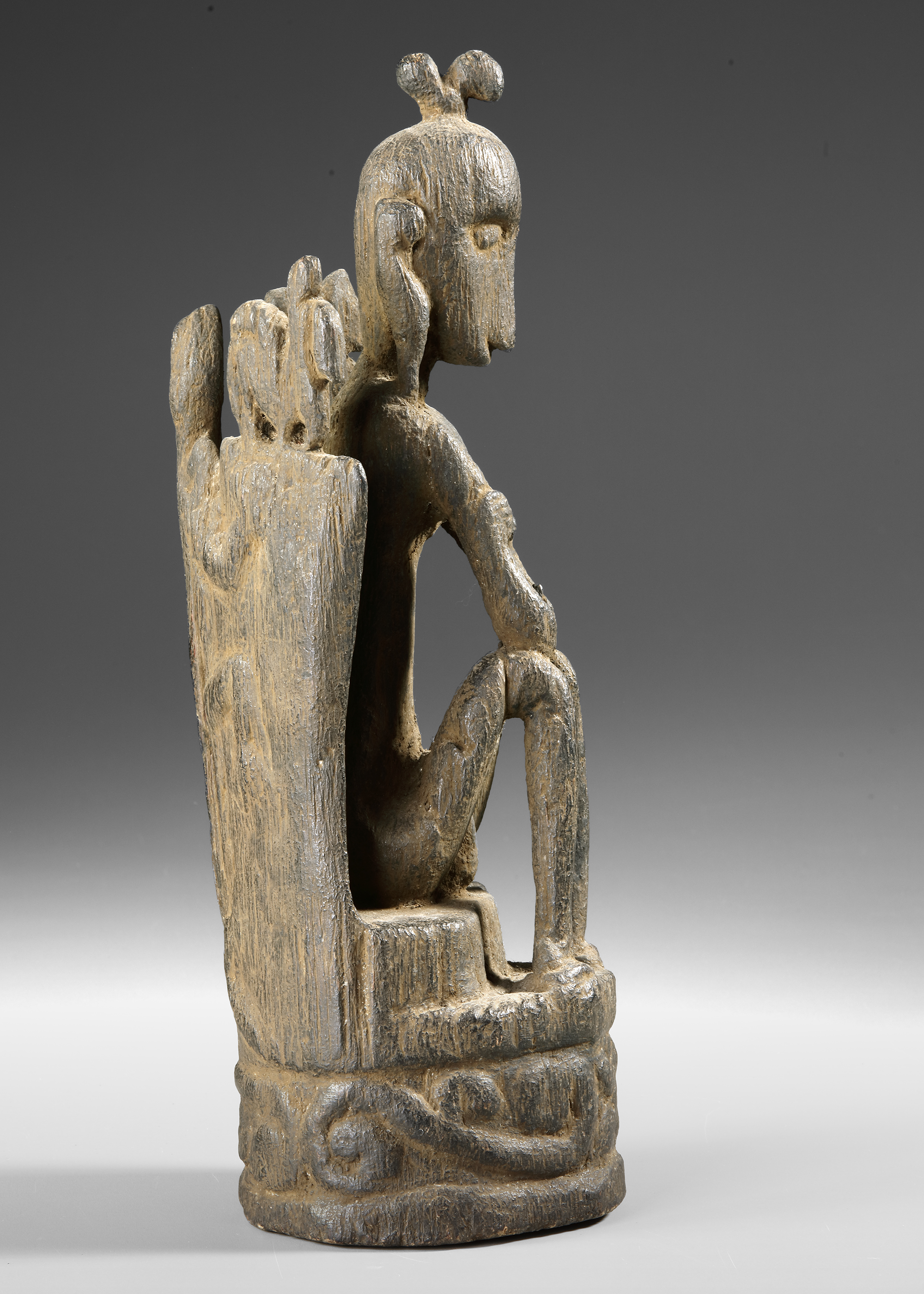 Moluccas. Leti or Tanimbar ancestor carving. Provenance: Bought by Jac Hoogerbrugge from father Akerboom Msc. Father Akerboom was a member of the congregation of the Missionaries of the Sacred Heart in Tilburg, the Netherlands. Father Akerboom collected and sold tribal art on behalf of the congregation. See the drawing and collection note by Hoogerbrugge. 34 cm.