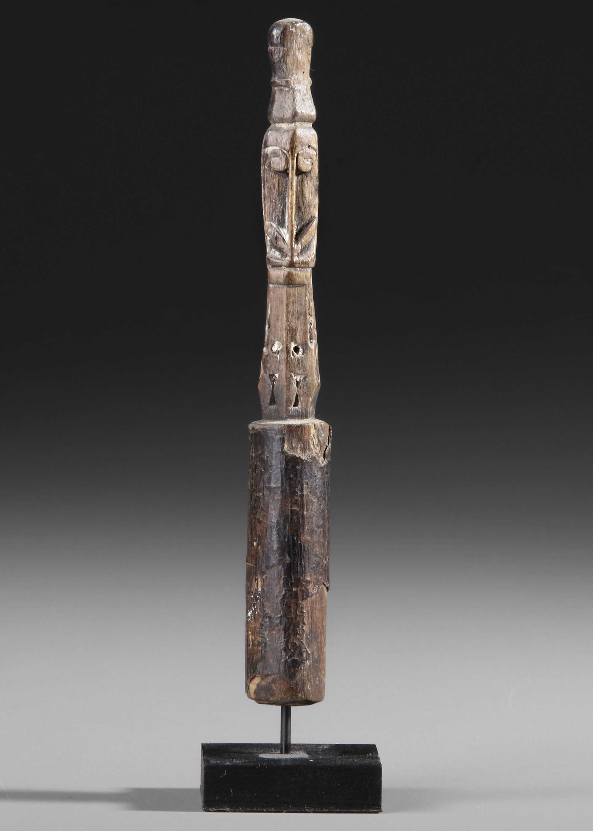 Geelvinkbaai/Cenderawasi Korwar amulet. Collected by Jac Hoogerbrugge in the 1950’s. See the drawing by Hoogerbrugge. 17 cm.