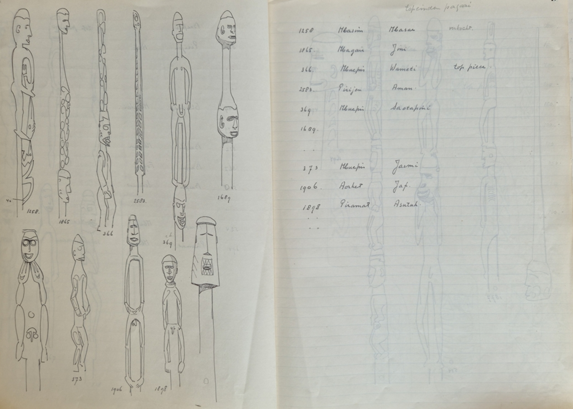 Hoogerbrugge in the 1960’s or 1970’s. Carved by Wameti from Mbuepis. See the drawing by Hoogerbrugge and the collection notes. Hoogerbrugge marked this as a “top piece
