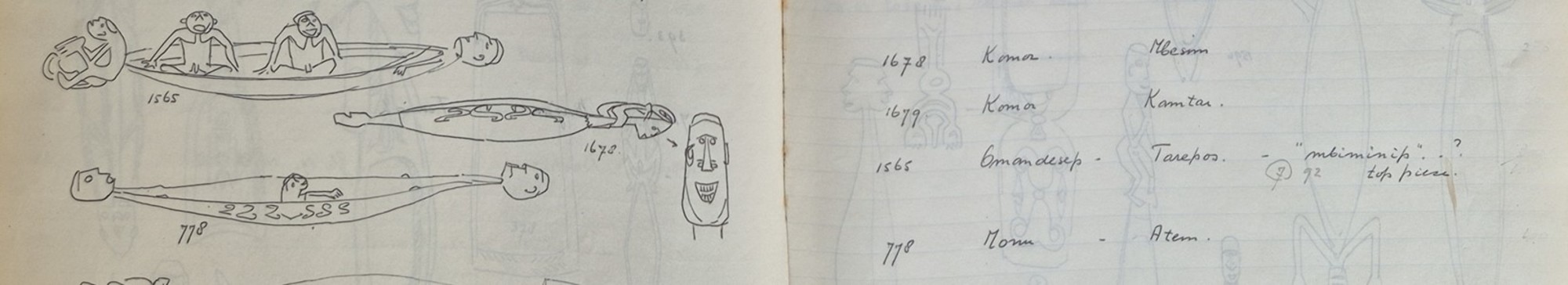 Lot 302Ritual sago dish with figure. Collected by Jac Hoogerbrugge in the 1960’s. Carved by Atem from Monu. See the drawing by Hoogerbrugge and his collection notes.