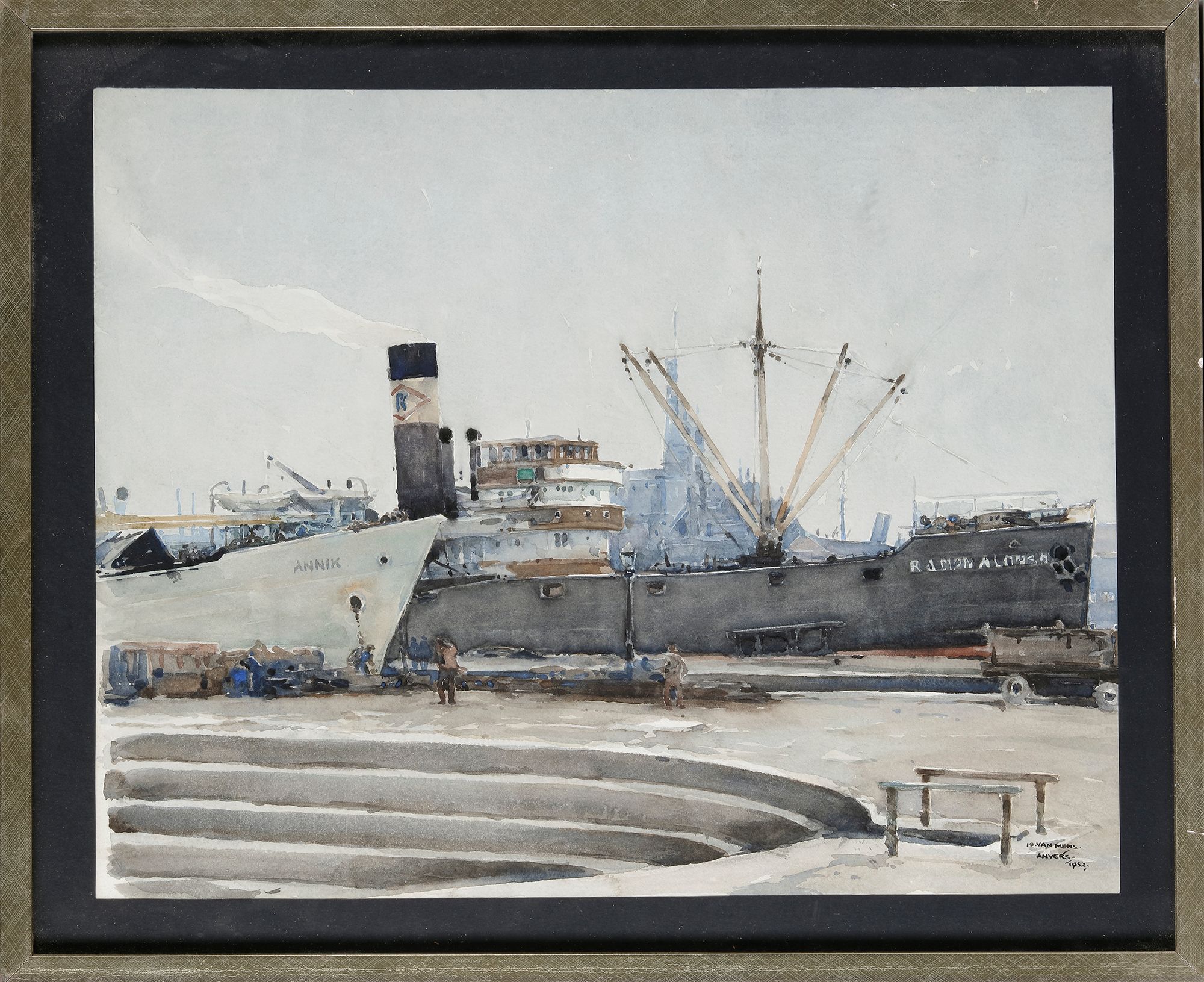 Antwerp 1952. Framed and glazed. 46 by 56 cm.