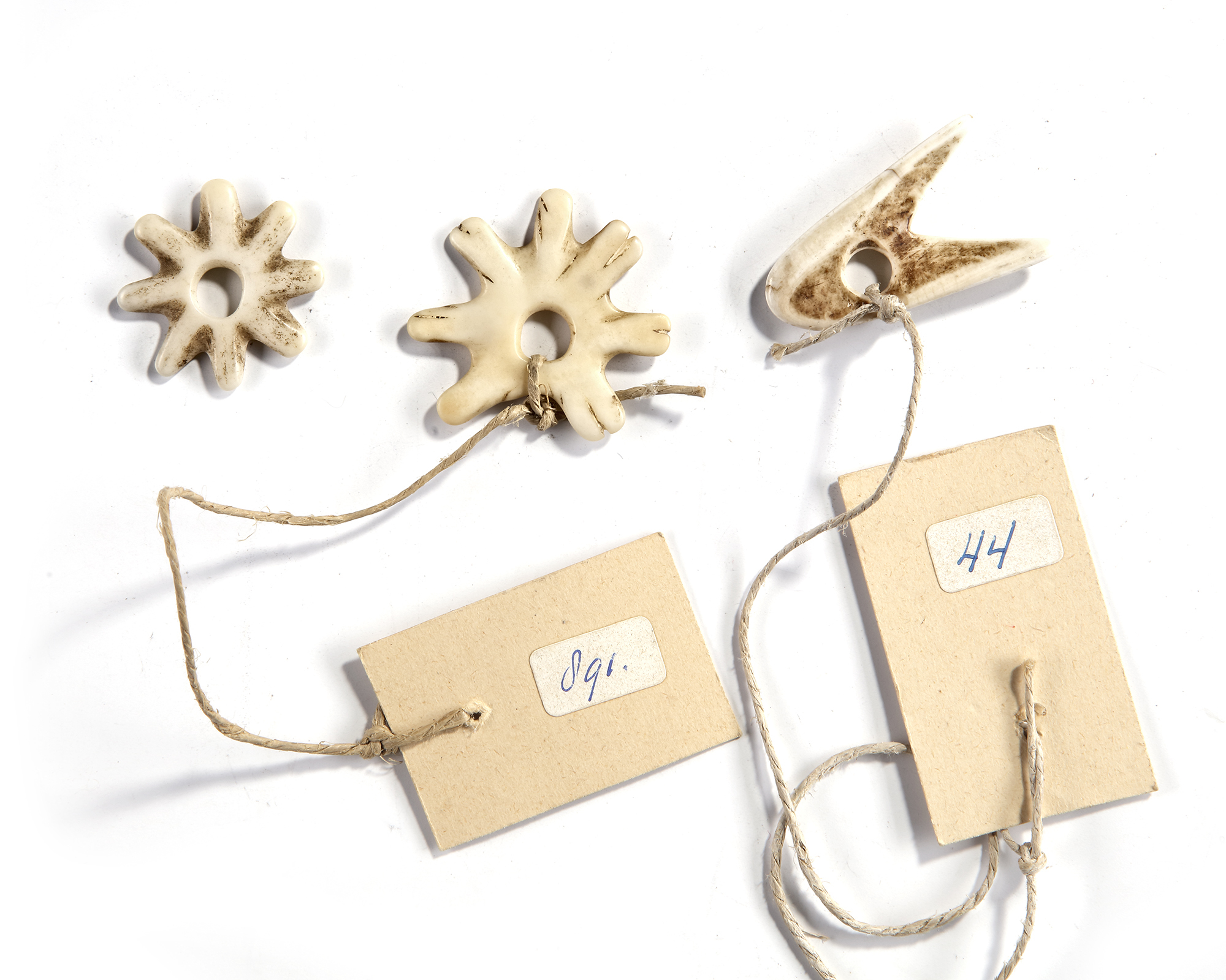 Sentani and Humboldt bay ear decorations in shell. Collected by Jac Hoogerbrugge in the 1950’s. See the collection notes. d. ca. 3.5 cm.