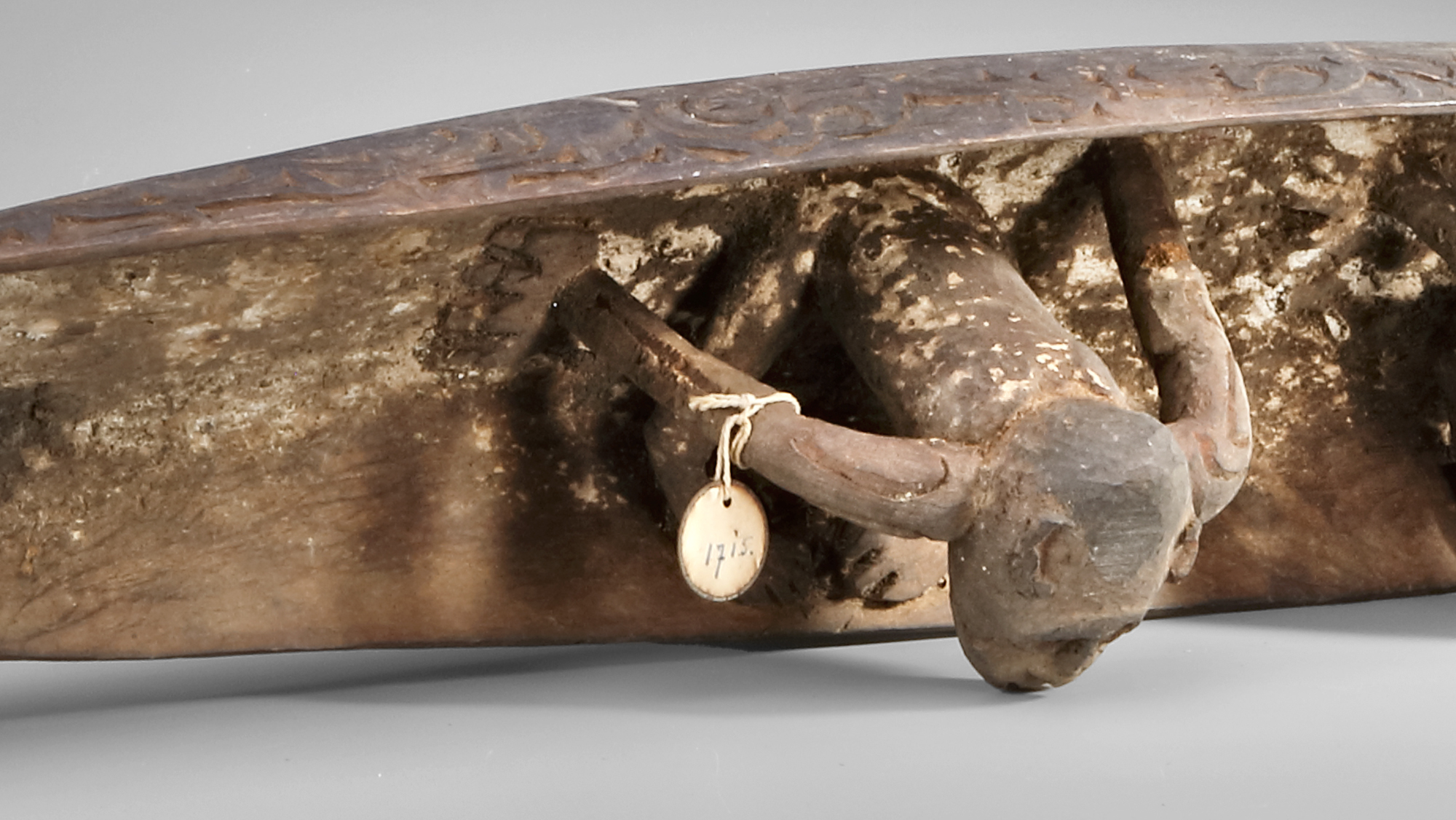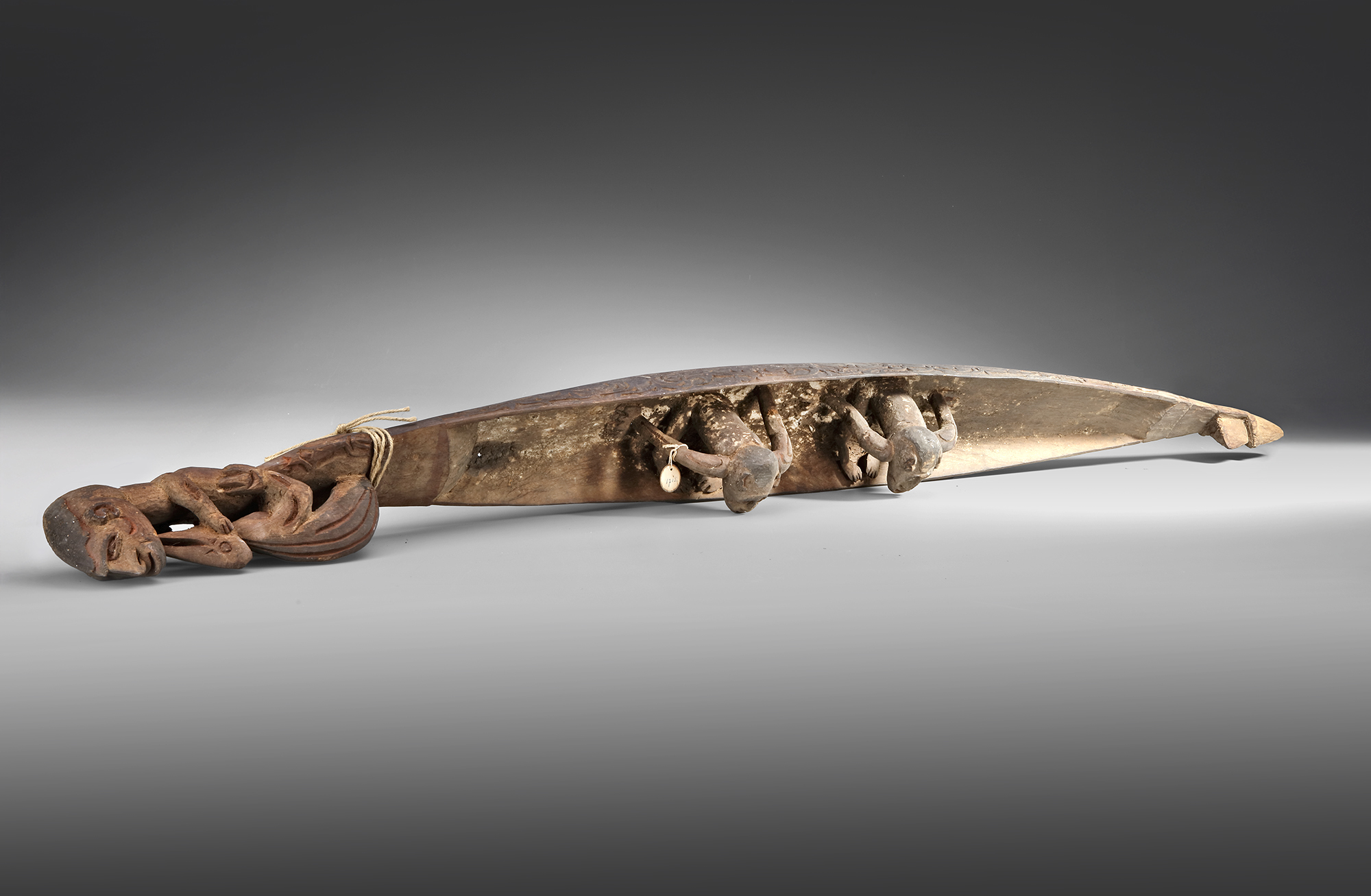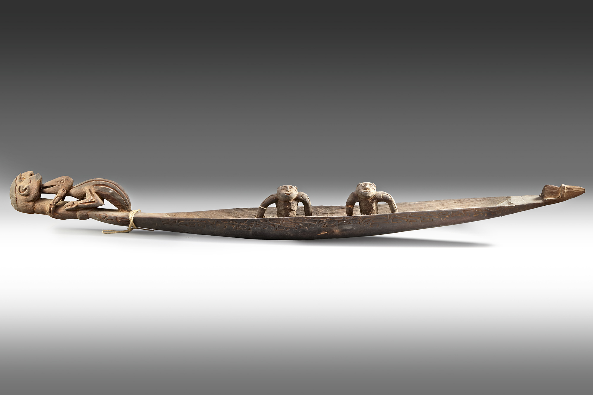 Lot 83Asmat. Bowl with two figures in it. Collected by Jac Hoogerbrugge april 4th 1970 in Otsjanep. Carved by Tamti. See the Hoogerbrugge collection note.