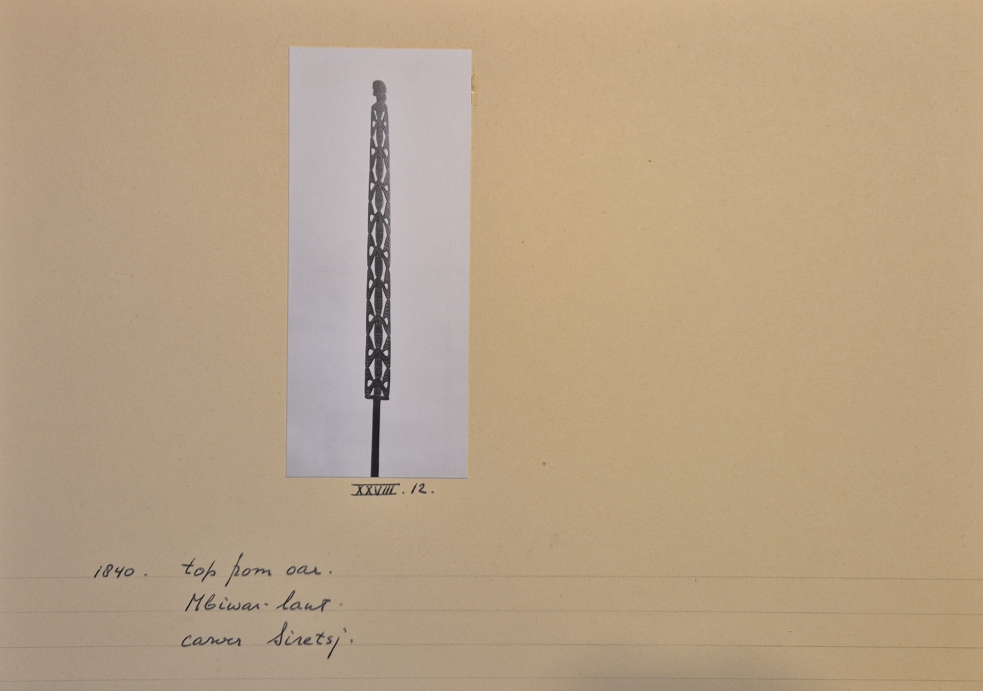 Lot 167Asmat. Paddle top. Collected by Jac Hoogerbrugge in the 1960’s or 1970’s. Carved by Siretsj from Mbiwar-Laut. See the Hoogerbrugge archive card.
