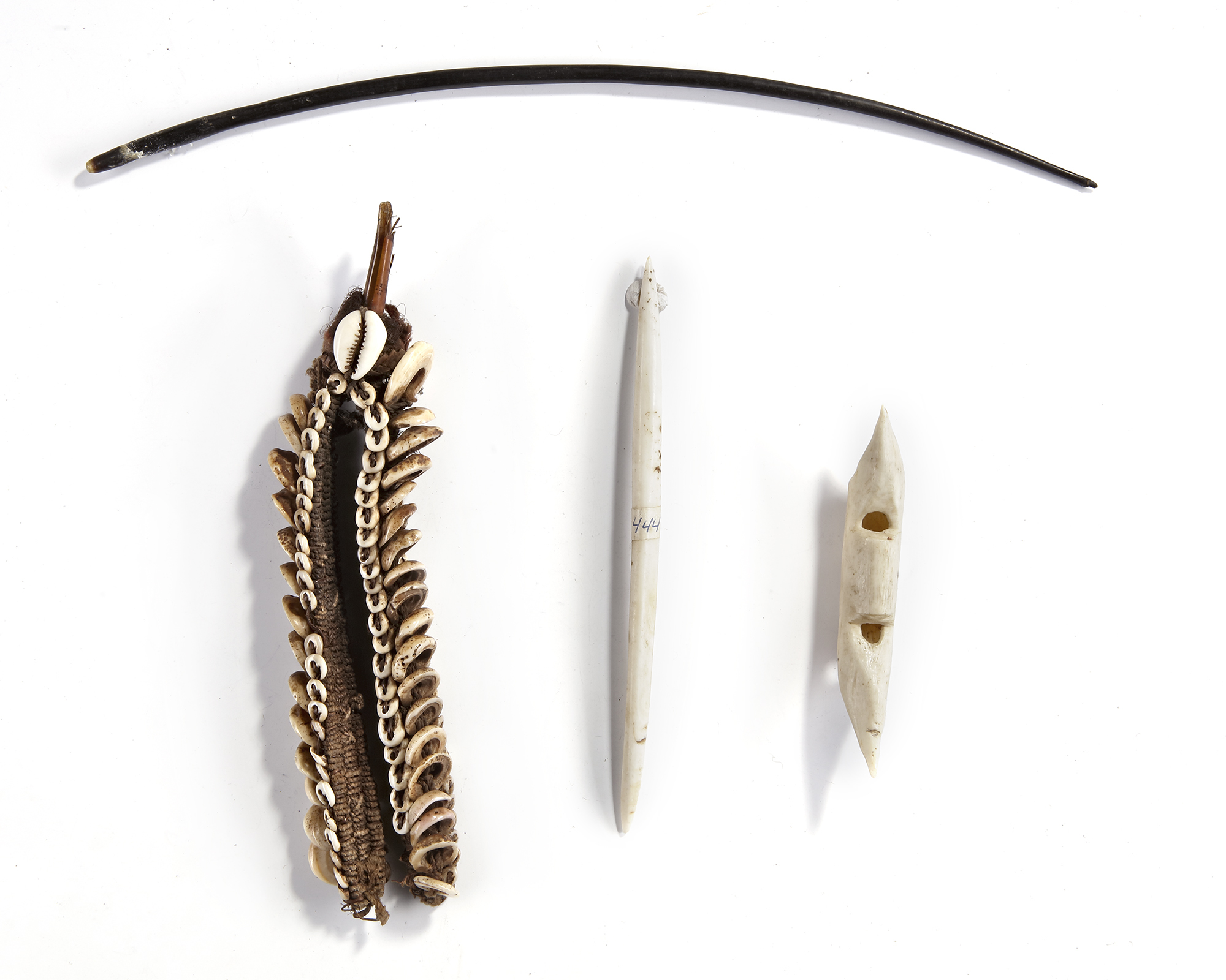 Small collection of three nose ornaments and a headband. One Cassowary quill ornament, one Asmat shell nose ornament collected by Jac Hoogerbrugge (see his collection note) before 1969 and an Asmat bone nose ornament collected by Max Lapré between 1950 and 1955 (ex collection Herrebrugh) Max Lapré was a Dutch gouvernment official. See the picture of him.