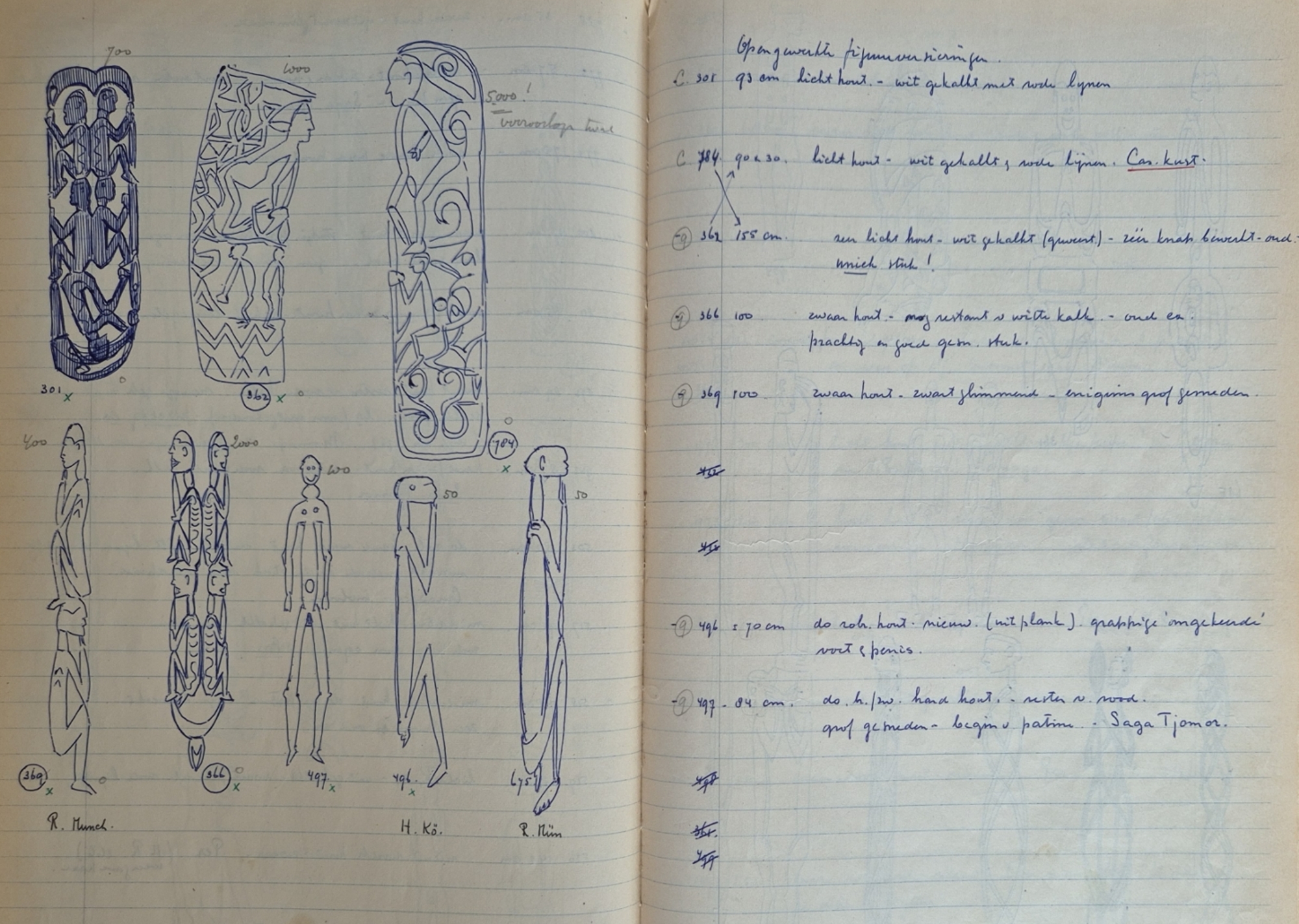 Asmat carving collected by Jac Hoogerbruge before 1969 at the Casuarina coast. Se the drawing and collection notes by Hoogerbrugge. Hoogerbugge notes: “Heavy wood. Remnants of lime. Old, beautifull and well carved piece.