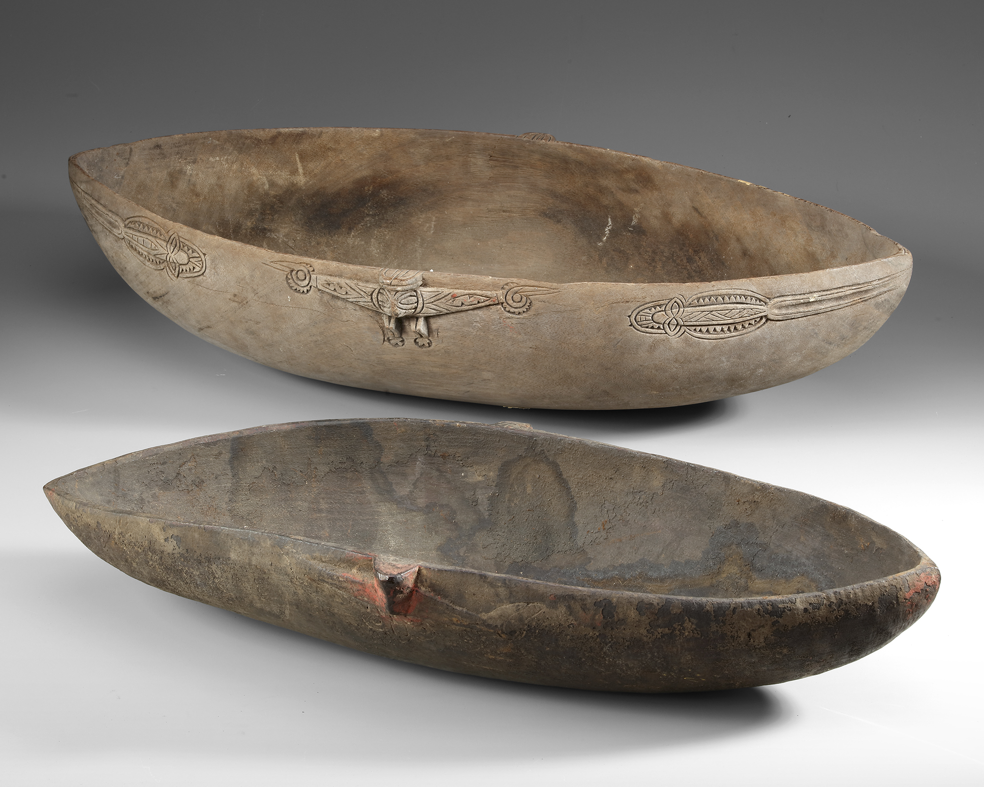 Lot 129 Two old and well used Tami island bowls collected by Jac Hoogerbrugge in the 1960’s or 1970’s.