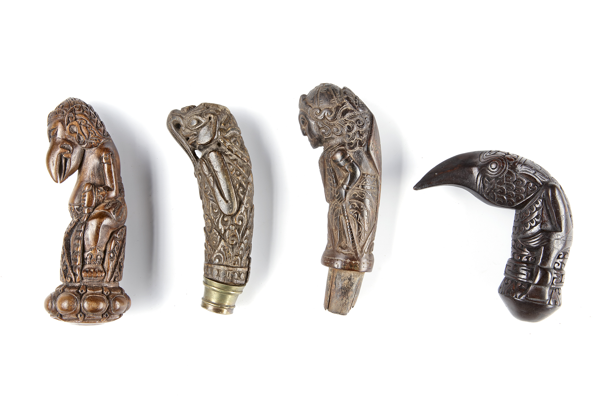 Lot 431 Four betel nut crusher and/or sword or kris handles.Collected by Jac Hoogerbrugge in the 1960’s and 1970’s.