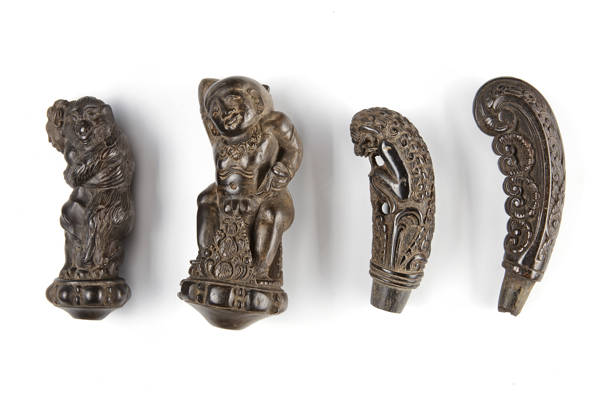Lot 430 Four betel nut crusher and/or sword or kris handles. Collected by Jac Hoogerbrugge in the 1960’s and 1970’s.