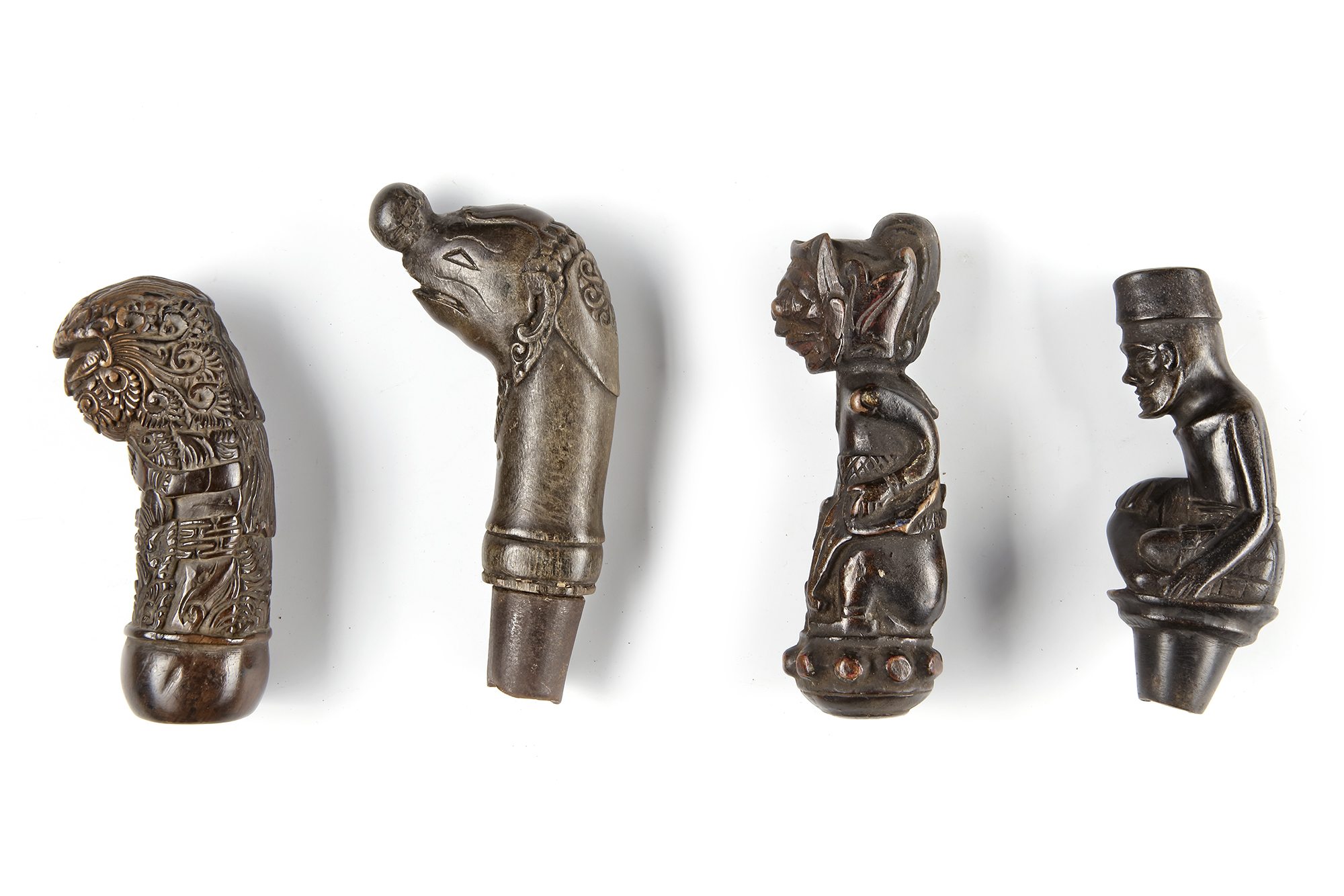 Lot 413 Four kris, machete, sword or betel nut crusher handles. Collected by Jac Hoogerbrugge in the 1960’s and 1970’s.