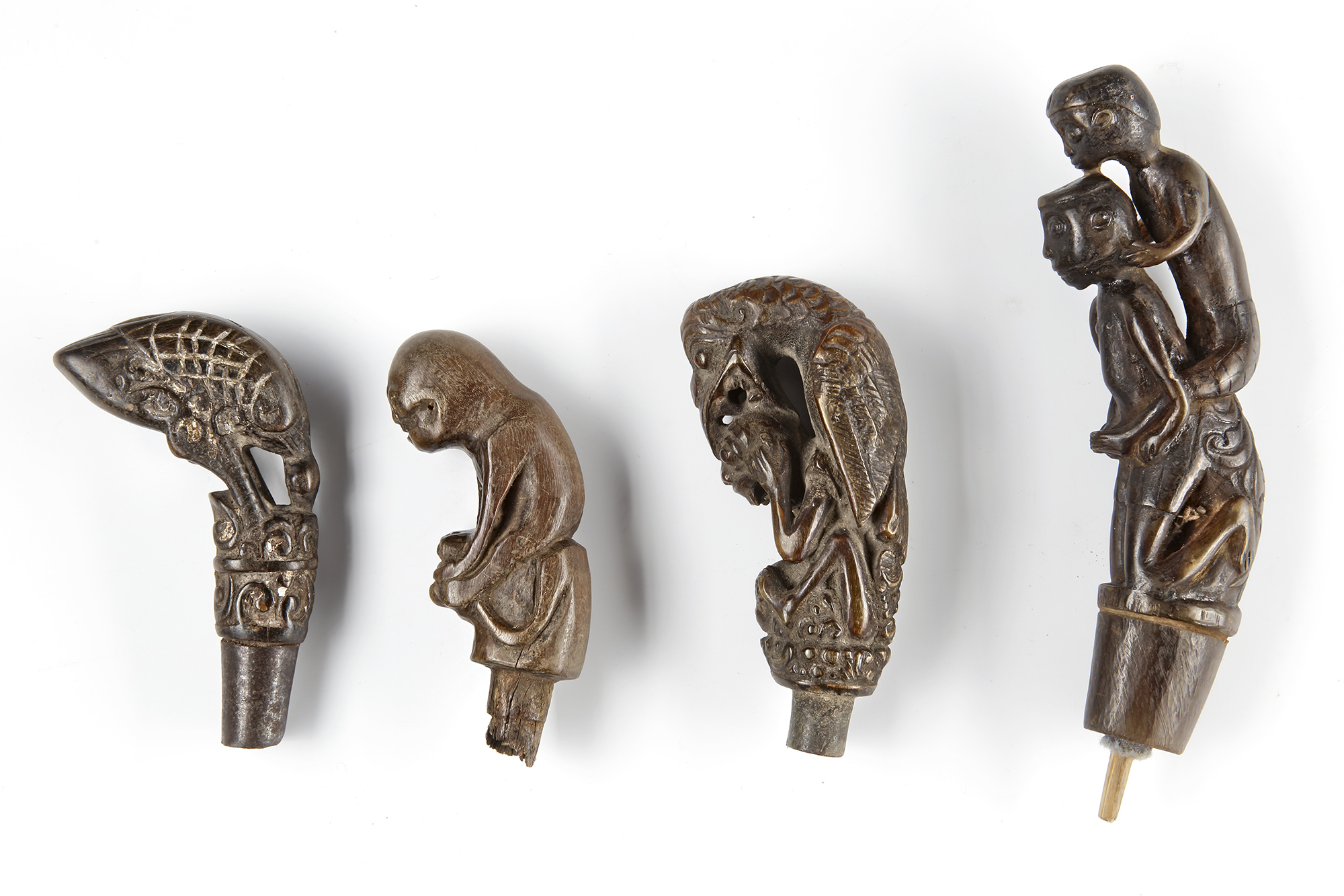 Lot 394 Four betel nut crusher and/or sword or kris handles. Collected by Jac Hoogerbrugge in the 1960’s and 1970’s.