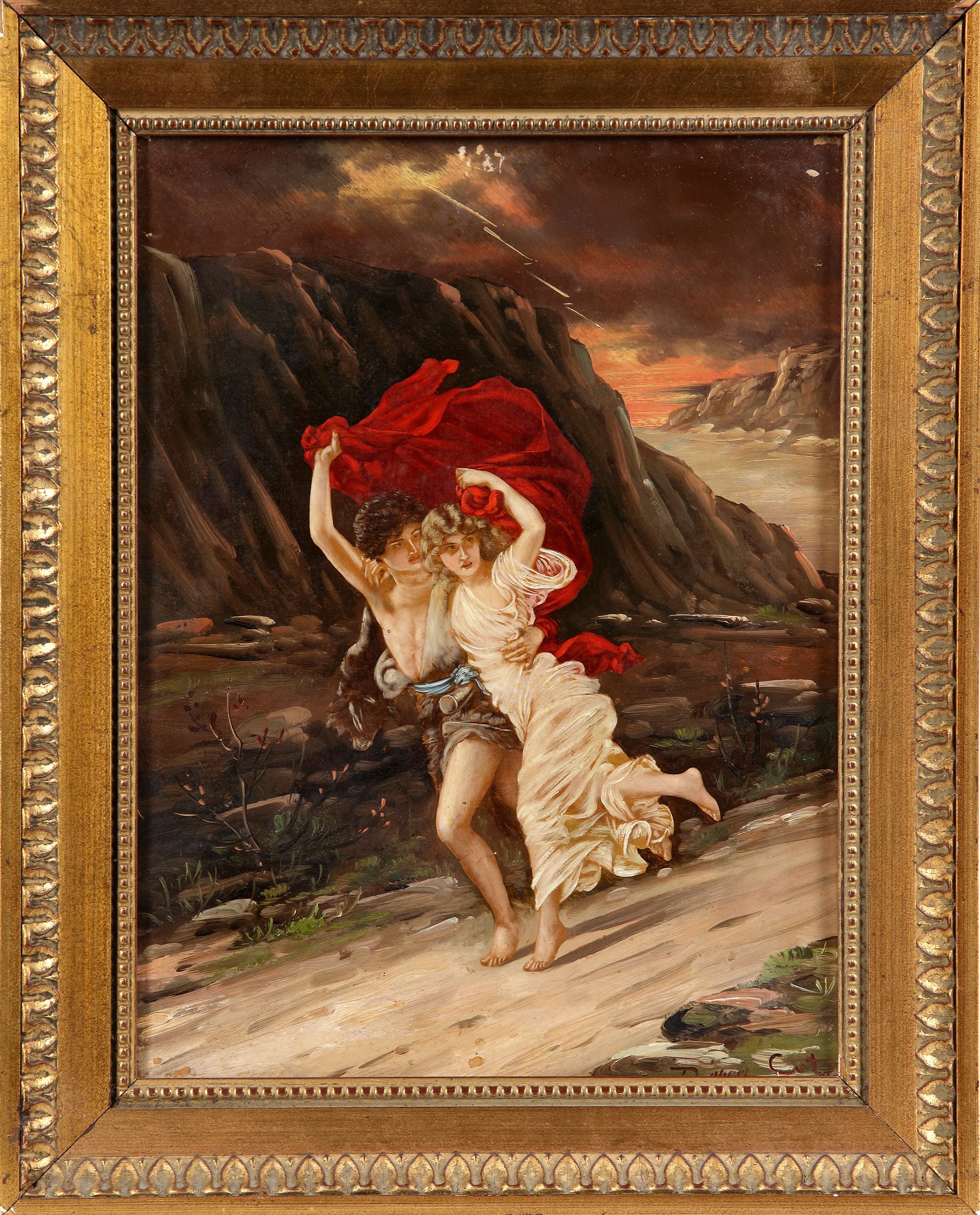 After Pierre Auguste Cot (1837-1883), both bearing a signature, 31 by 23 cm. (2) With frame: 40 by 32 cm.