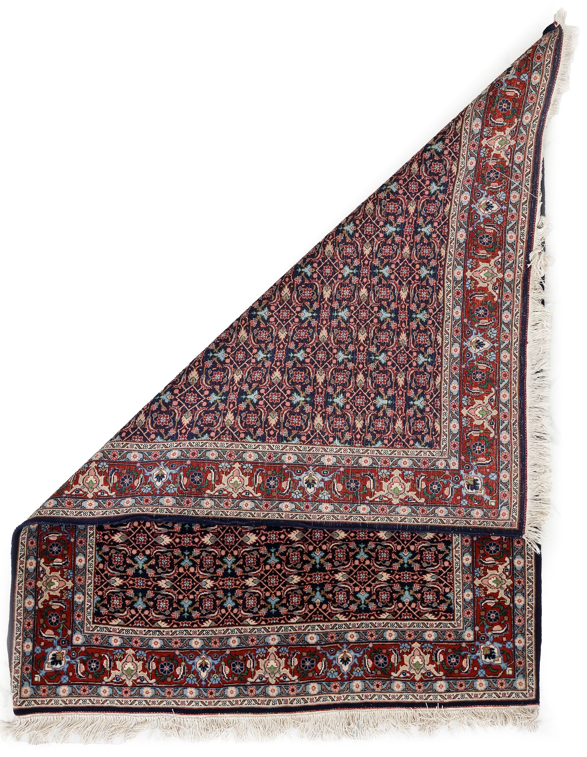 Fine weaving, cork wool on cotton. Very well preserved. 184 by 135 cm.
