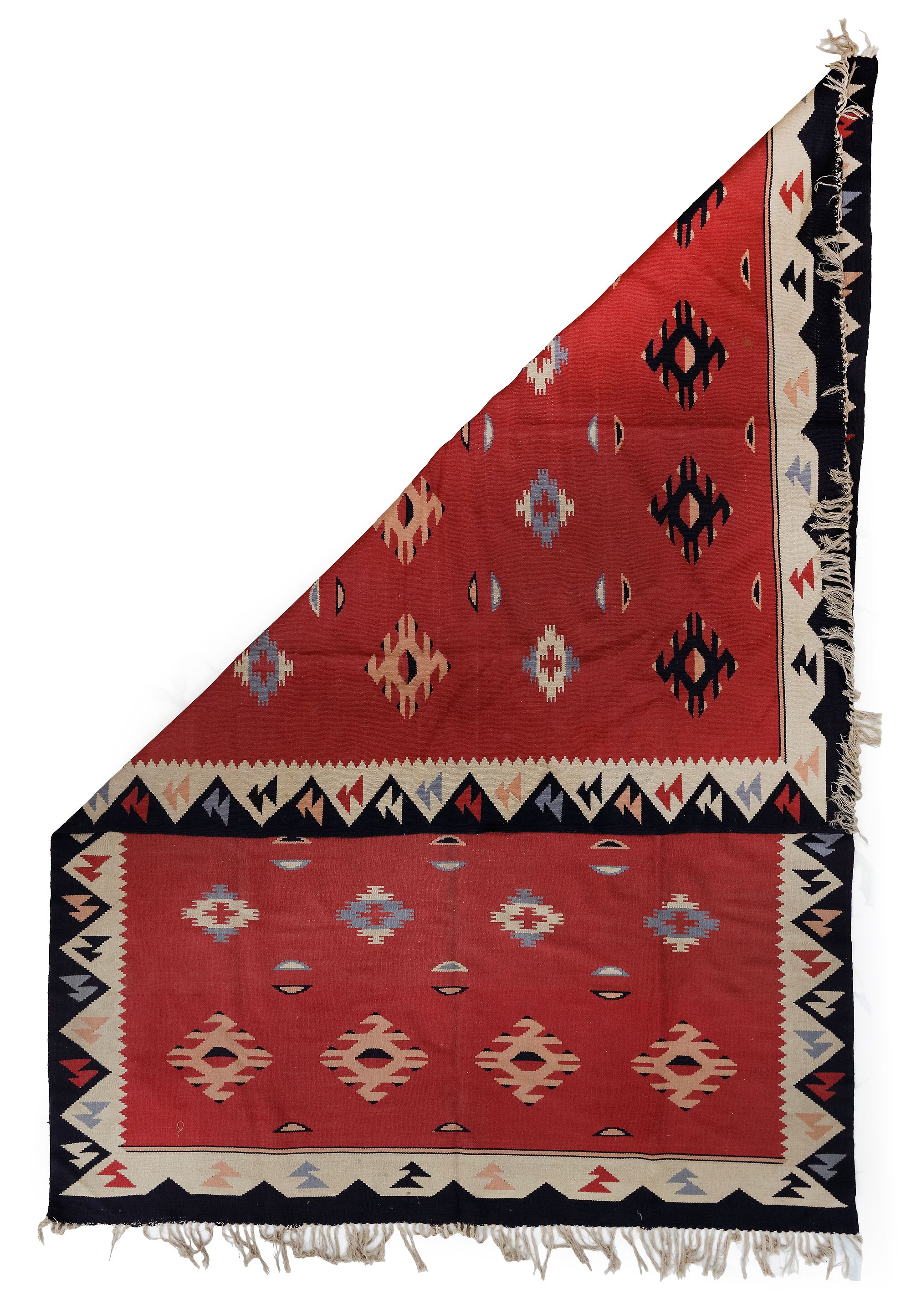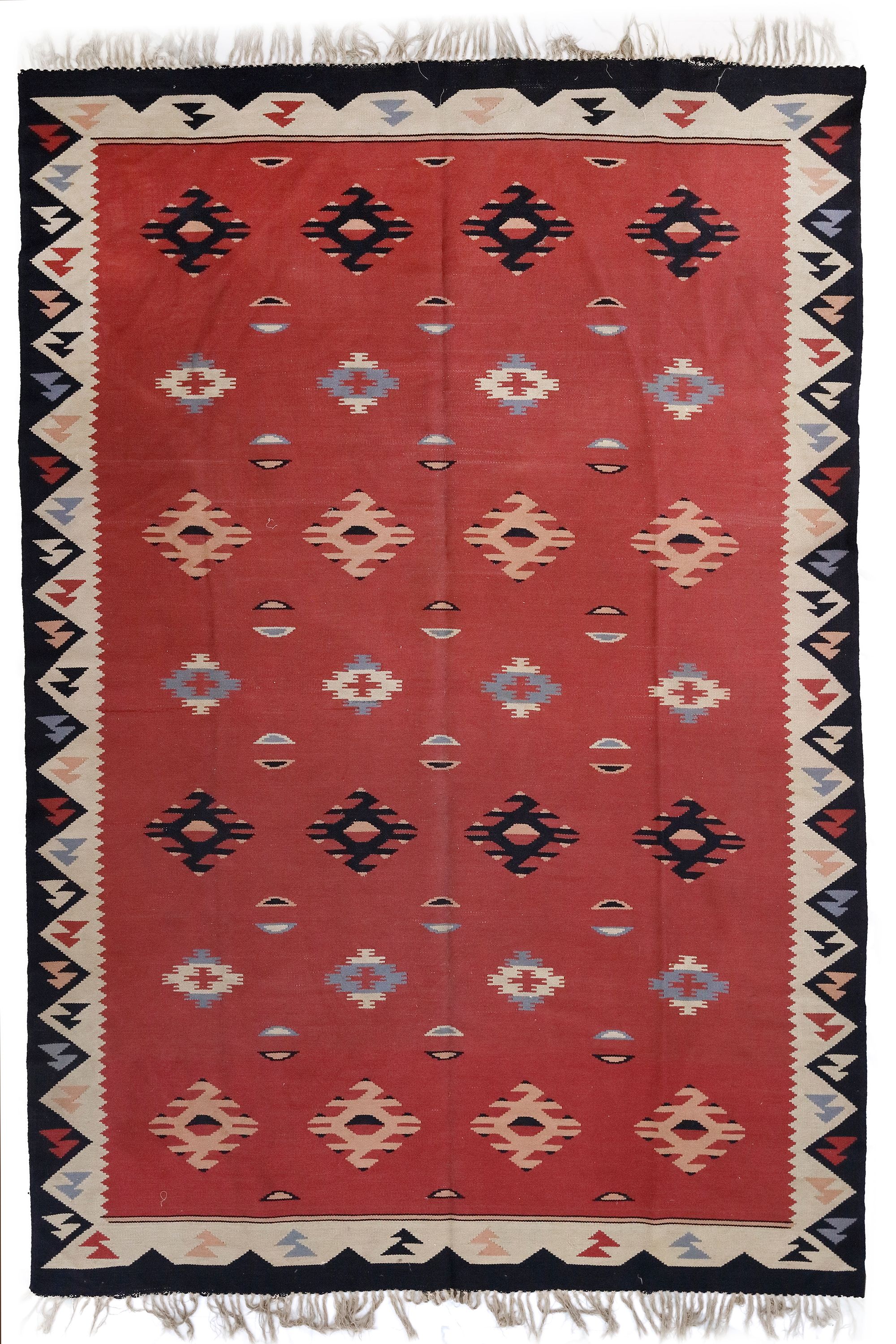 A very fine wool on wool kilim with plants and natural colors. In a good condition. 296 by 200 cm.