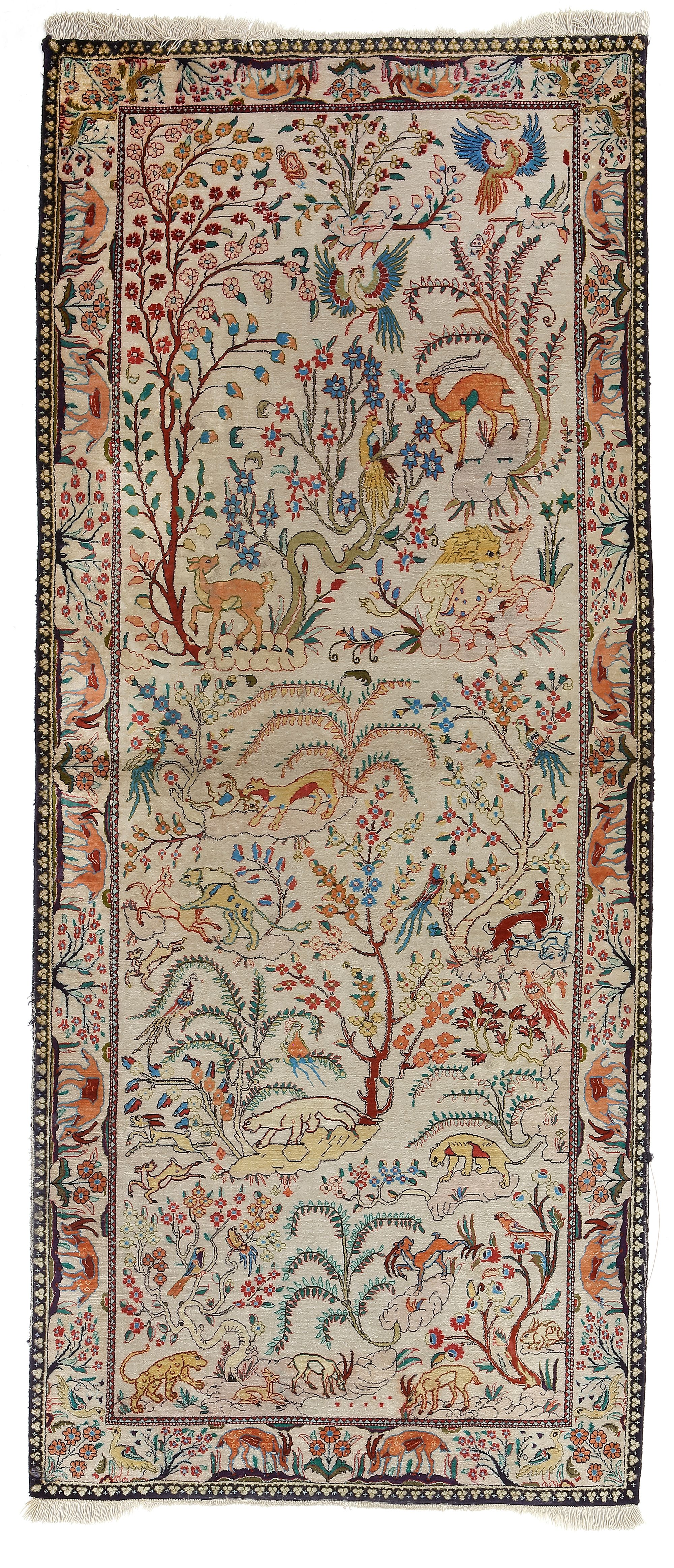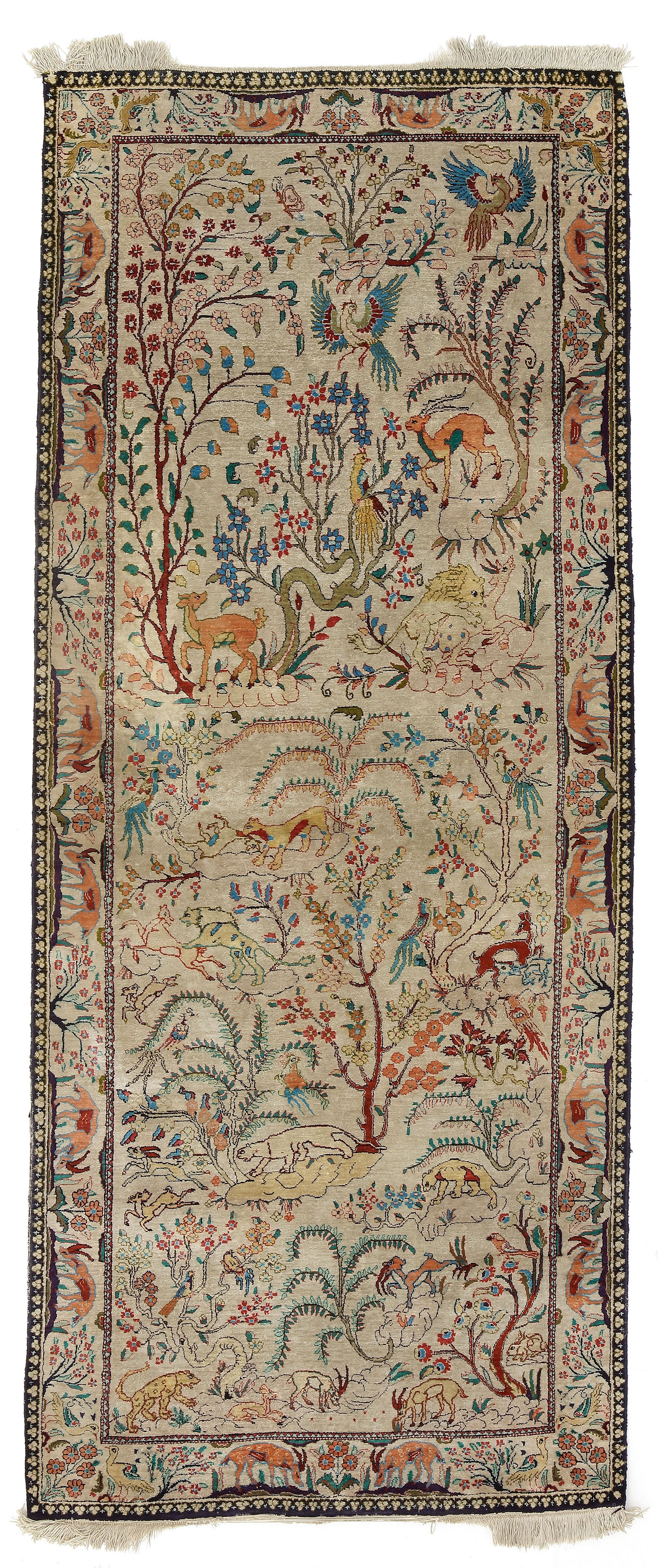 Dirty, a few worn areas on the sides, very fine and rare. 200 by 82 cm.