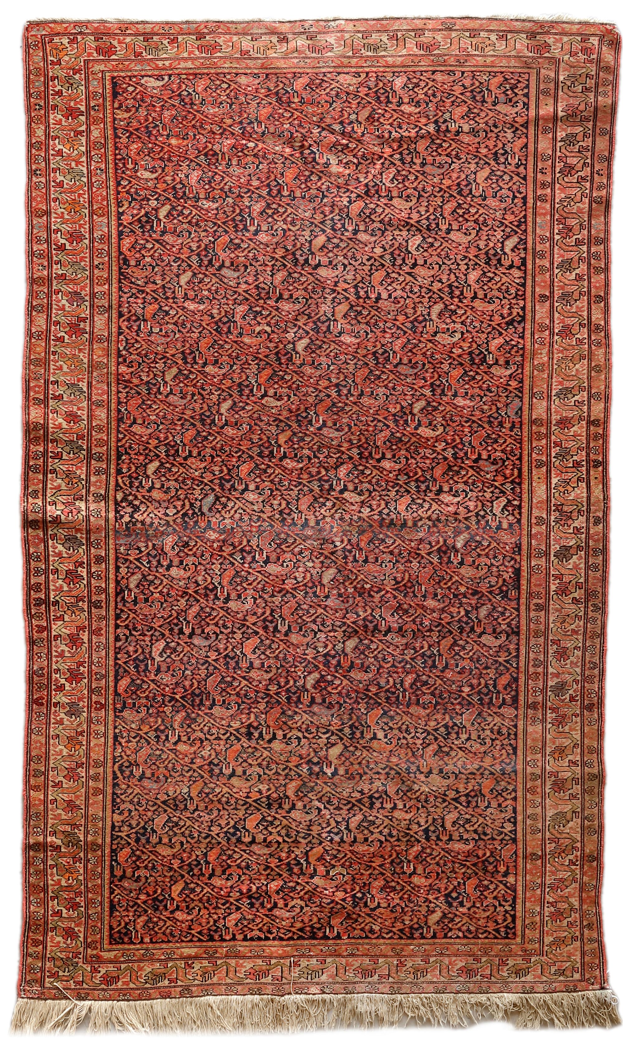 Low in pile, ends reduced, sides redone. 200 by 120 cm.