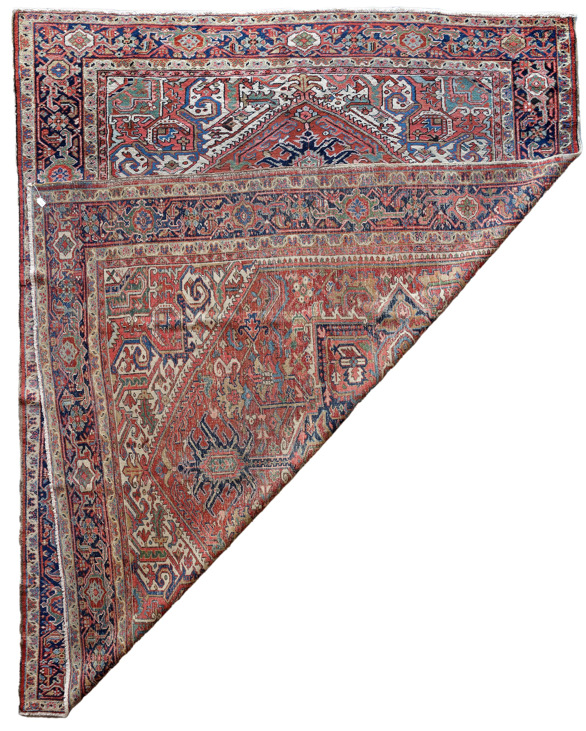 Low in pile, original sides. 350 by 280 cm.