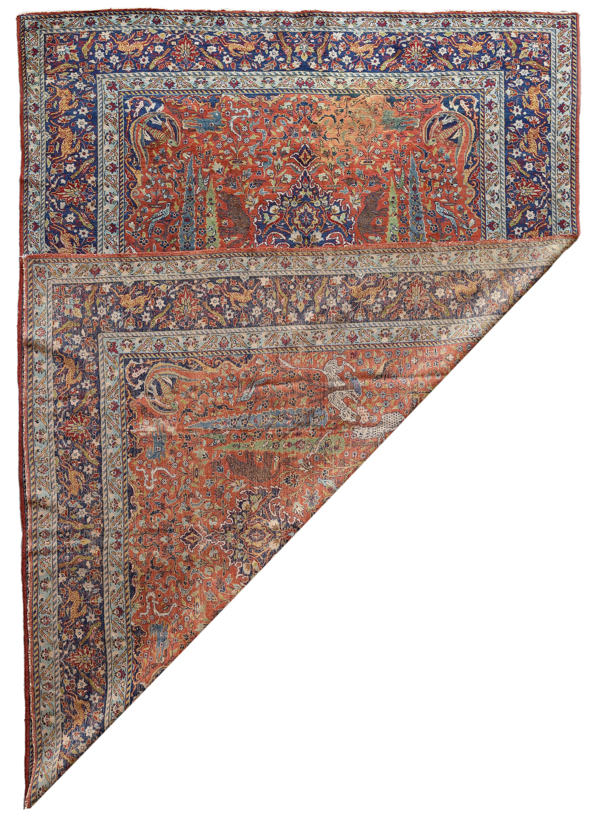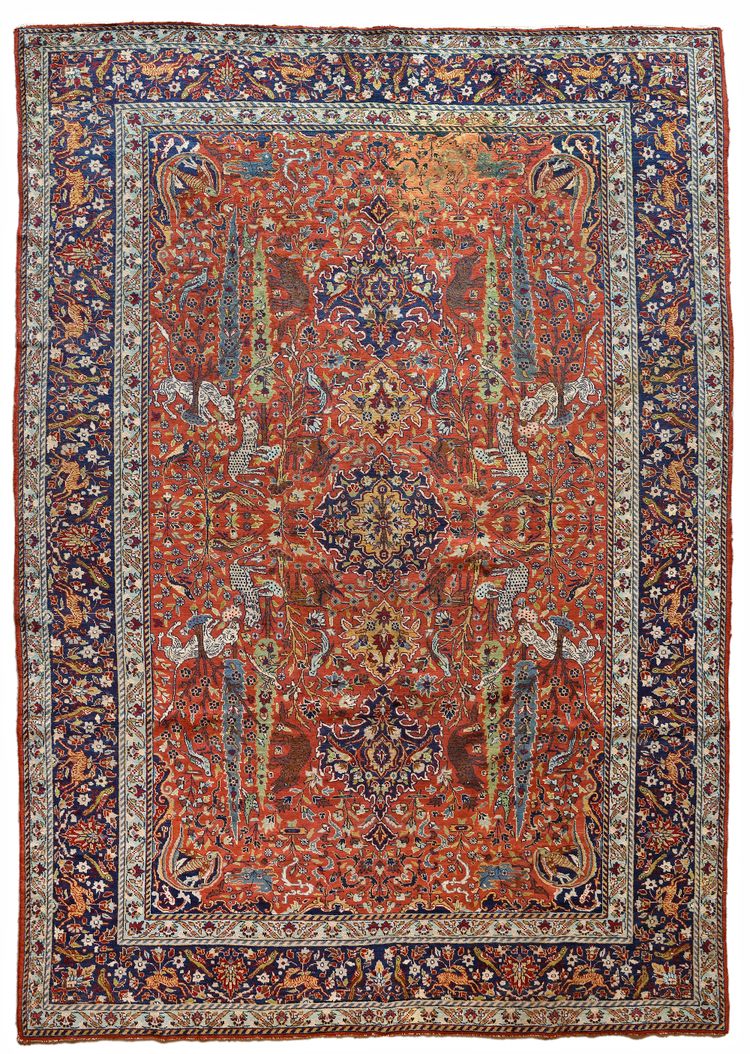 Low in pile, sides damaged and colored. 350 by 250 cm.