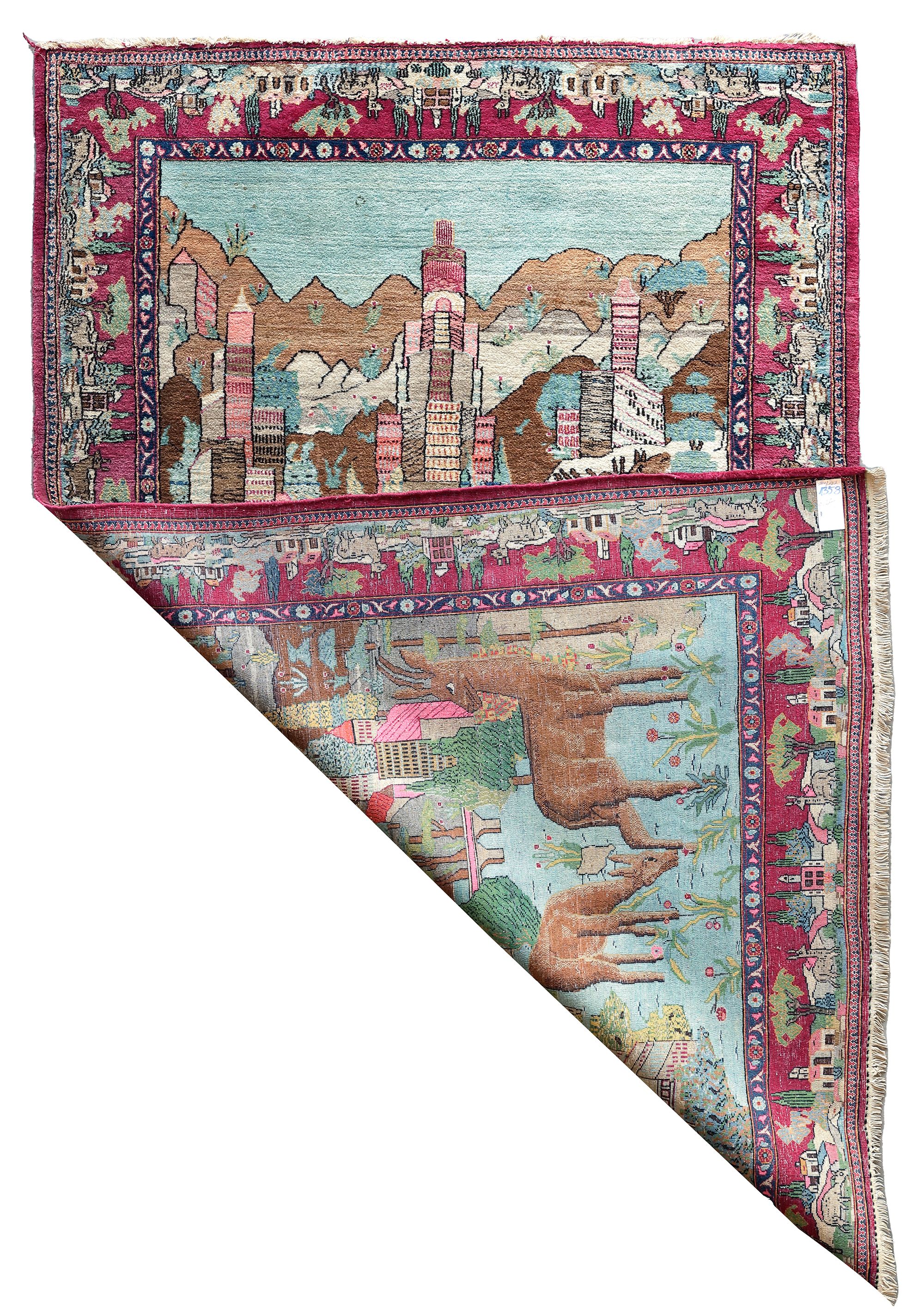 In a good condition. One end with loose fringes. 202 by 133 cm.