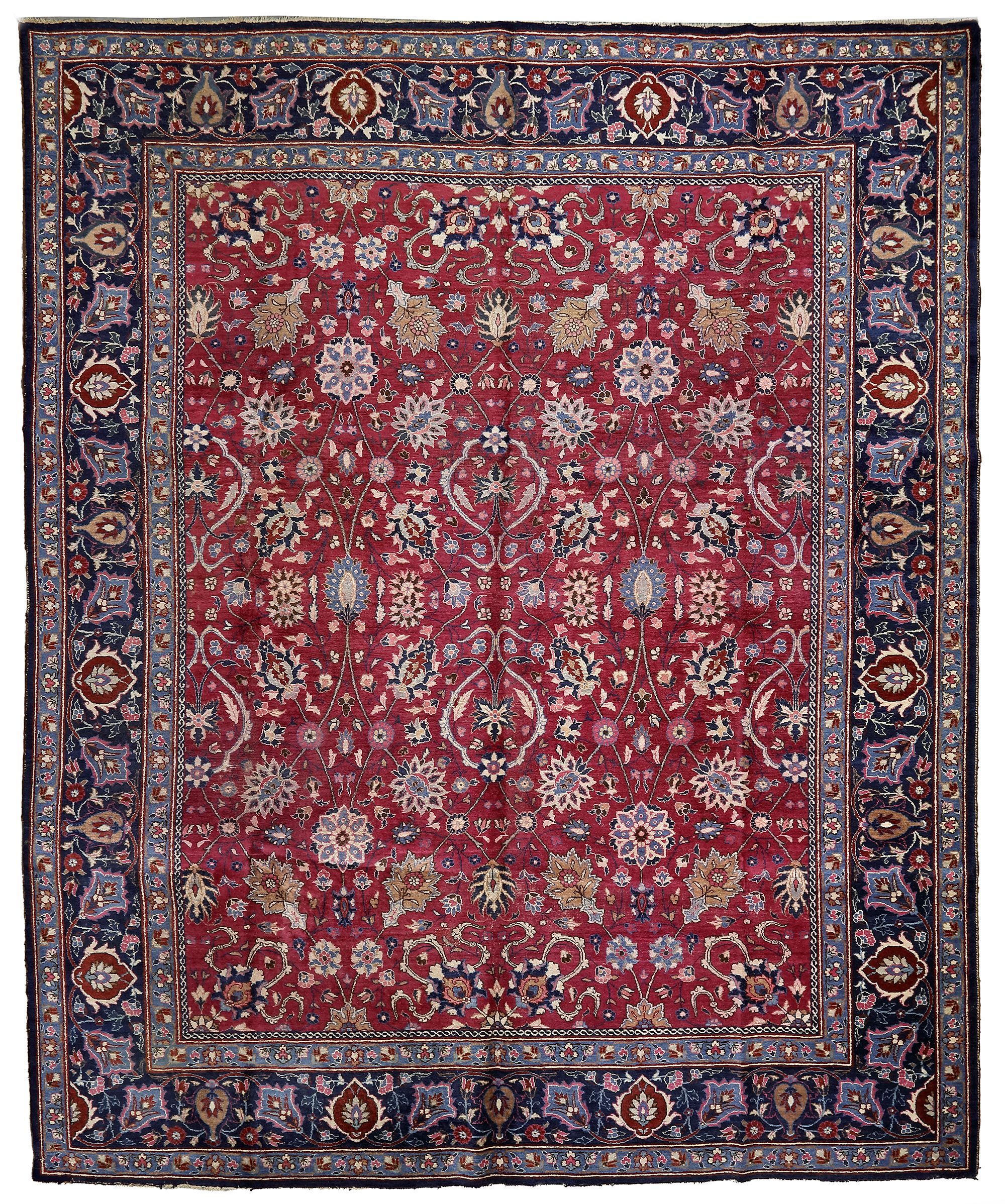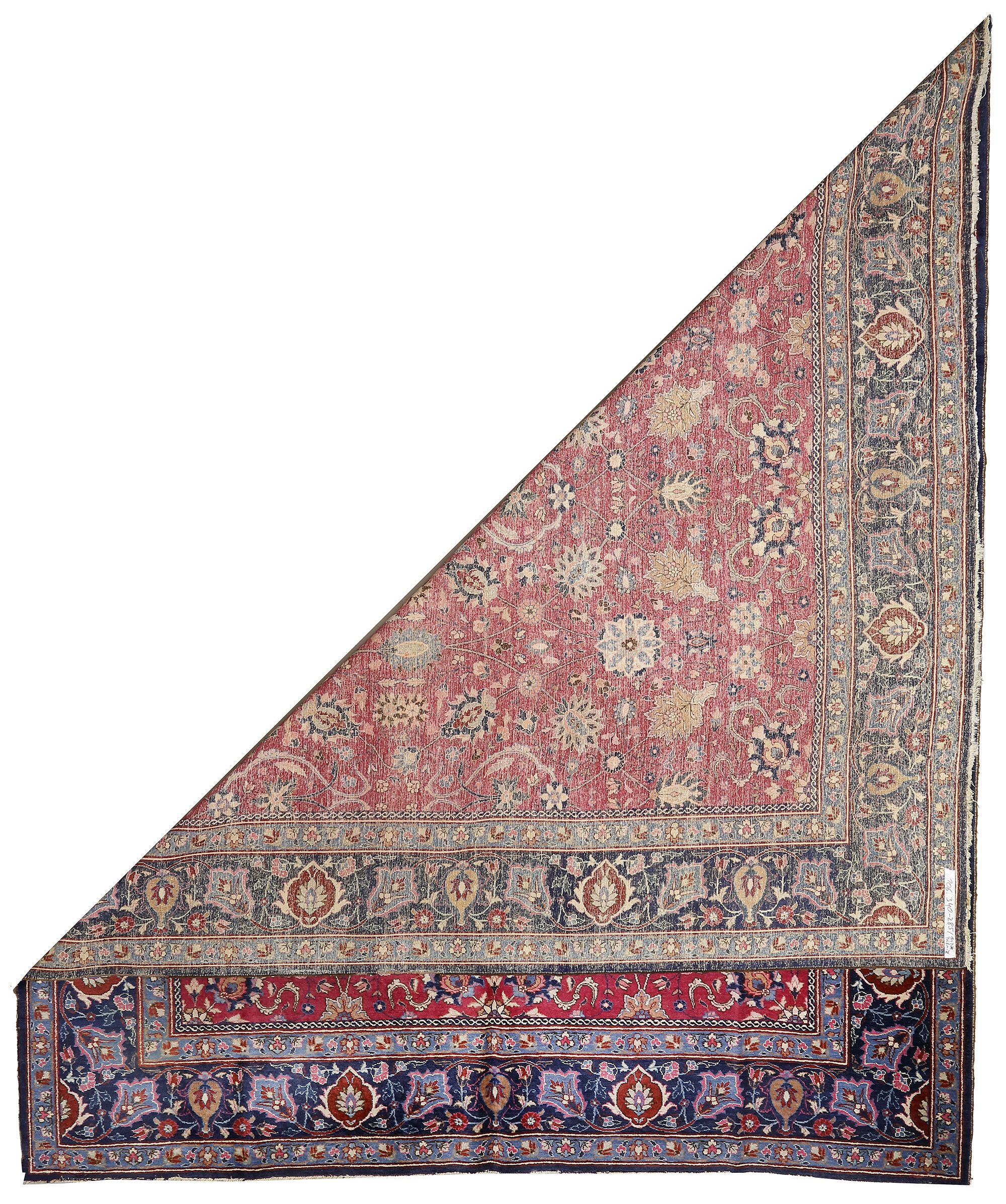 In a good condition apart from a few low areas, original sides. 340 by 285 cm.
