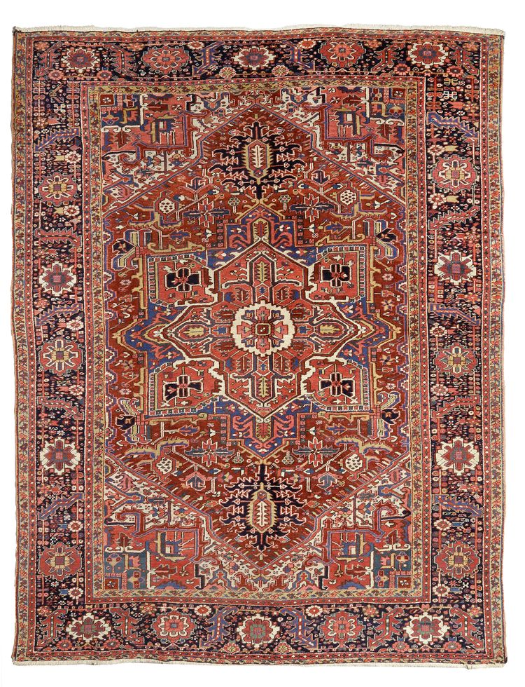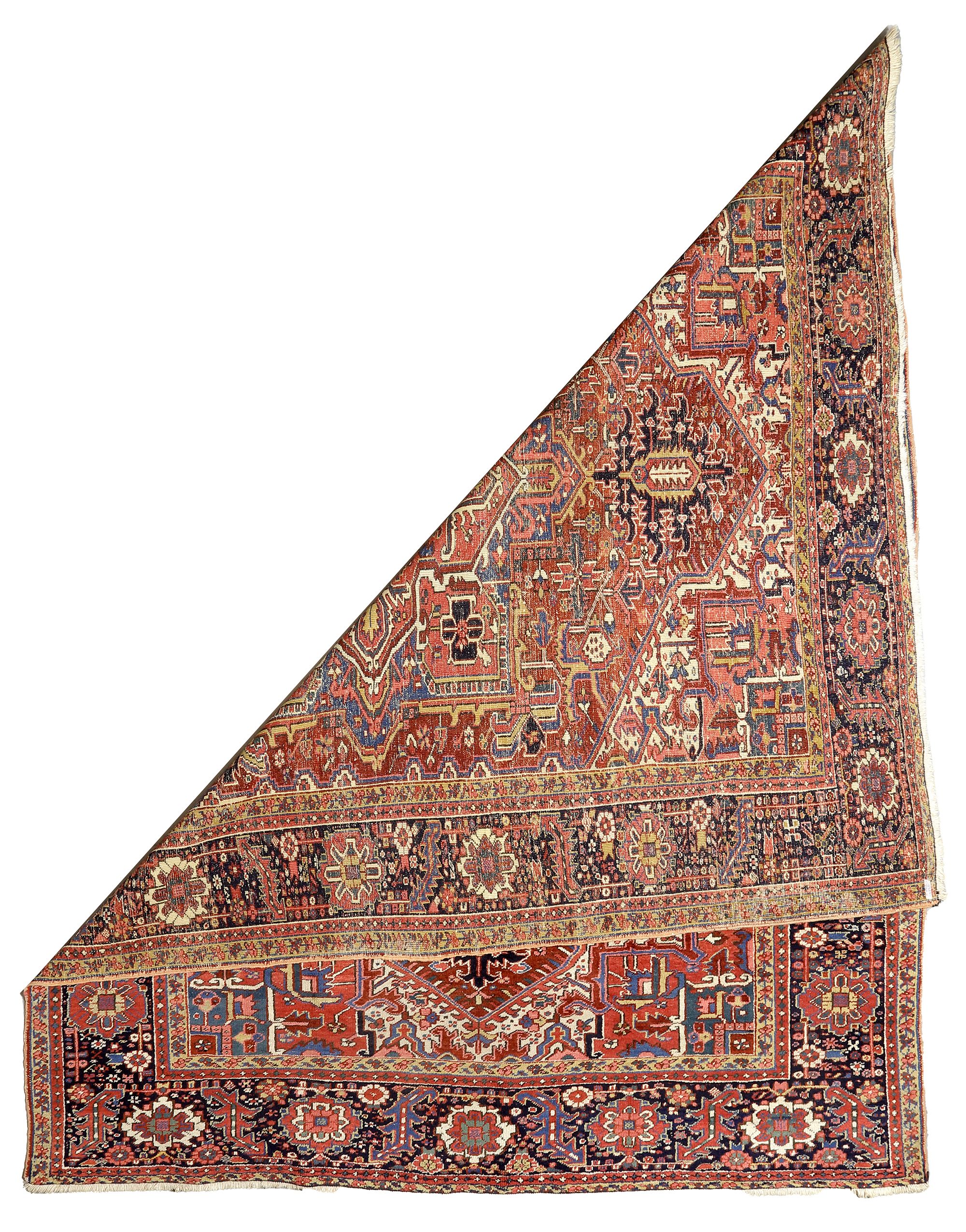 In a good condition, few low areas, original sides. 345 by 275 cm.
